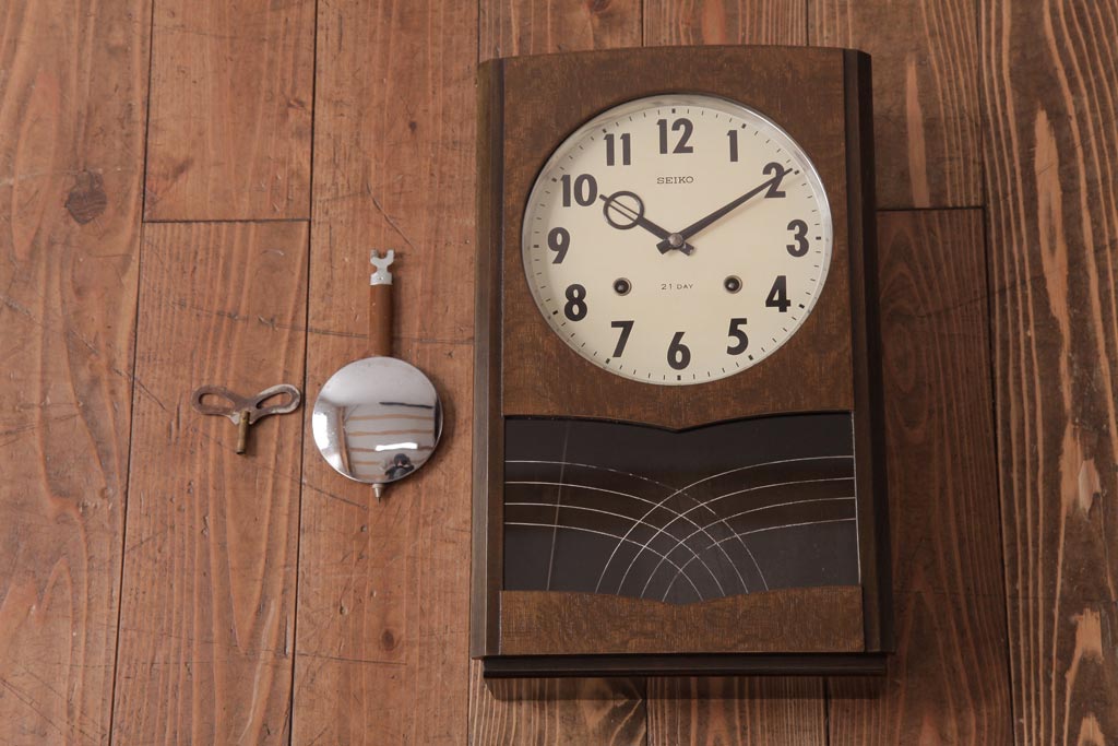 レトロ雑貨 SEIKO(セイコー) ゼンマイ式 21DAY 渋い色味の掛け時計(柱時計、振り子時計)