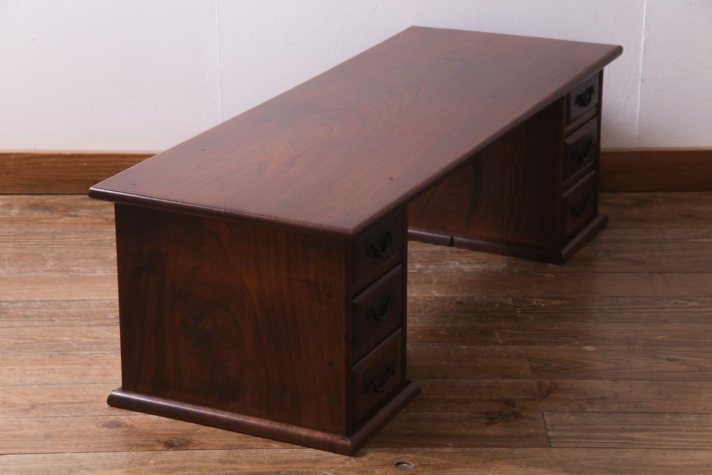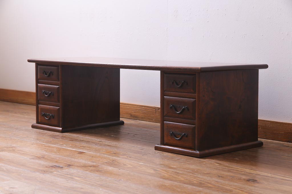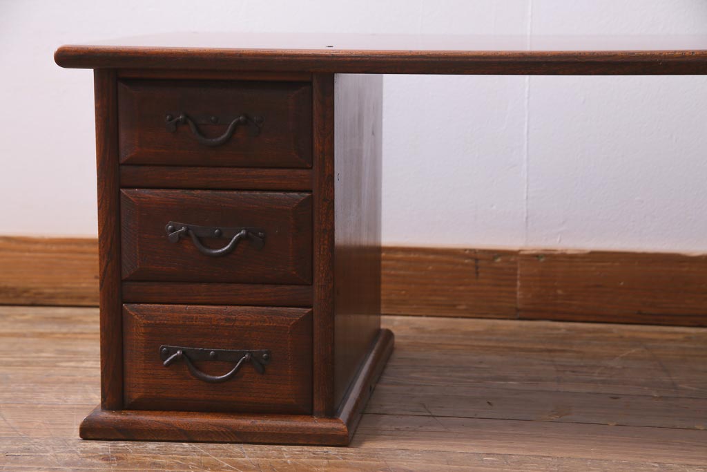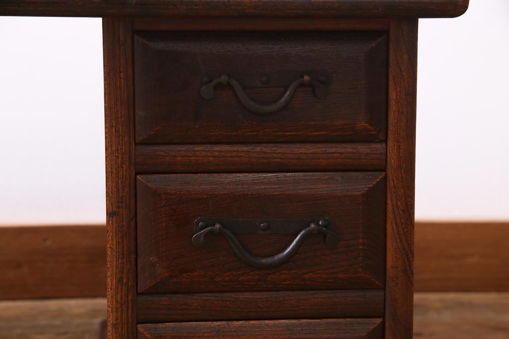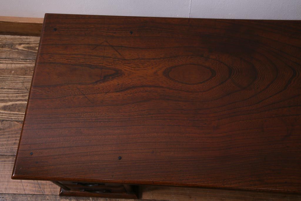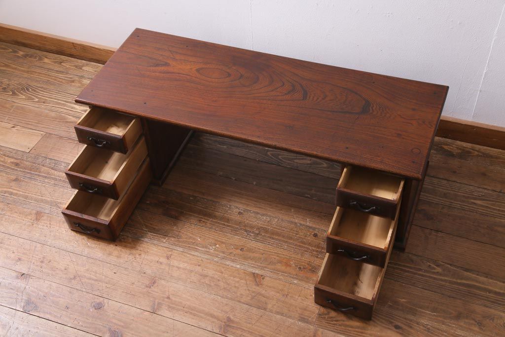 ラフジュ工房> デスク> 片袖机・両袖机 > アンティーク家具 明治大正期 総ケヤキ材 レア品 天板一枚板の上質な両袖デスク(文机)