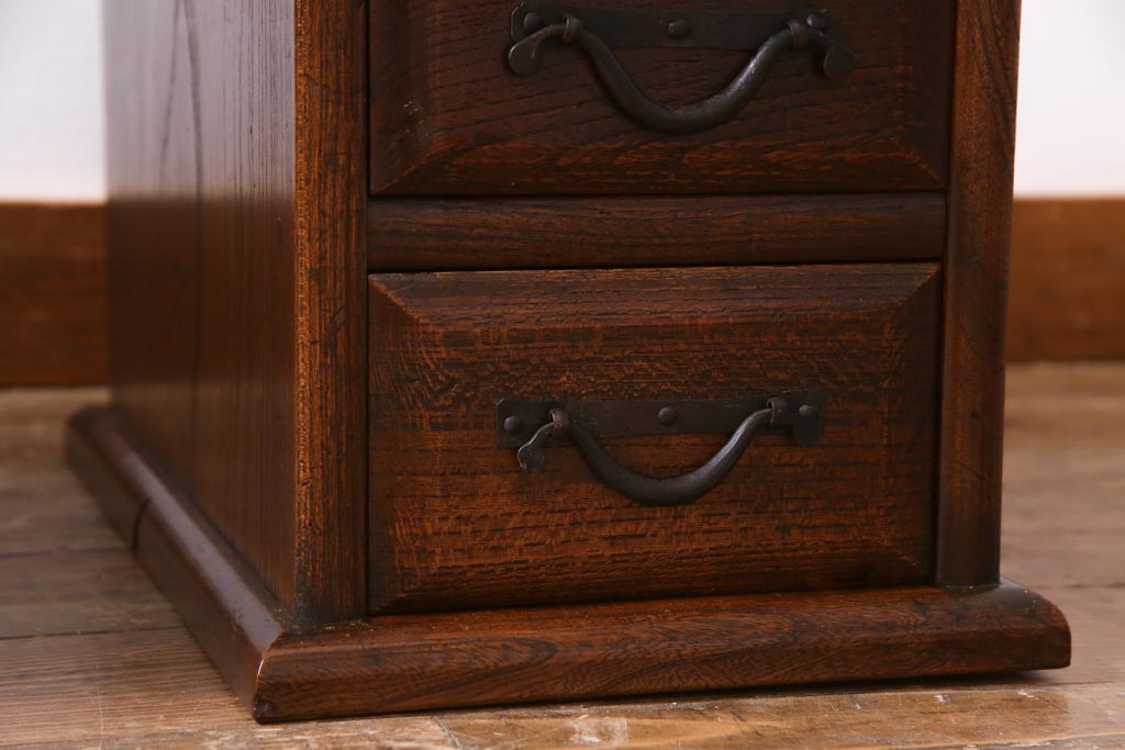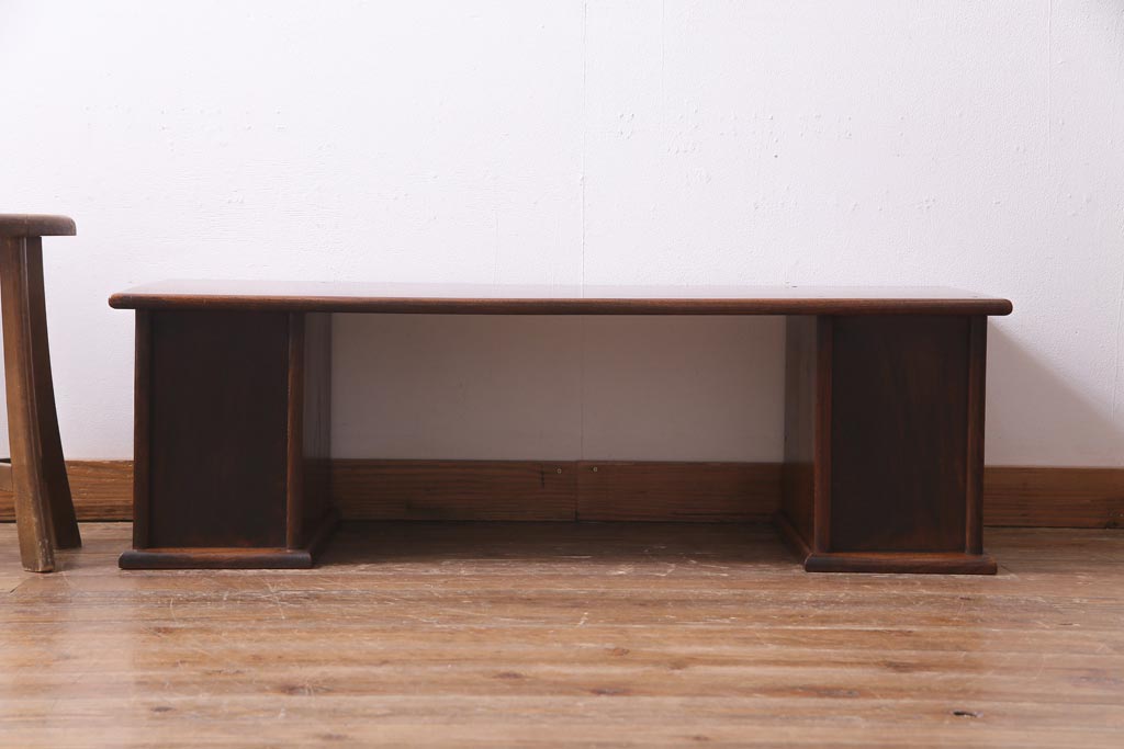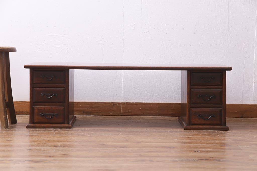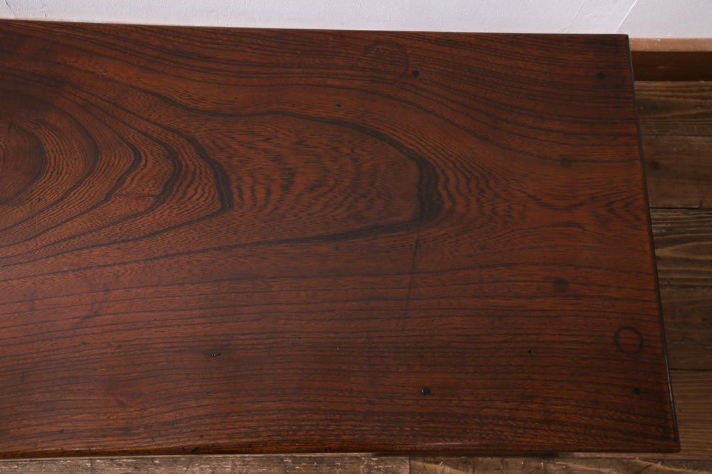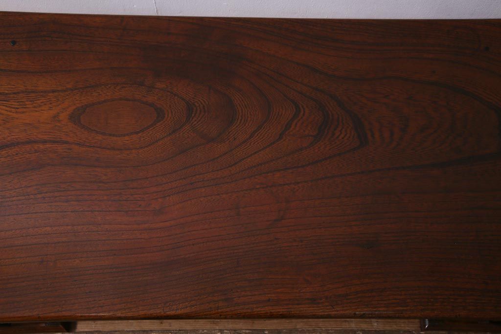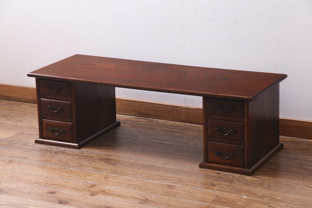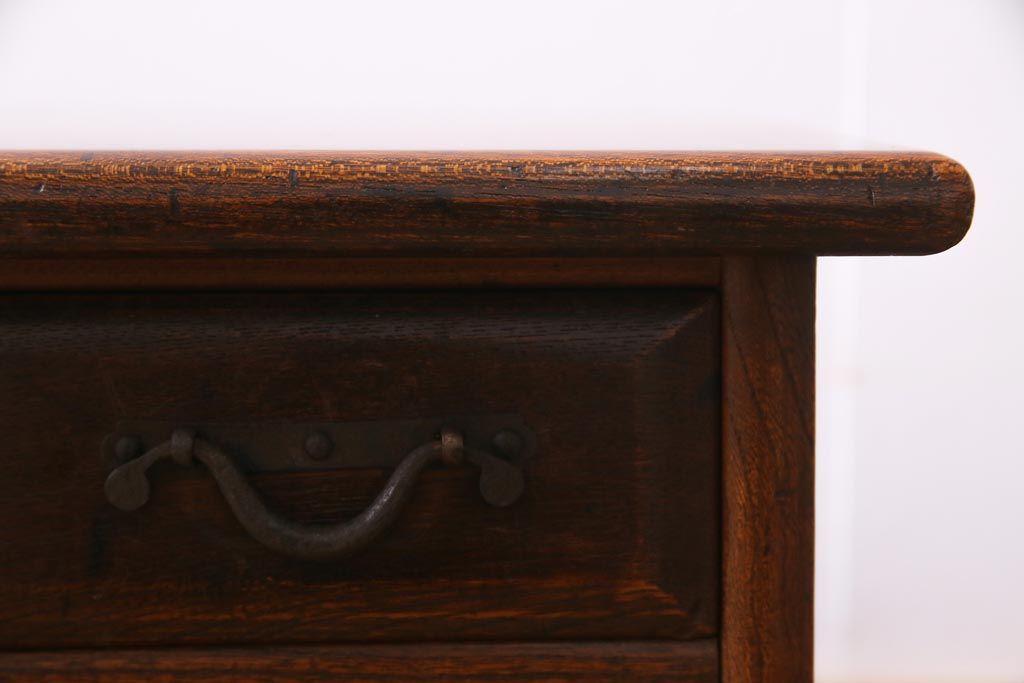 ラフジュ工房> デスク> 片袖机・両袖机 > アンティーク家具 明治大正期 総ケヤキ材 レア品 天板一枚板の上質な両袖デスク(文机)