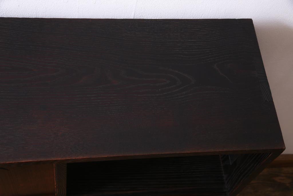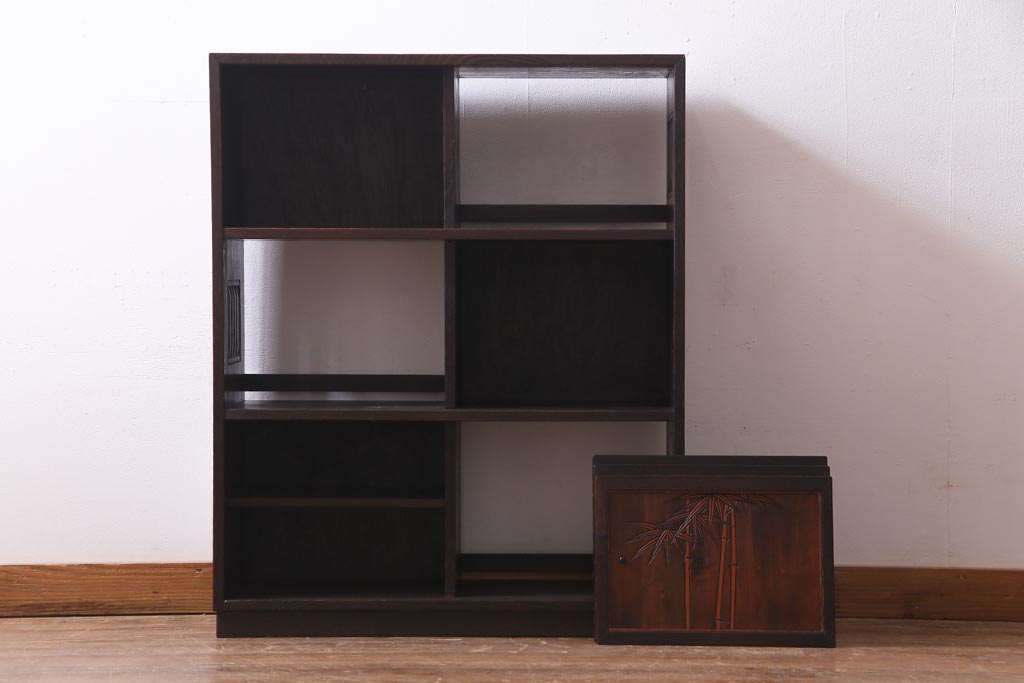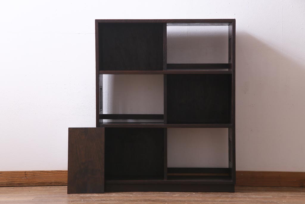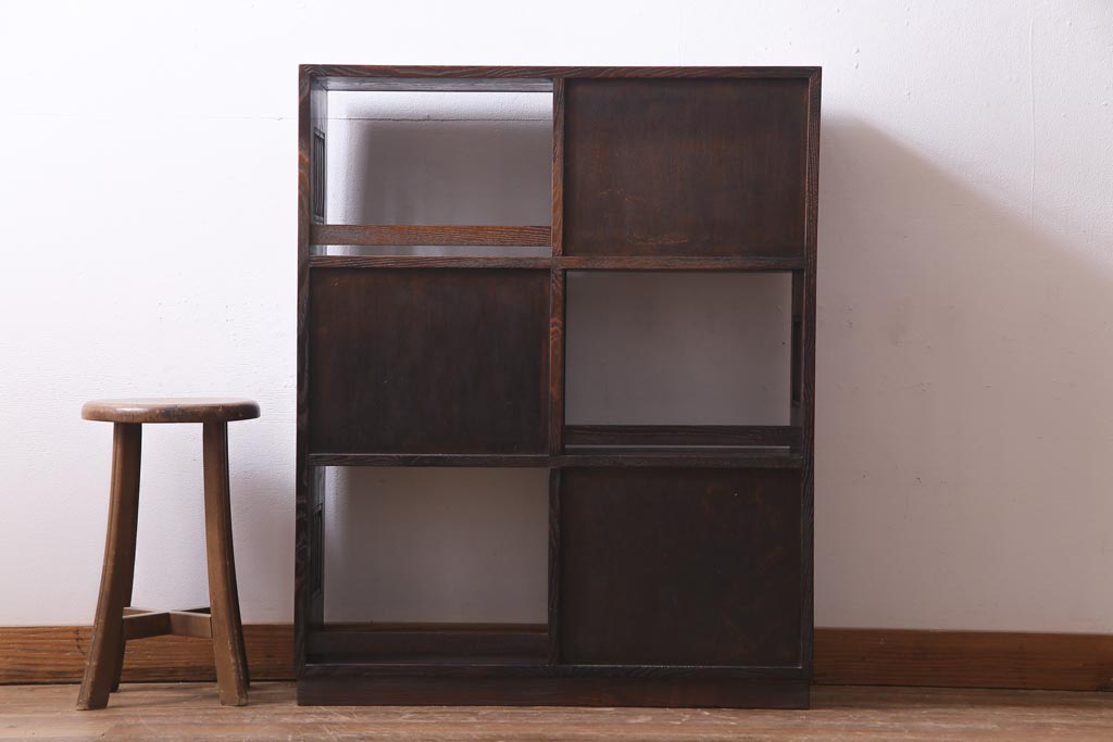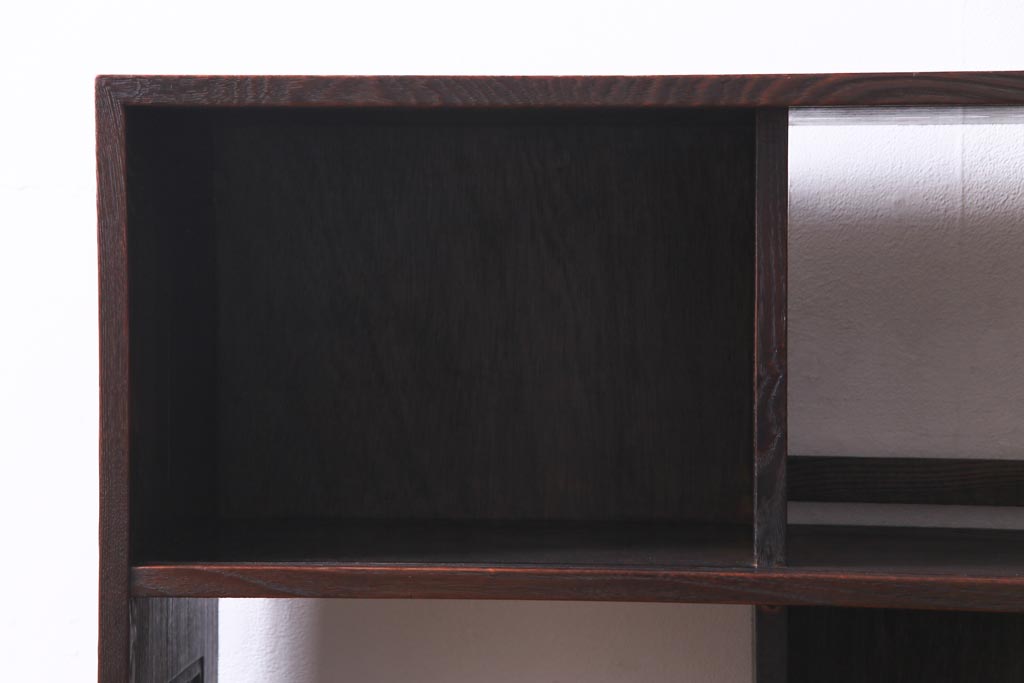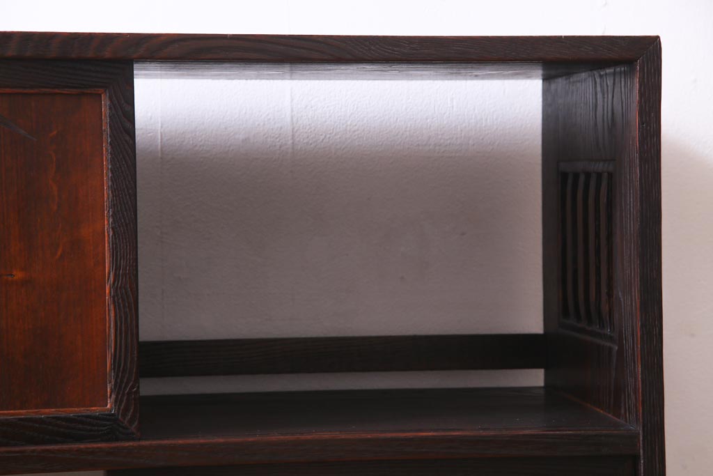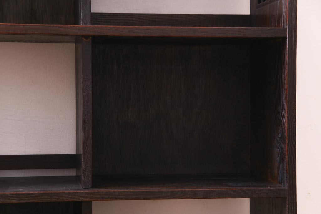 ヴィンテージ家具 和製ビンテージ 栗材 浮造り 互い違いの棚が目を引く茶棚(飾り棚)