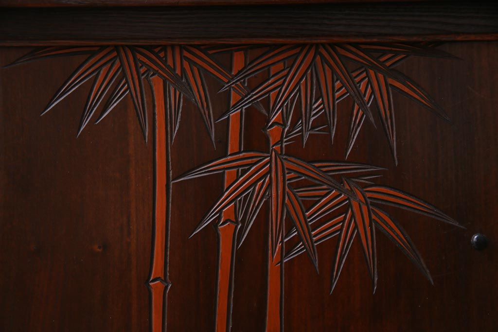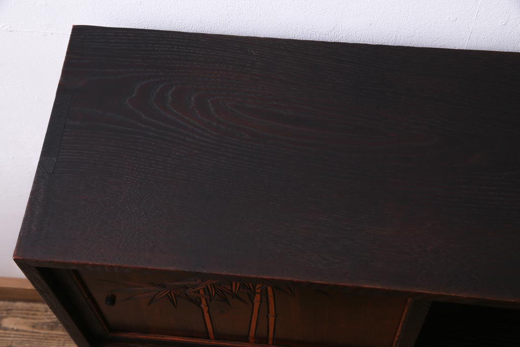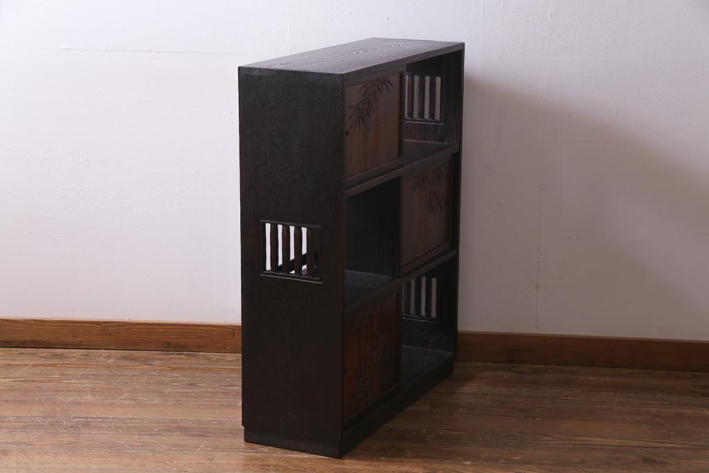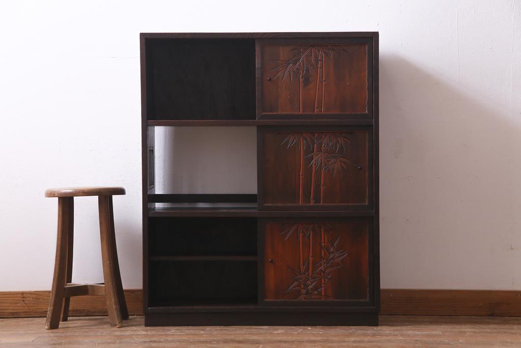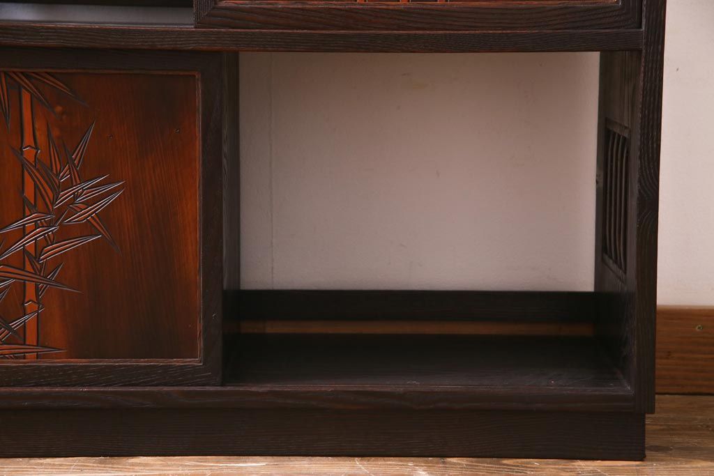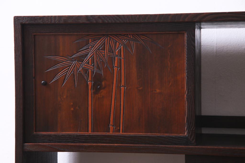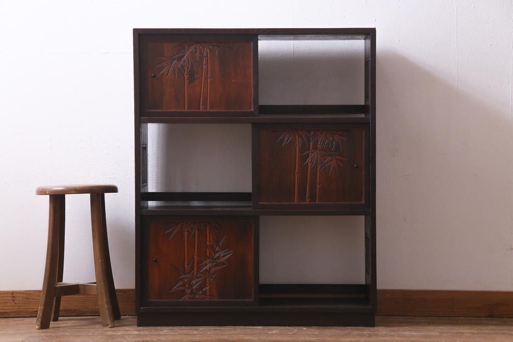ヴィンテージ家具 和製ビンテージ 栗材 浮造り 互い違いの棚が目を引く茶棚(飾り棚)