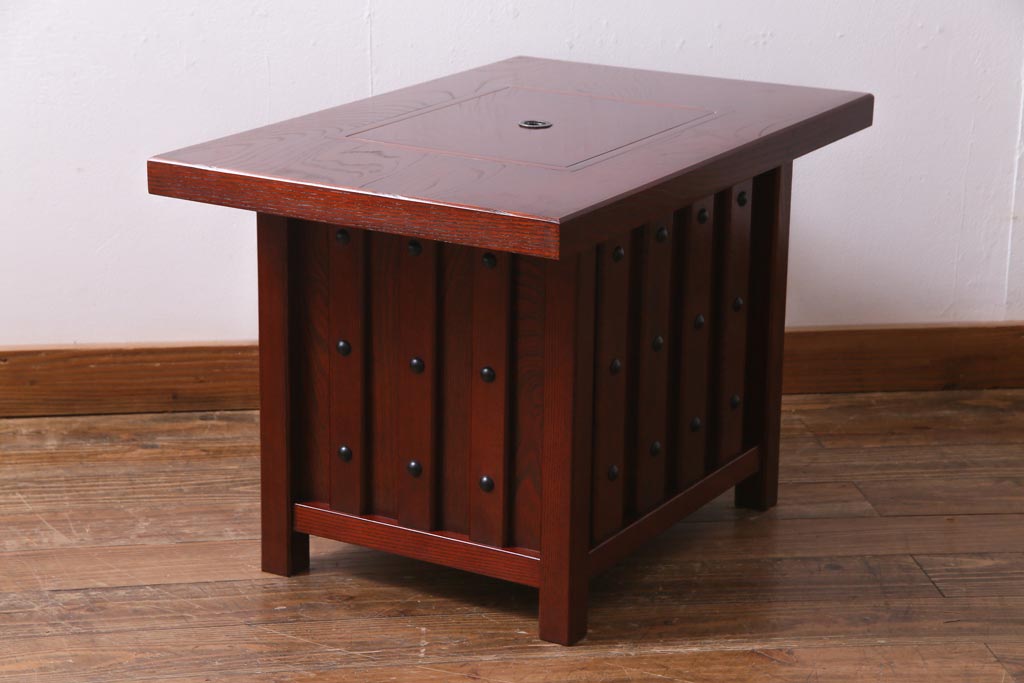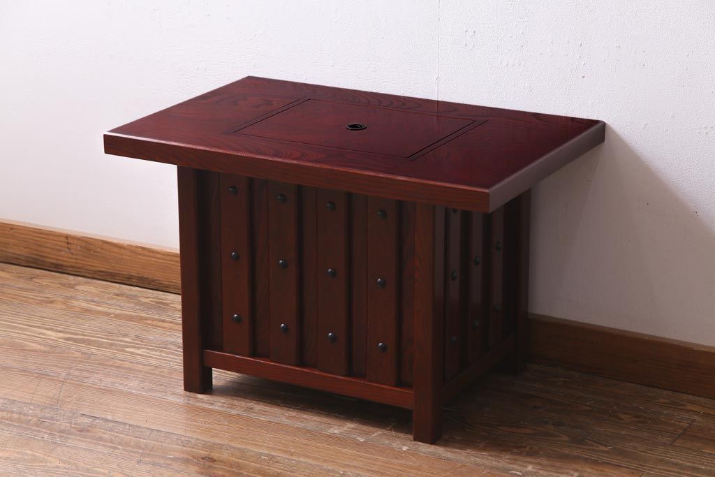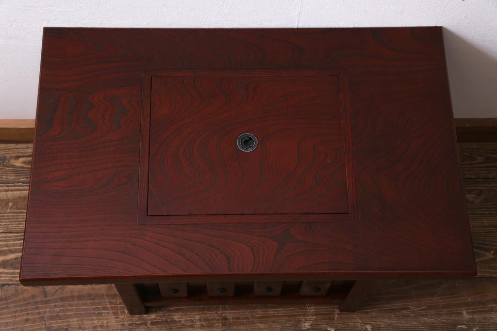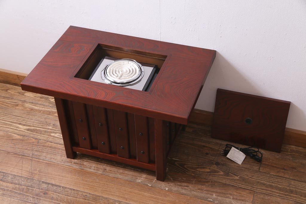 中古 駿河民芸 民芸家具 電気コンロ付き ケヤキ材製の上質な長火鉢(木製火鉢、座卓)