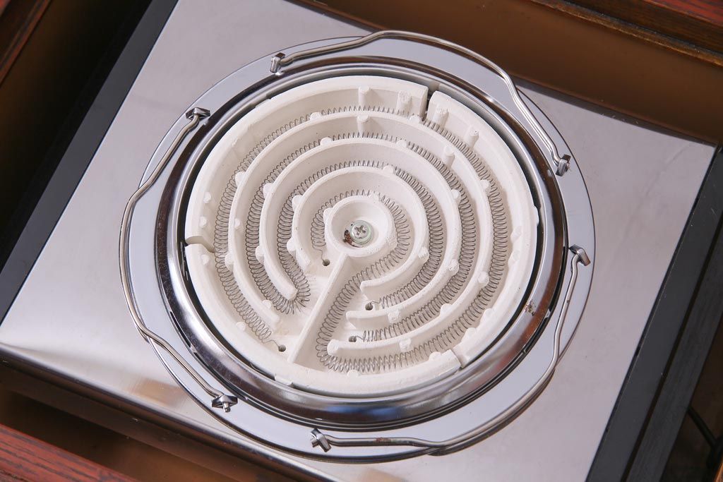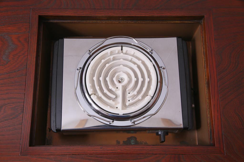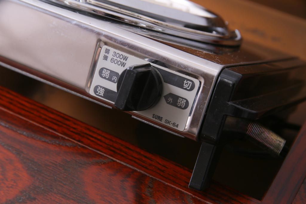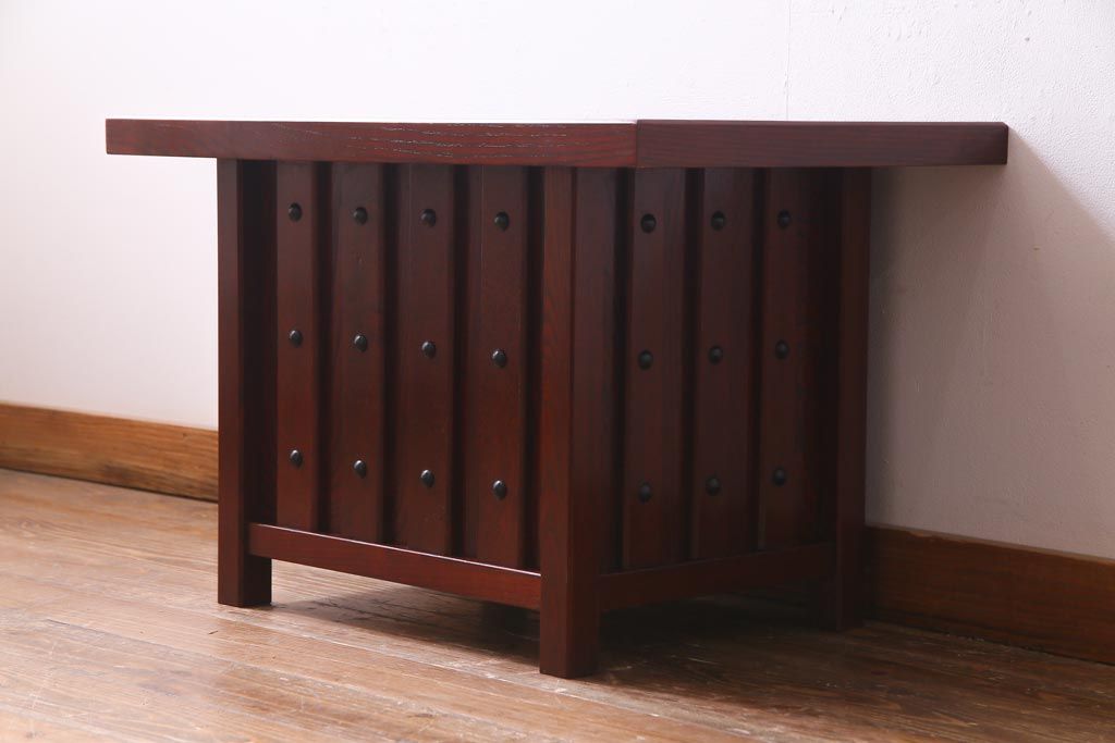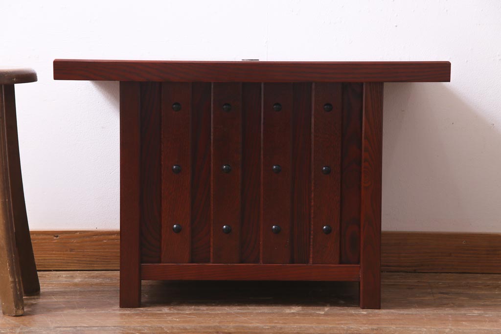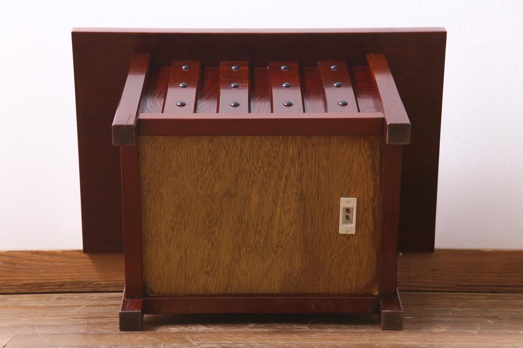 民芸家具 > 中古 駿河民芸 民芸家具 電気コンロ付き ケヤキ材製の上質な長火鉢(木製火鉢、座卓)