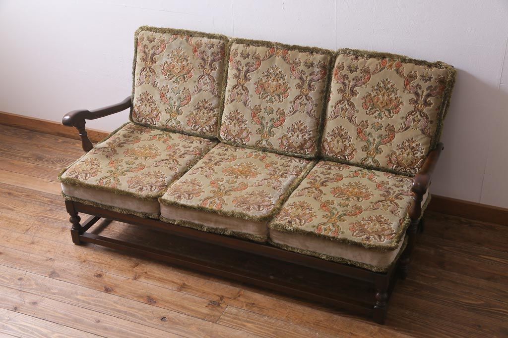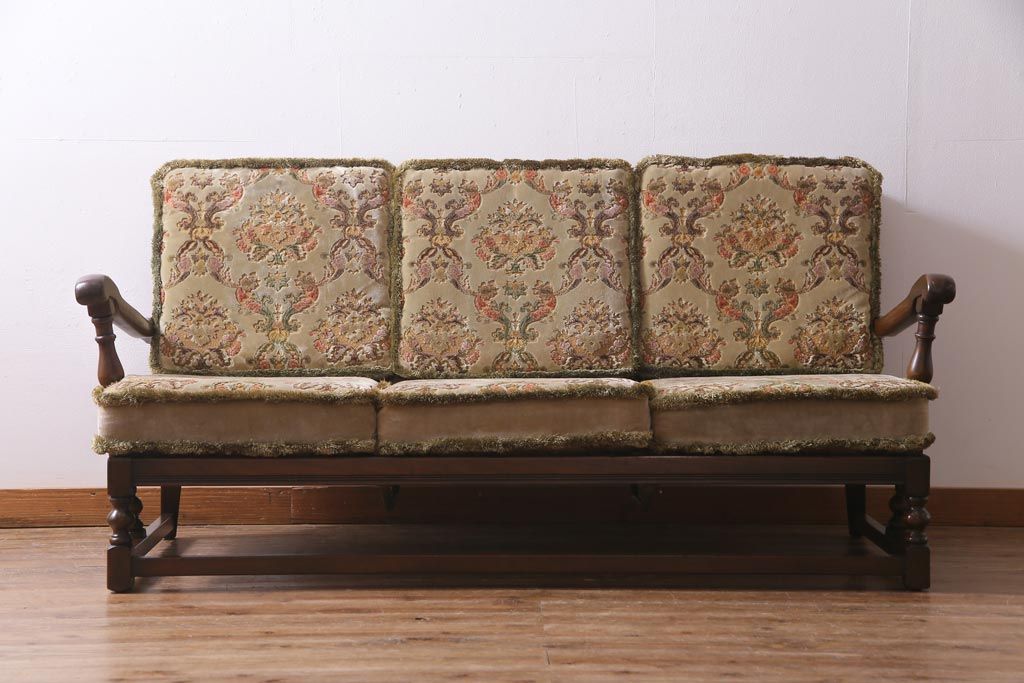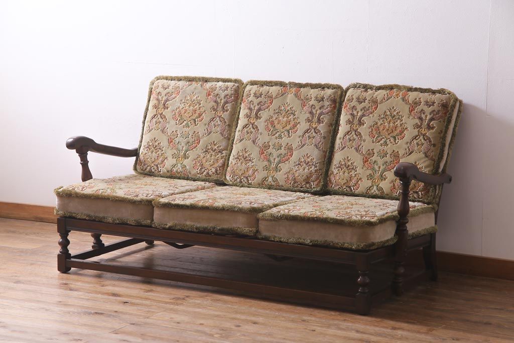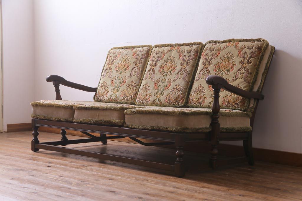 ヴィンテージ家具 イギリスビンテージ ERCOL(アーコール) シックなカントリースタイルに合う3人掛けソファ(アームソファ)(R-036741)