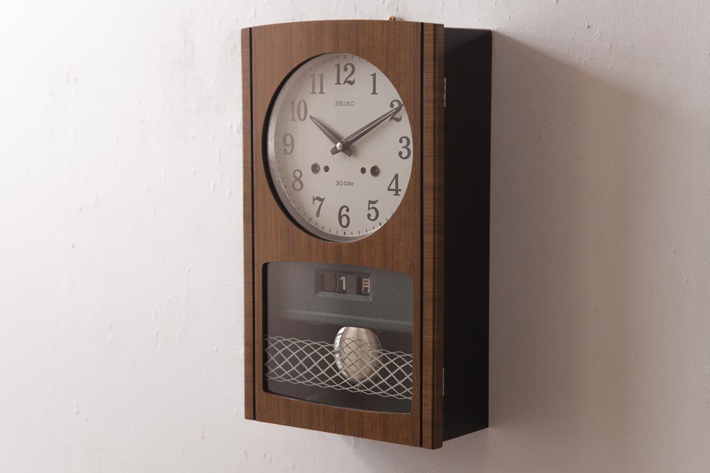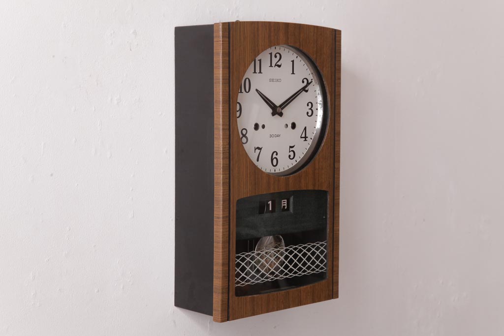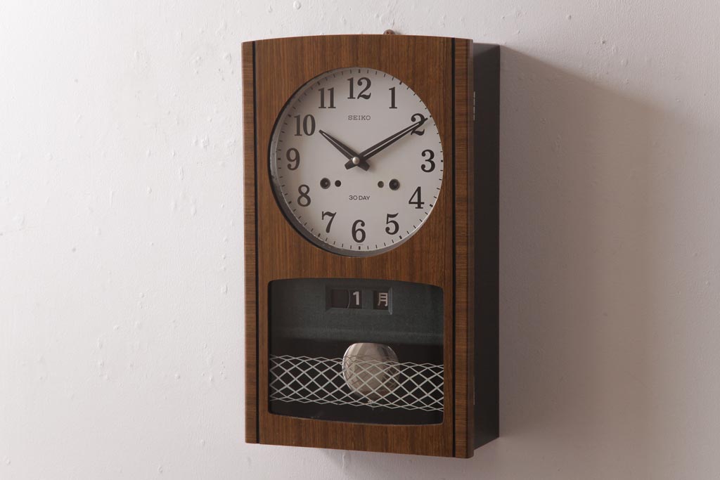 アンティーク雑貨 昭和レトロ SEIKO(セイコー) カレンダー付き 手巻き式 30DAY レトロな色合いの掛時計(柱時計、振り子時計)(R-036559)です。