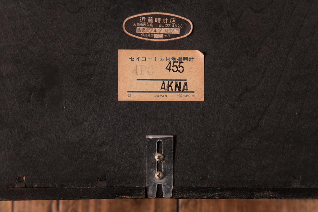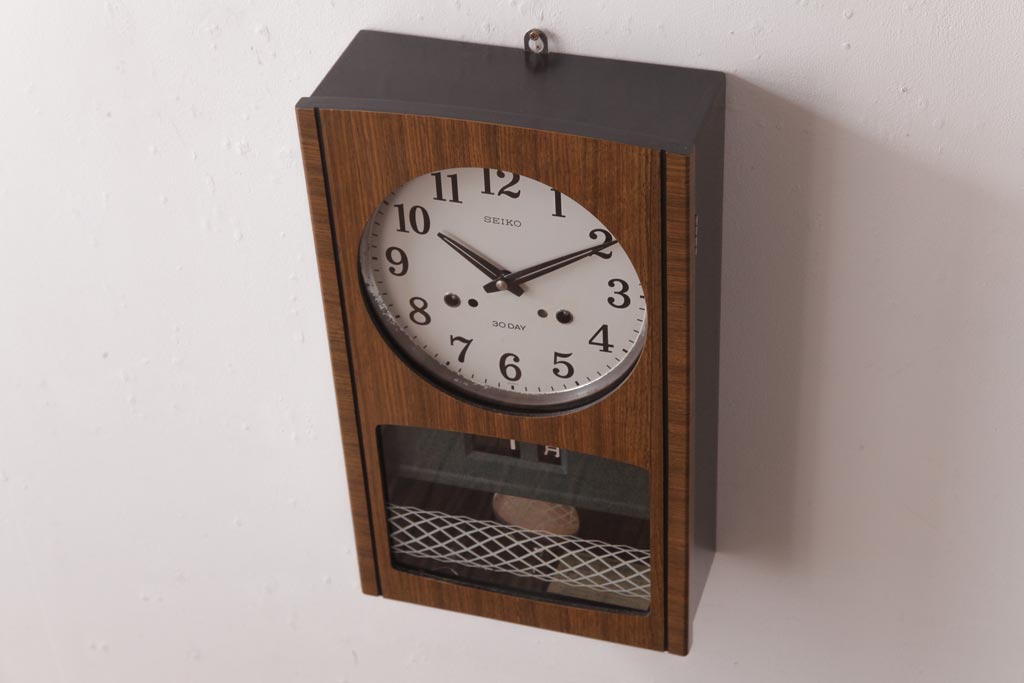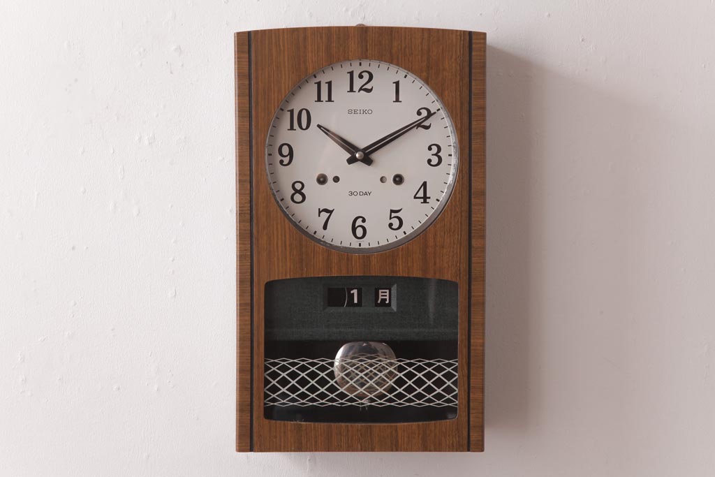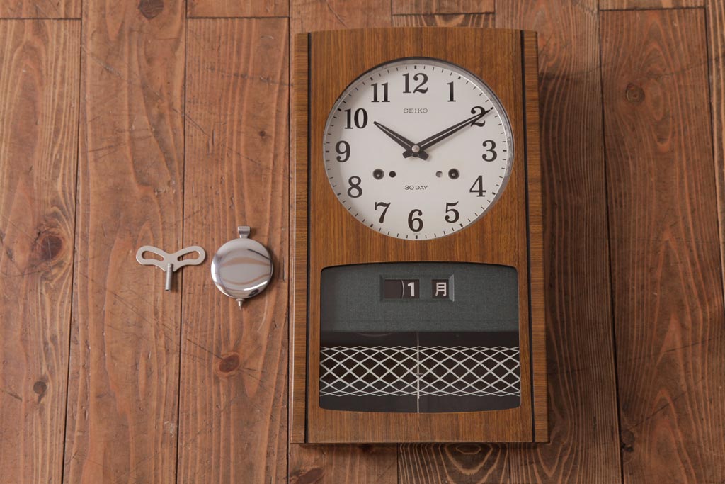 時計> 掛け時計 > アンティーク雑貨 昭和レトロ SEIKO(セイコー) カレンダー付き 手巻き式 30DAY レトロな色合いの掛時計(柱時計、振り子時計)(R-036559)