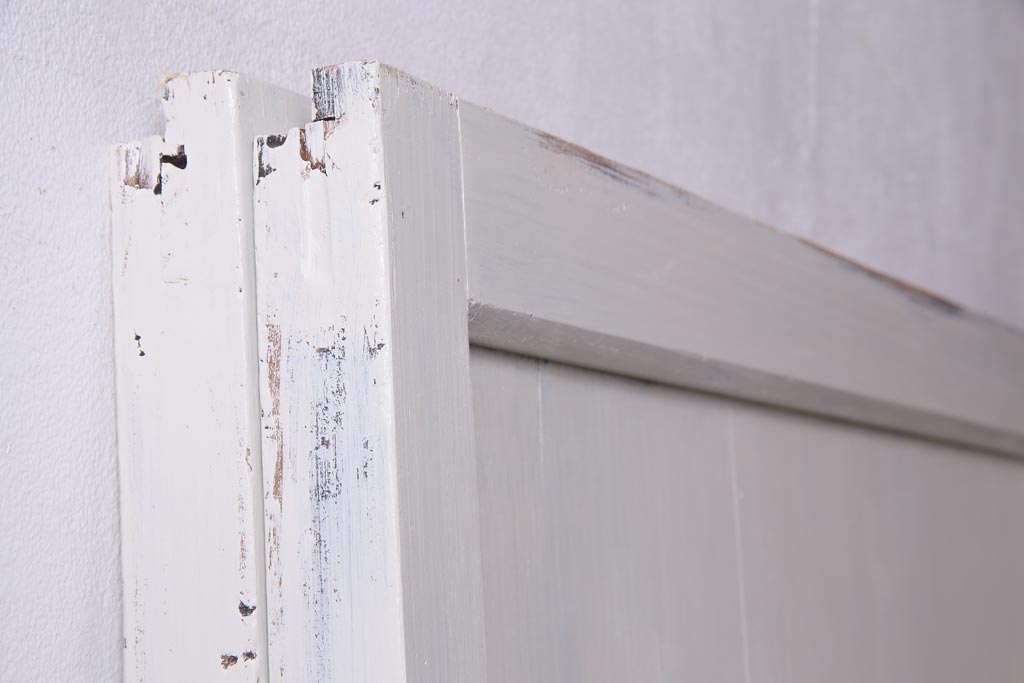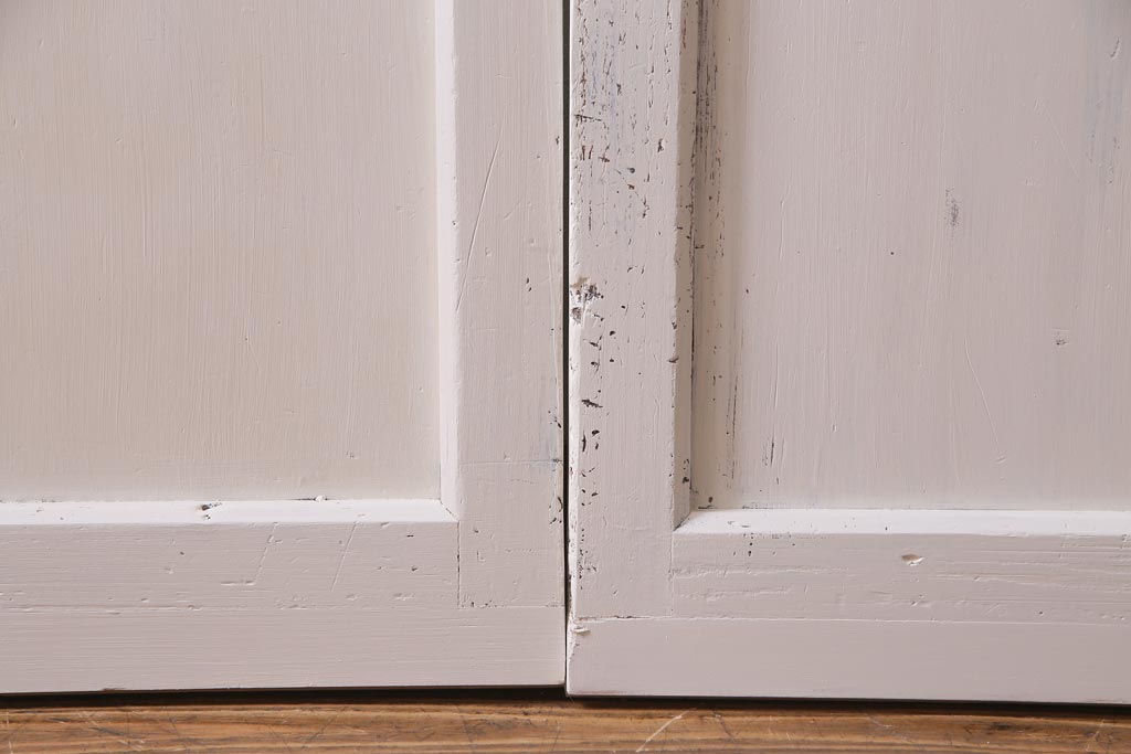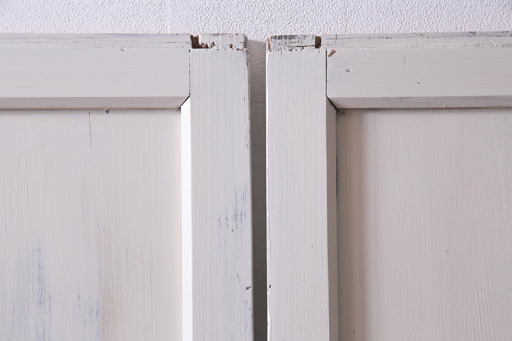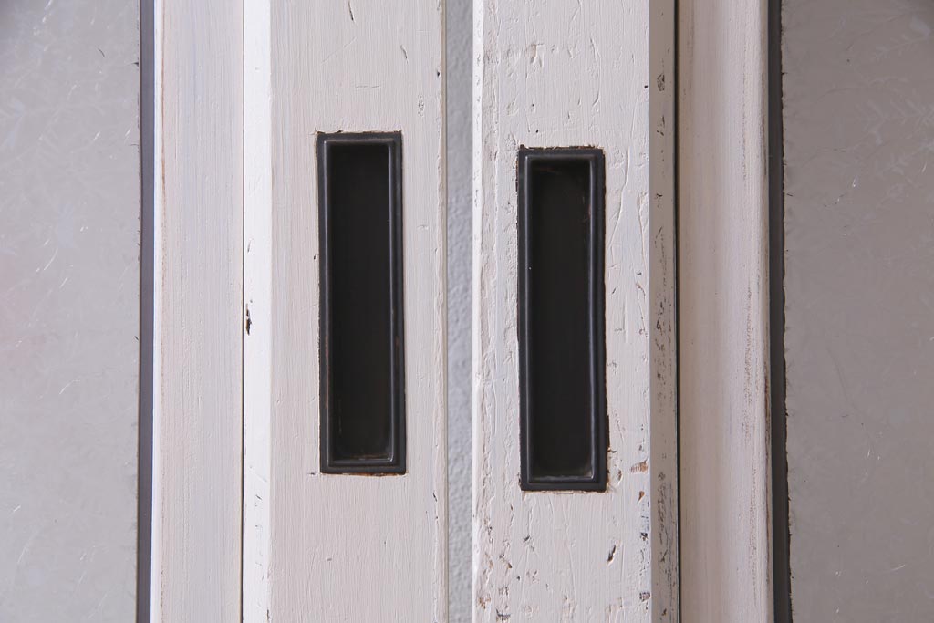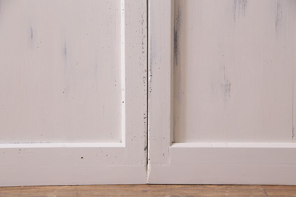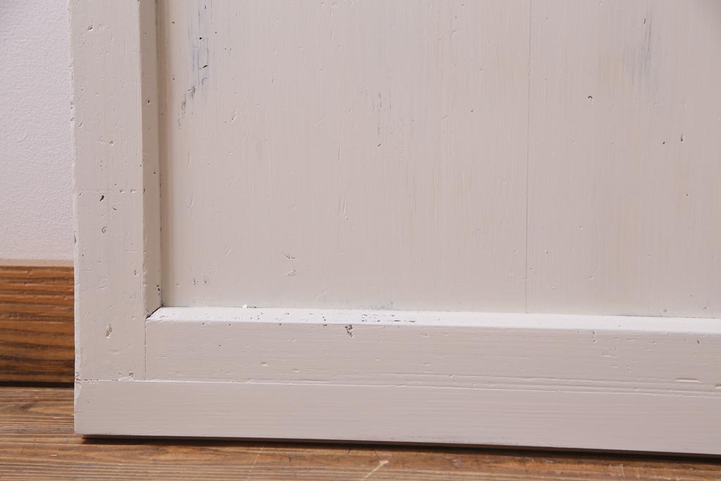 ラフジュ工房> ドア・建具> 引き戸 > アンティーク建具 ラフジュ工房オリジナルステンドグラス 結霜ガラス・モールガラス入り アンティークペイントに色ガラスが映える板戸2枚セット(建具、引き戸、ガラス帯戸)(R-036742)