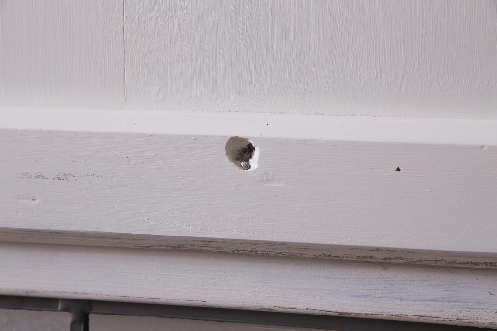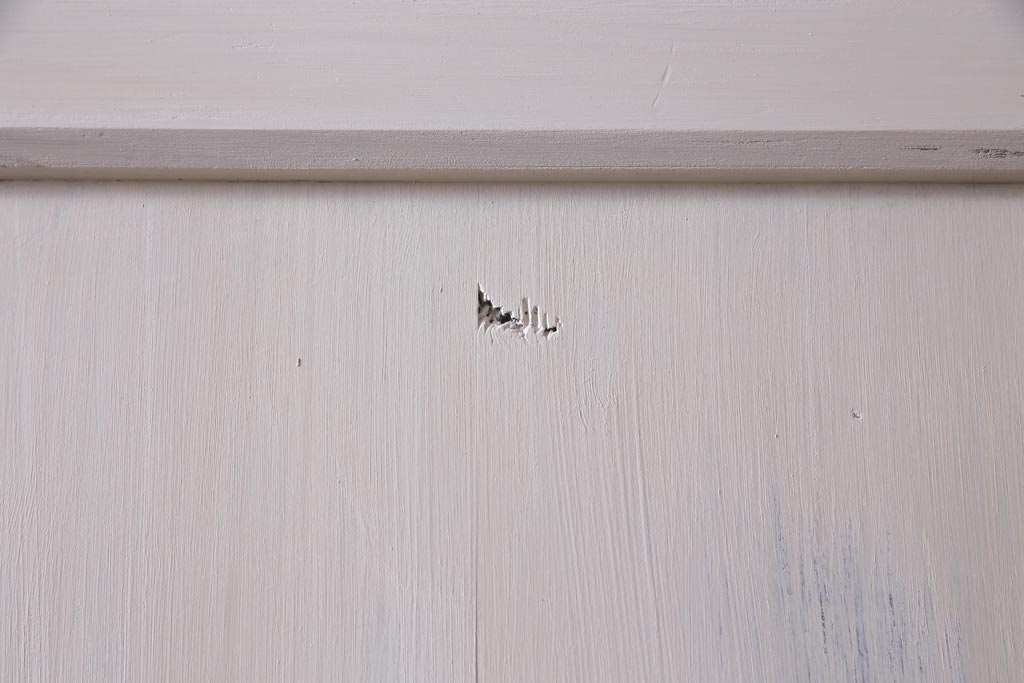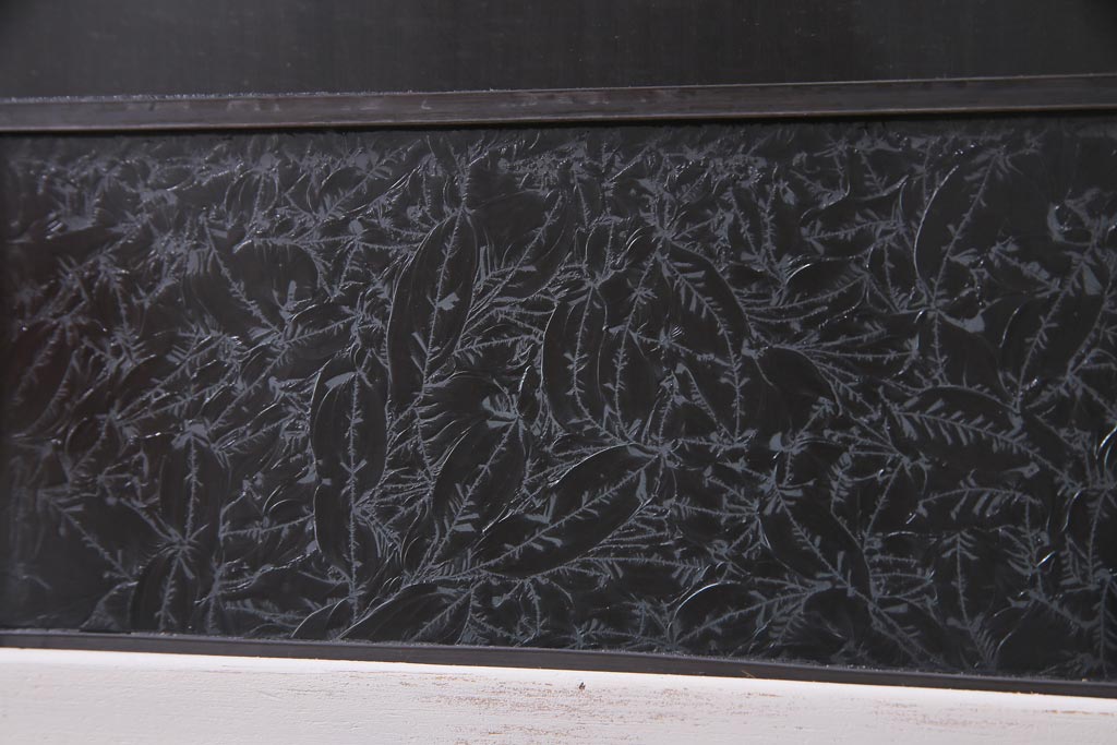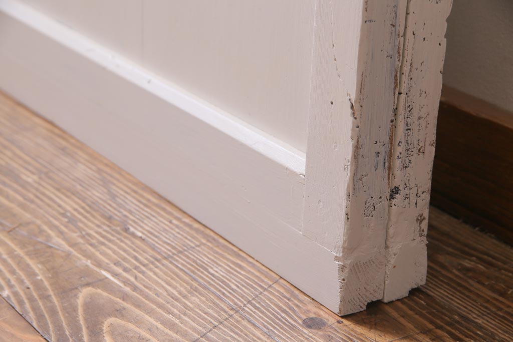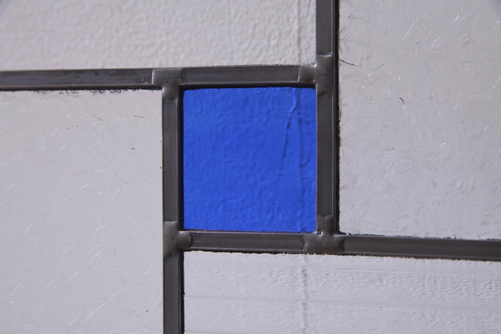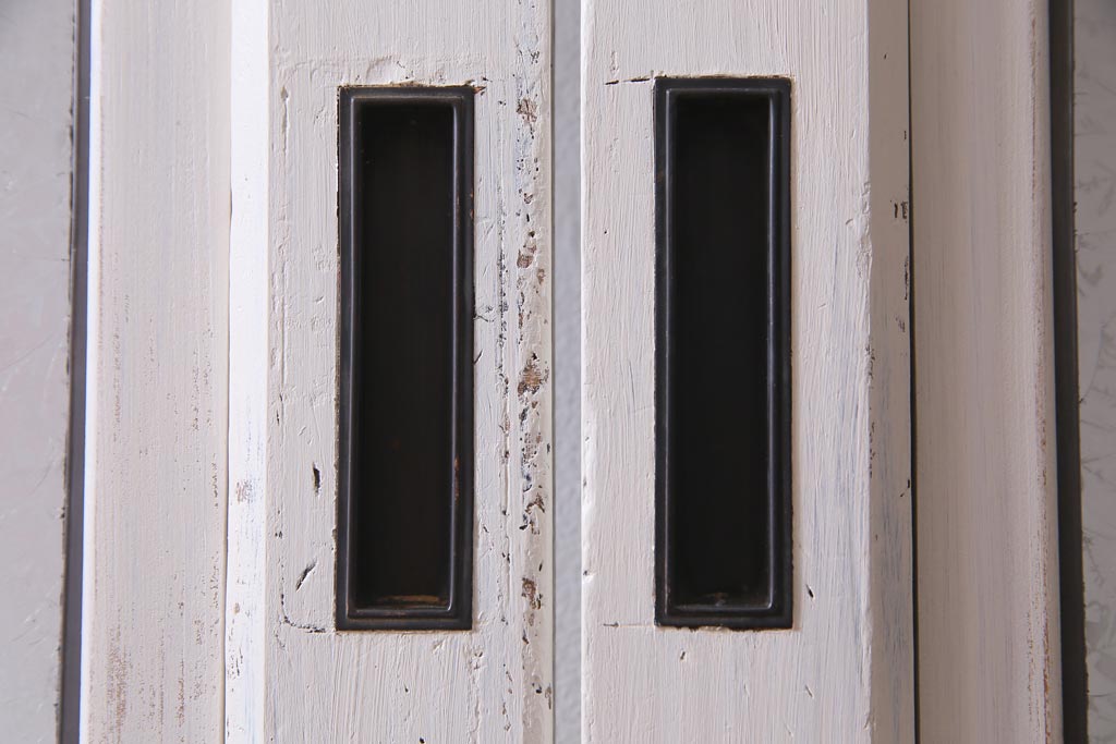 ラフジュ工房> ドア・建具> 引き戸 > アンティーク建具 ラフジュ工房オリジナルステンドグラス 結霜ガラス・モールガラス入り アンティークペイントに色ガラスが映える板戸2枚セット(建具、引き戸、ガラス帯戸)(R-036742)