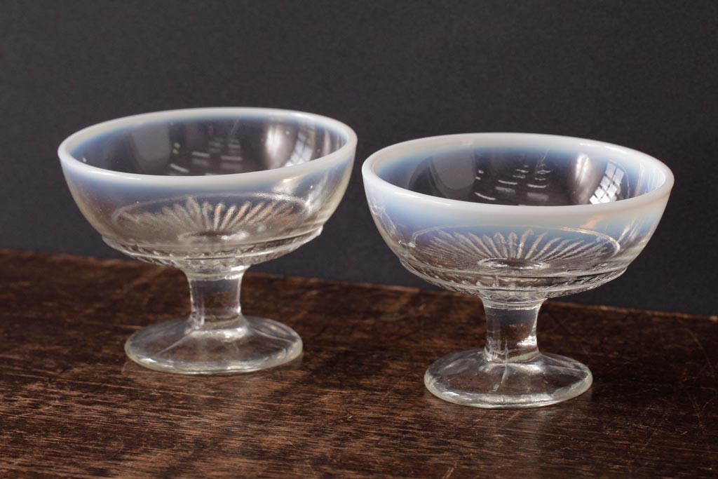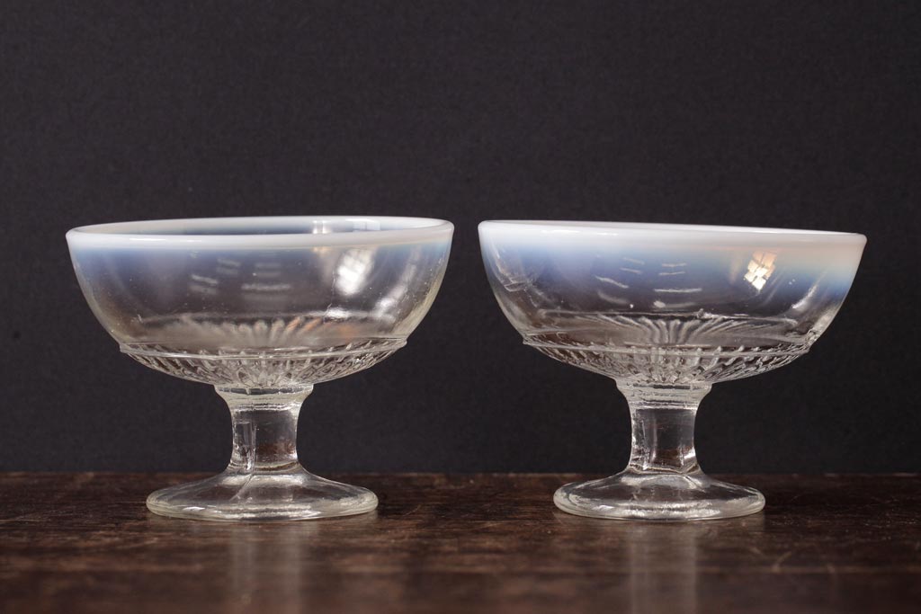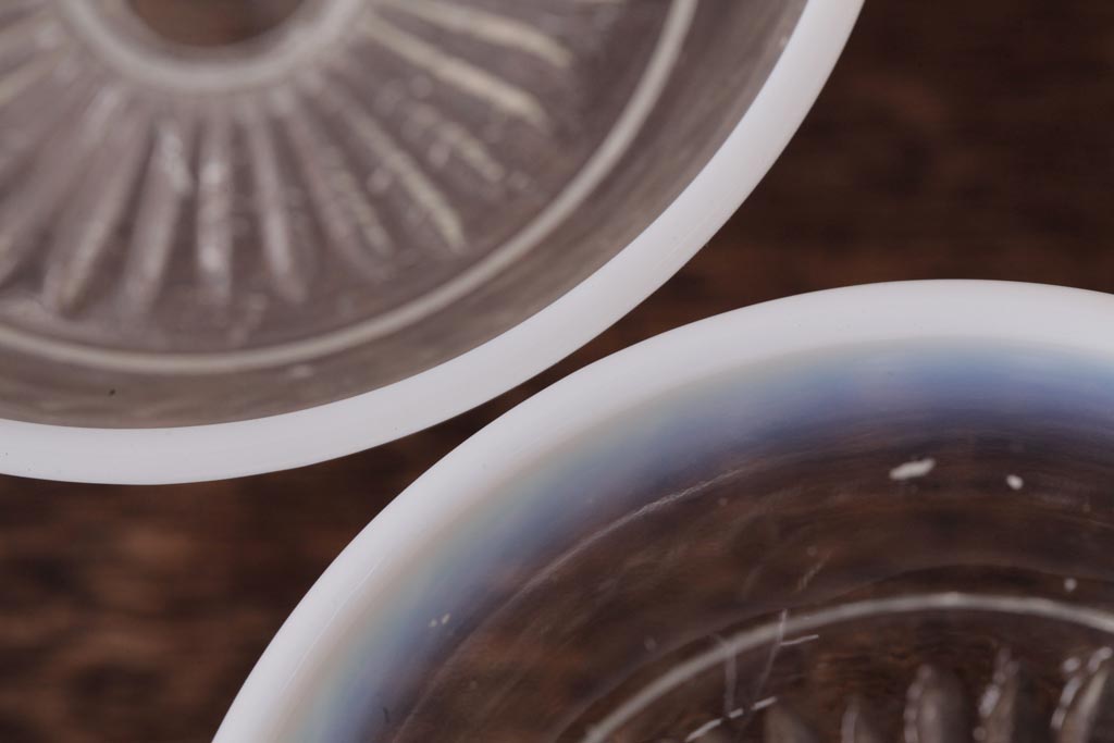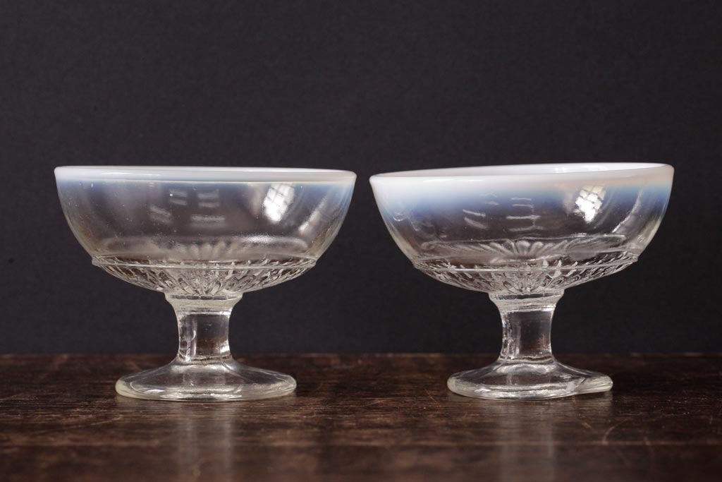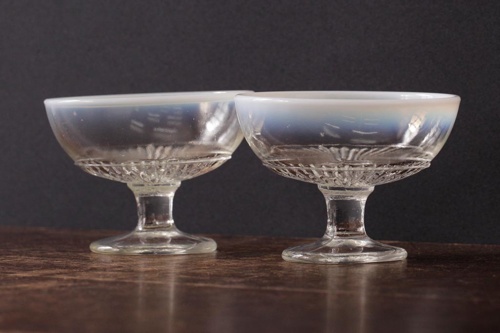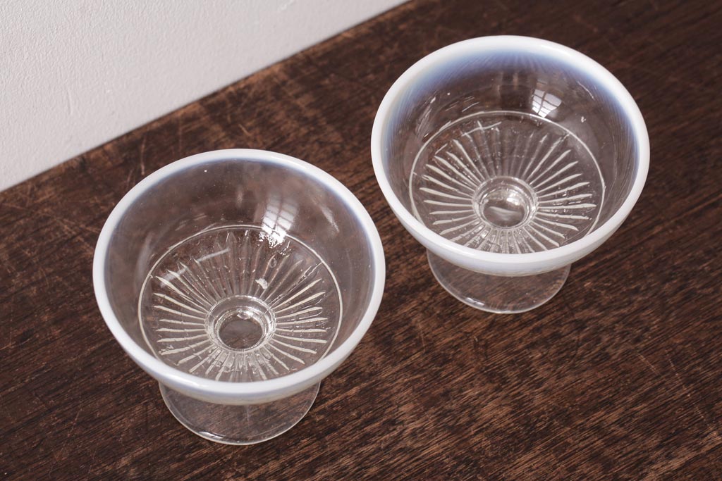 ラフジュ工房> 和食器・茶道具> 氷コップ > レトロ雑貨 昭和レトロ コレクションにもぴったりなプレスガラスの乳白暈し氷コップ2個セット(プレスガラス)(R-036836)