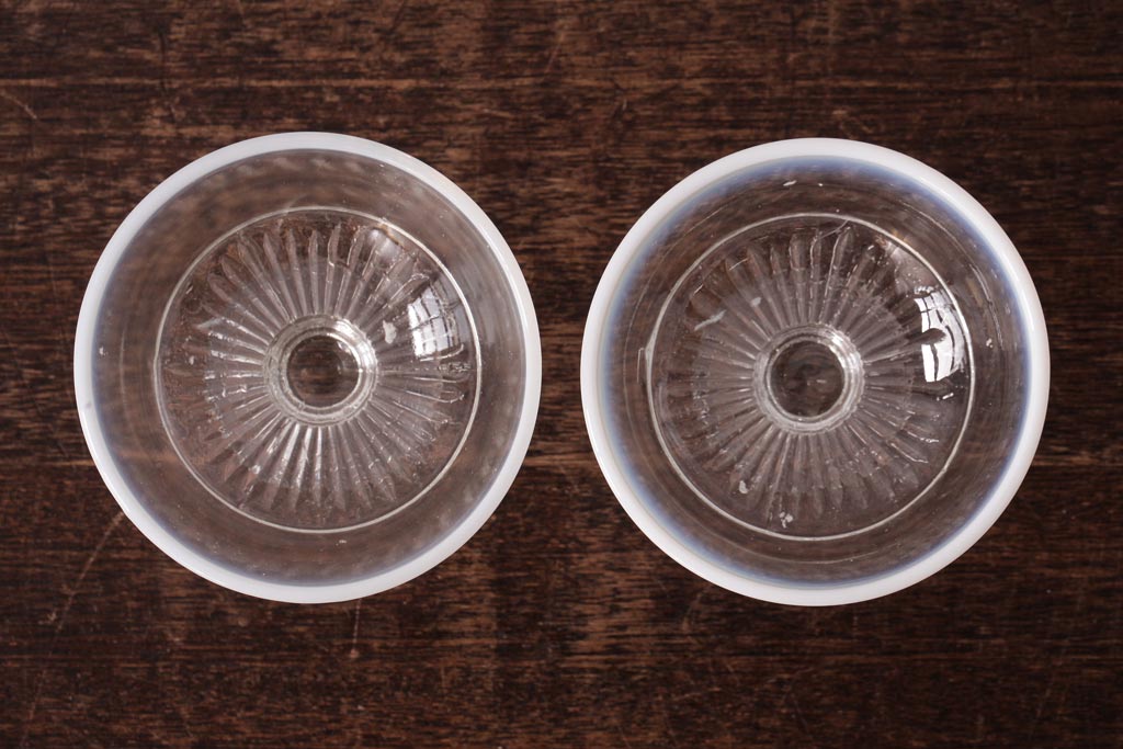 ラフジュ工房> 和食器・茶道具 > レトロ雑貨 昭和レトロ コレクションにもぴったりなプレスガラスの乳白暈し氷コップ2個セット(プレスガラス)(R-036836)