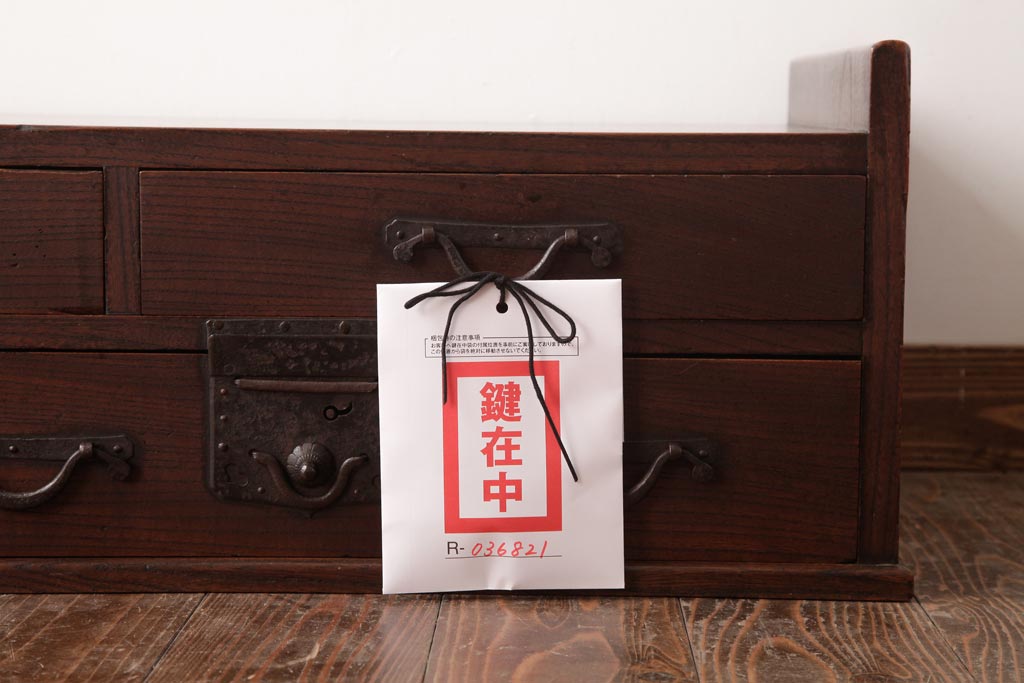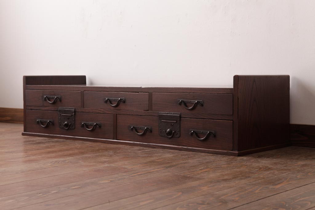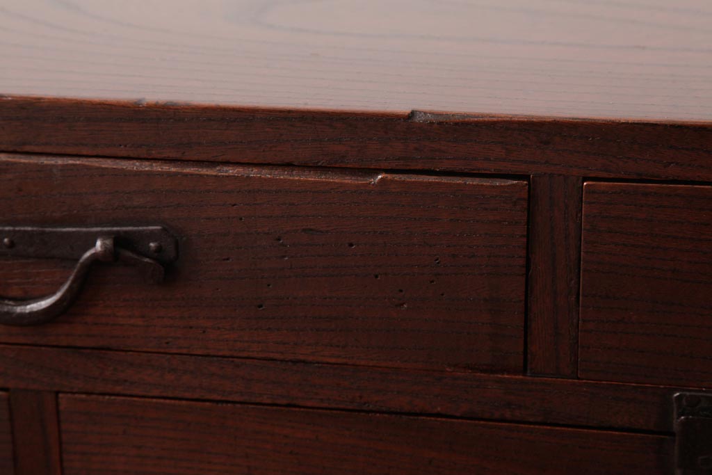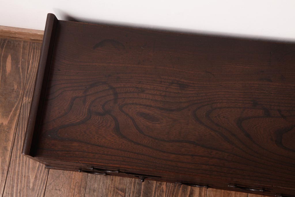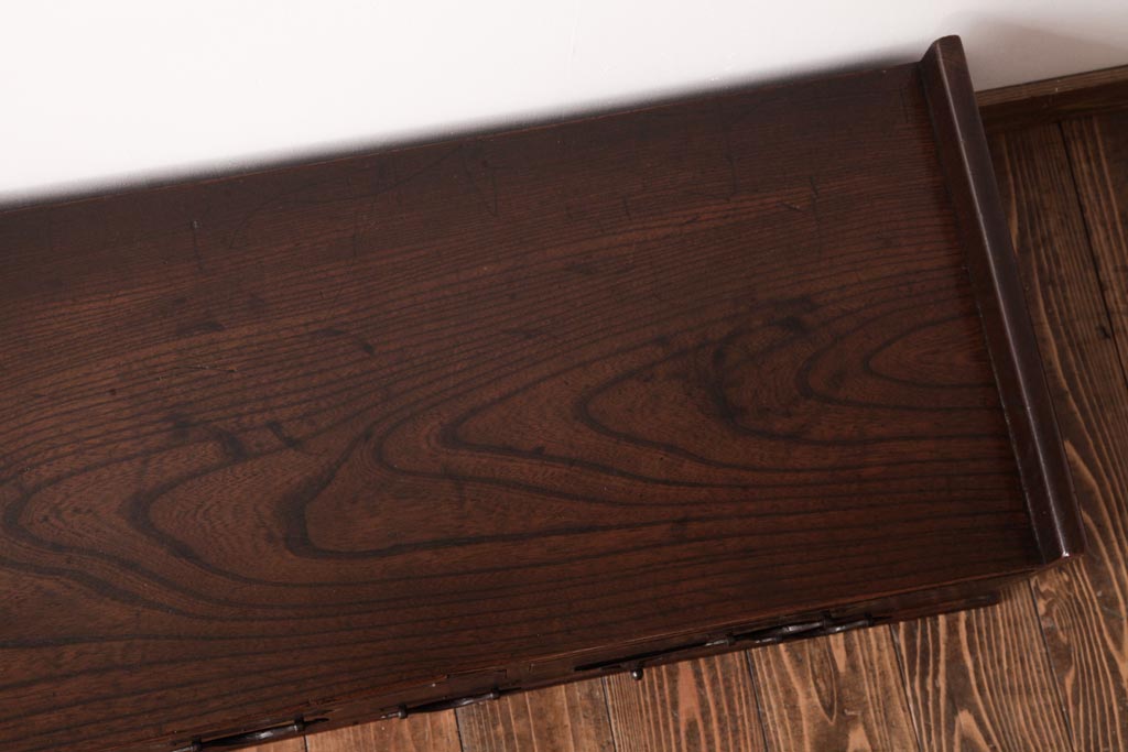 アンティーク家具 明治期 三方ケヤキ材 激レア!趣溢れる引き出し付き置き床(置床、ローボード)(R-036821)