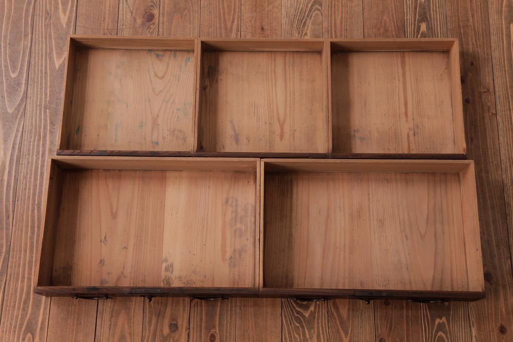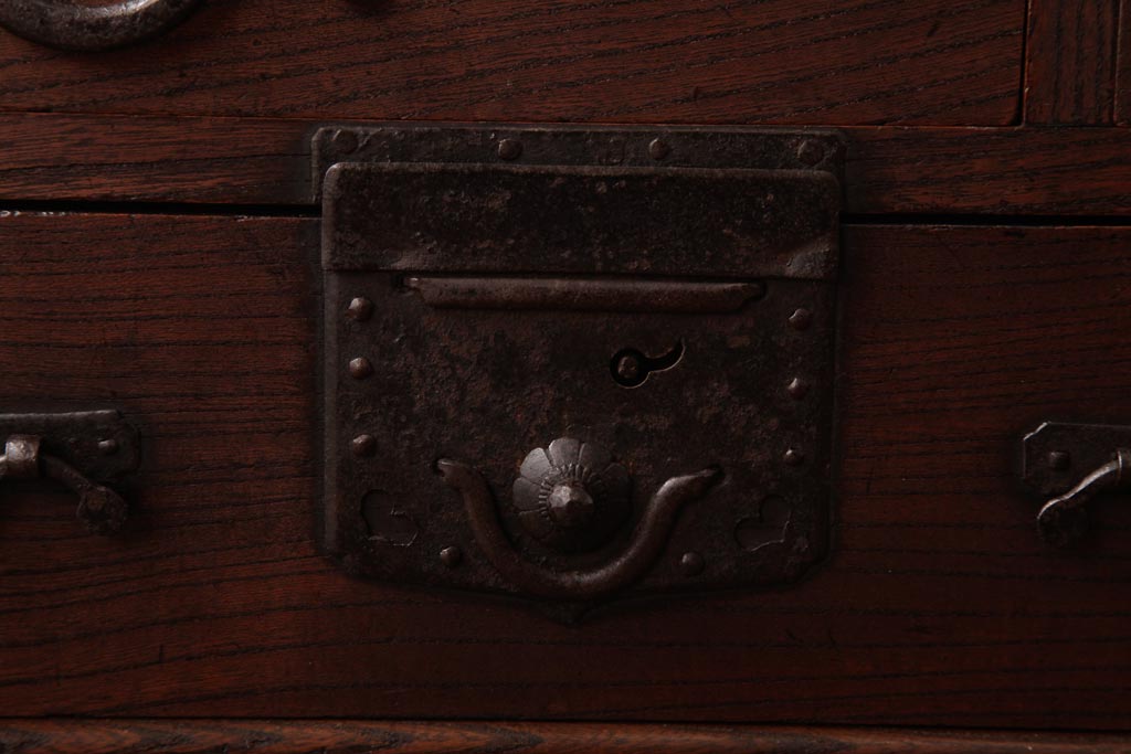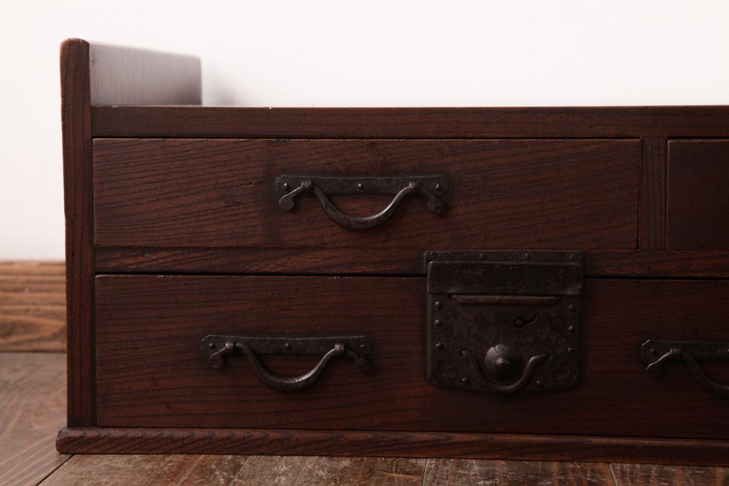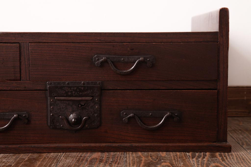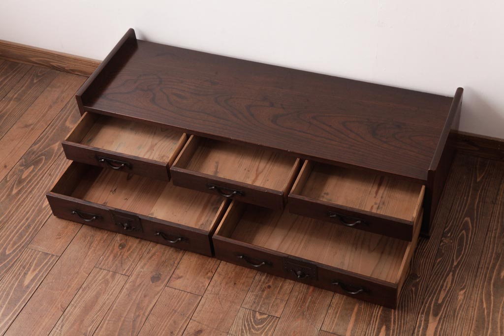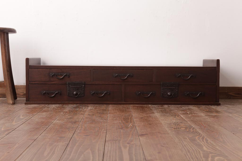 アンティーク家具 明治期 三方ケヤキ材 激レア!趣溢れる引き出し付き置き床(置床、ローボード)(R-036821)