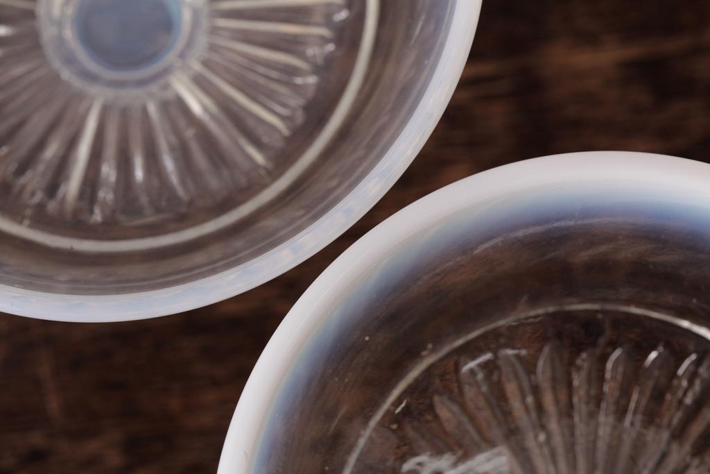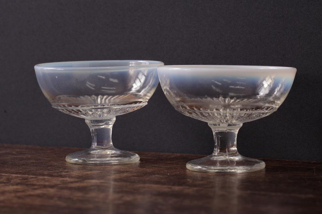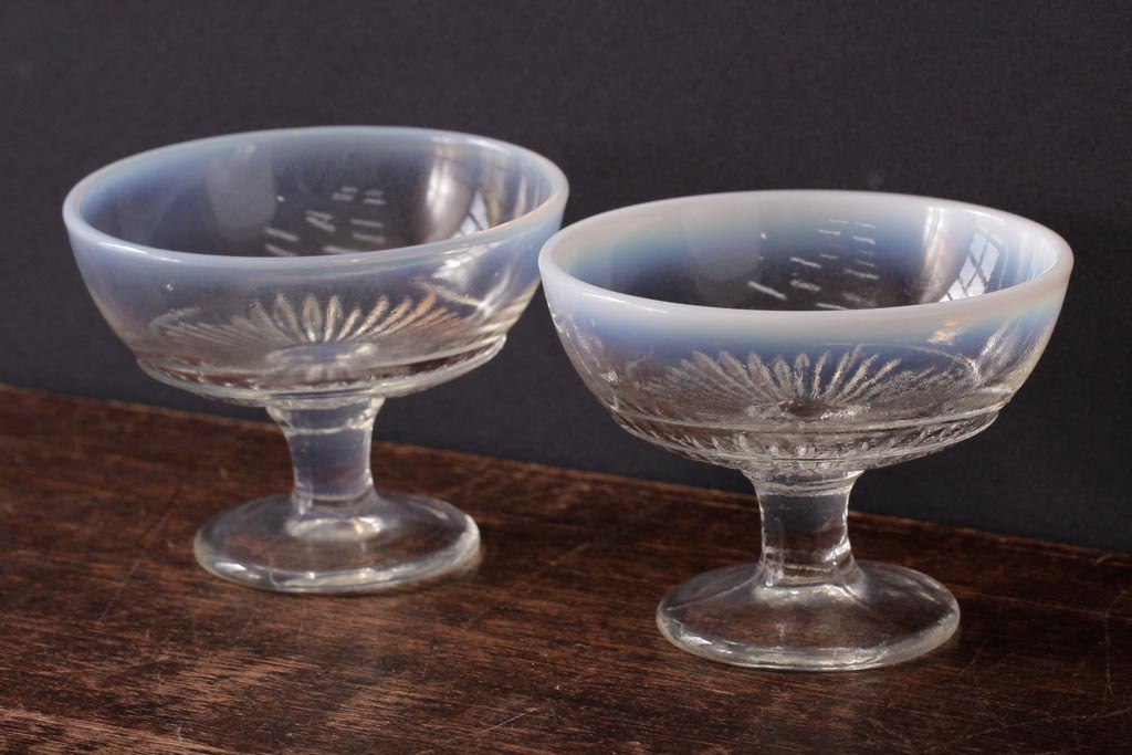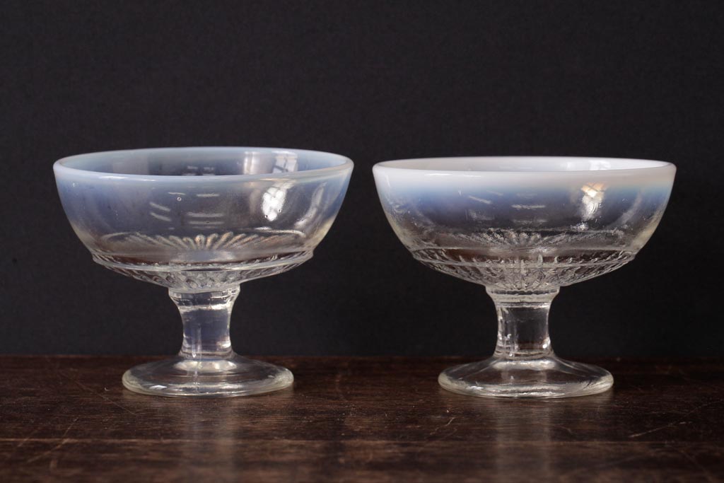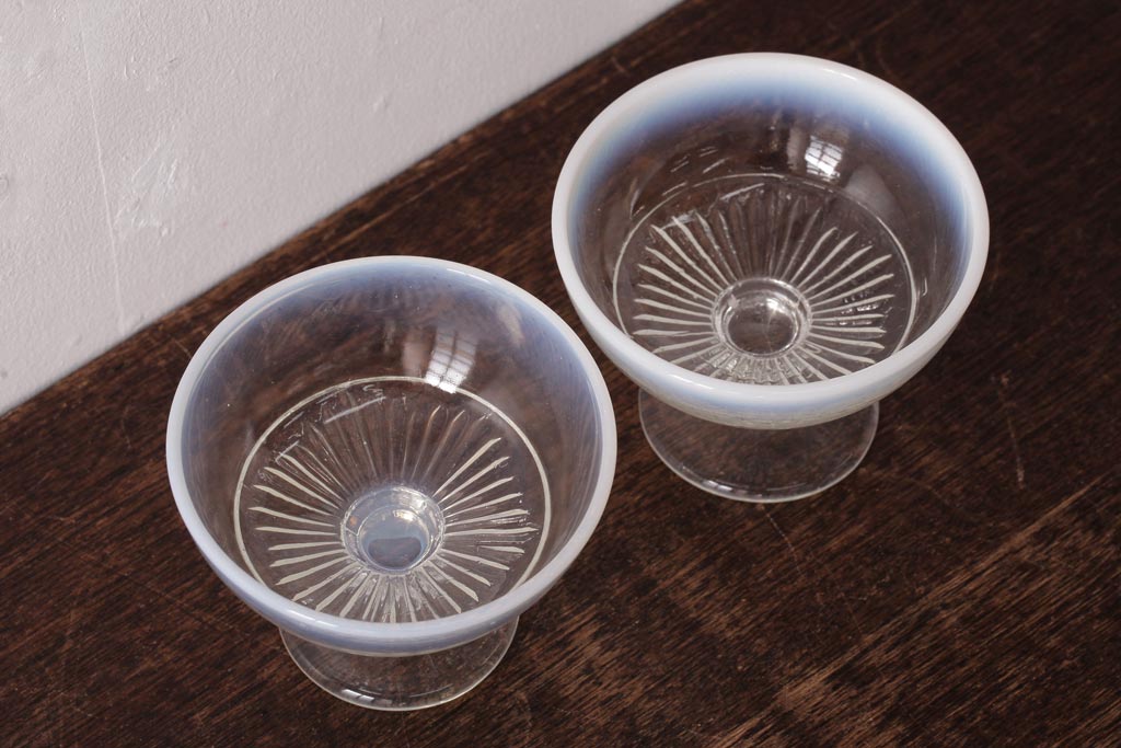 ラフジュ工房> 和食器・茶道具> 氷コップ > レトロ雑貨 昭和レトロ コレクションにもぴったりなプレスガラスの乳白暈し氷コップ2個セット(プレスガラス)(R-036837)