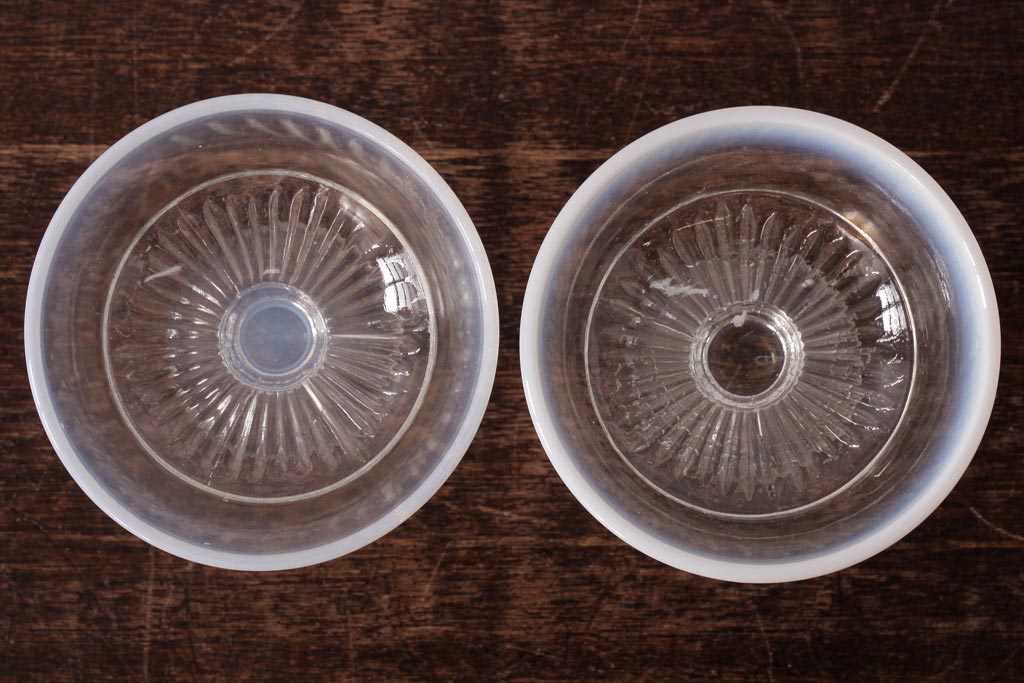 レトロ雑貨 昭和レトロ コレクションにもぴったりなプレスガラスの乳白暈し氷コップ2個セット(プレスガラス)(R-036837)