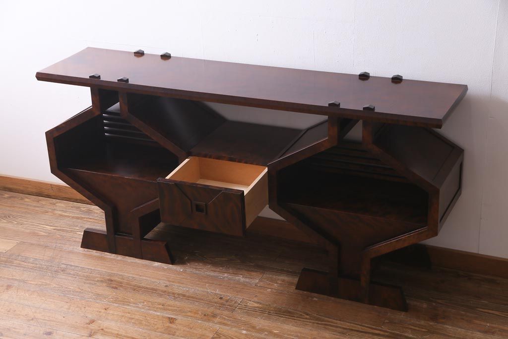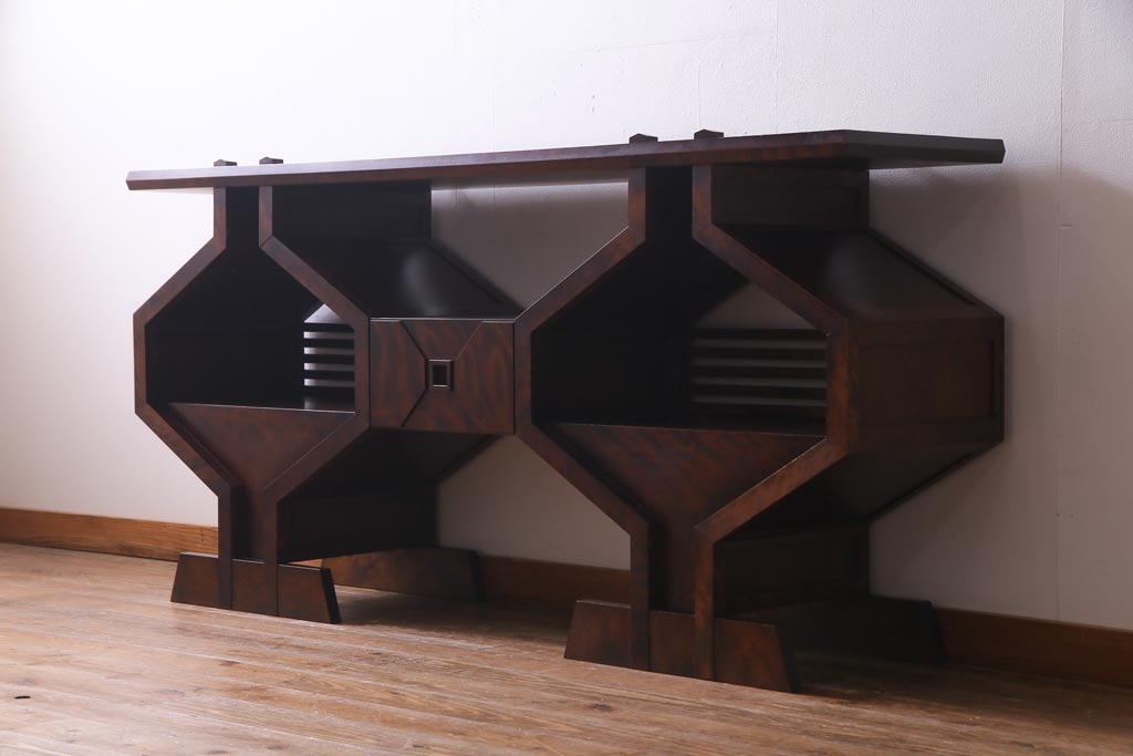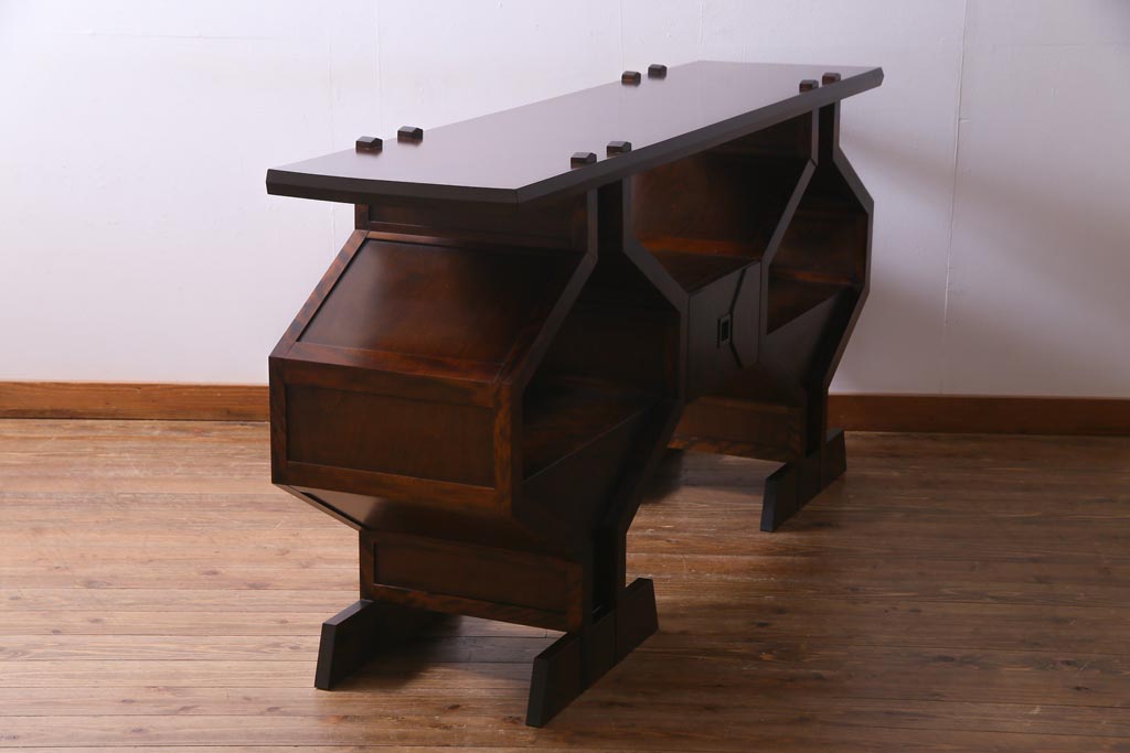 ラフジュ工房> オープンラック・シェルフ> ディスプレイラック > 中古 民芸家具 星野民芸(星野民藝) 桜材 激レア品 存在感を放つお洒落なサイドボード(飾り棚、陳列棚、カウンター)