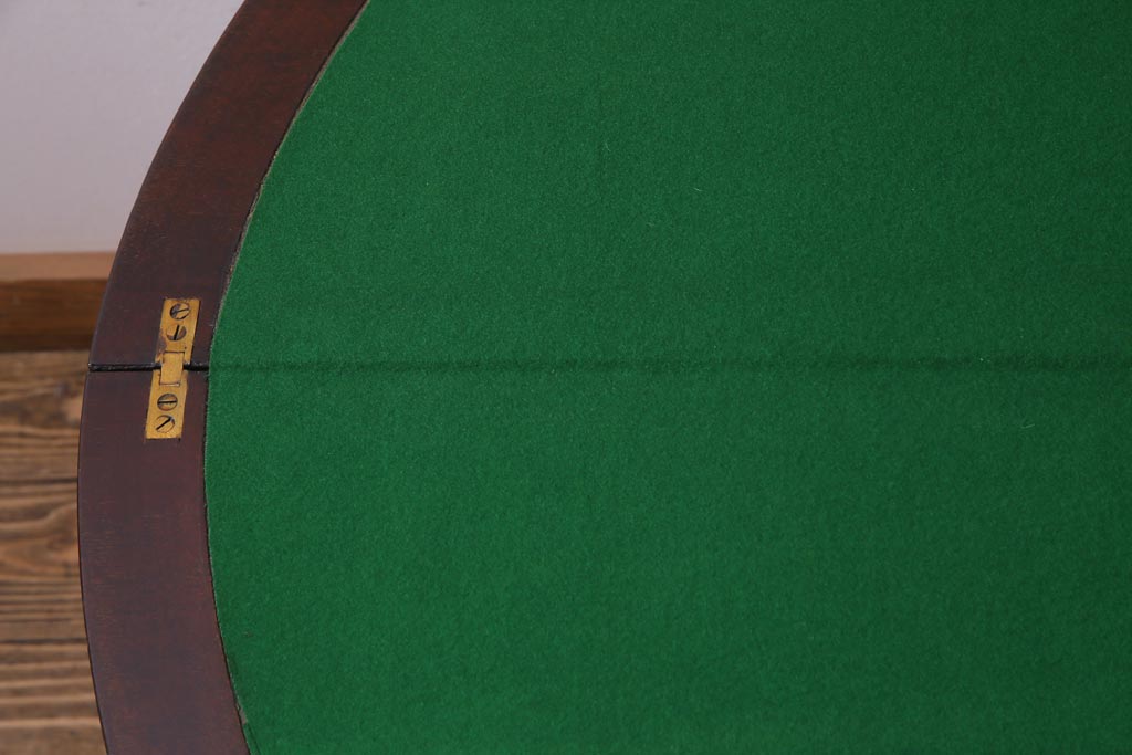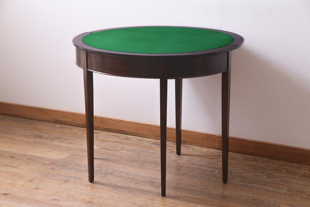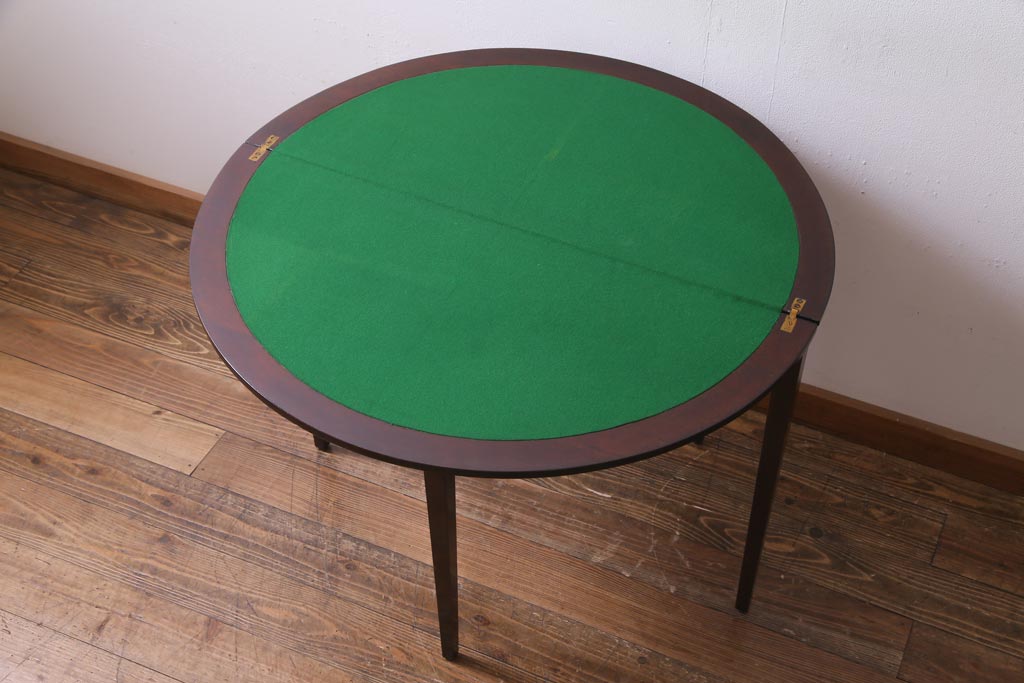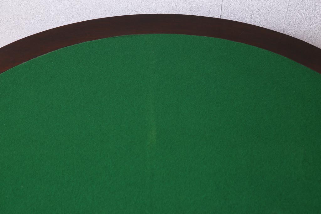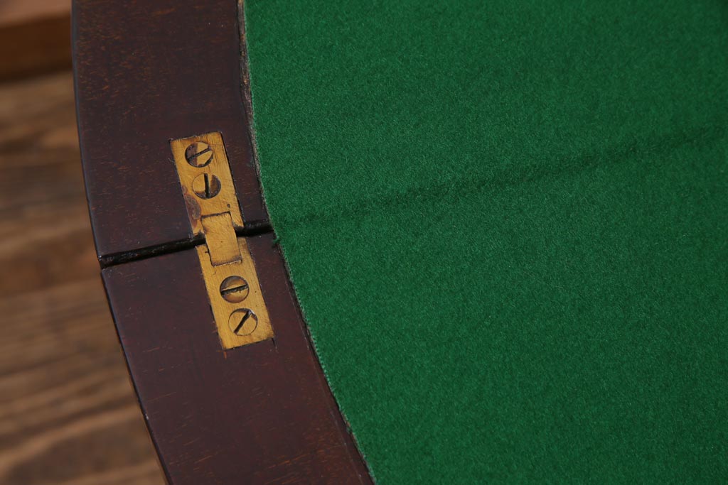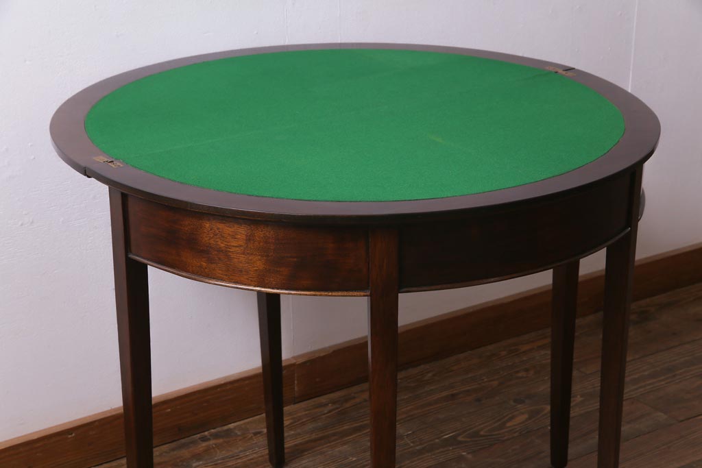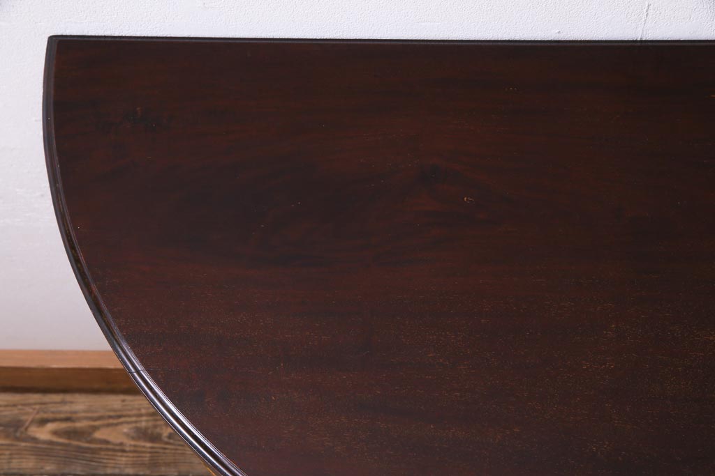 ラフジュ工房> テーブル> サイドテーブル > アンティーク家具 英国イギリスアンティーク マホガニー材 ラウンド型のカードテーブル(コンソールテーブル、エクステンションテーブル)(R-036853)