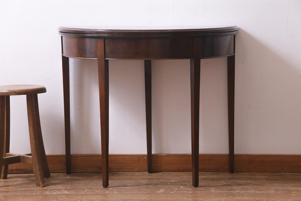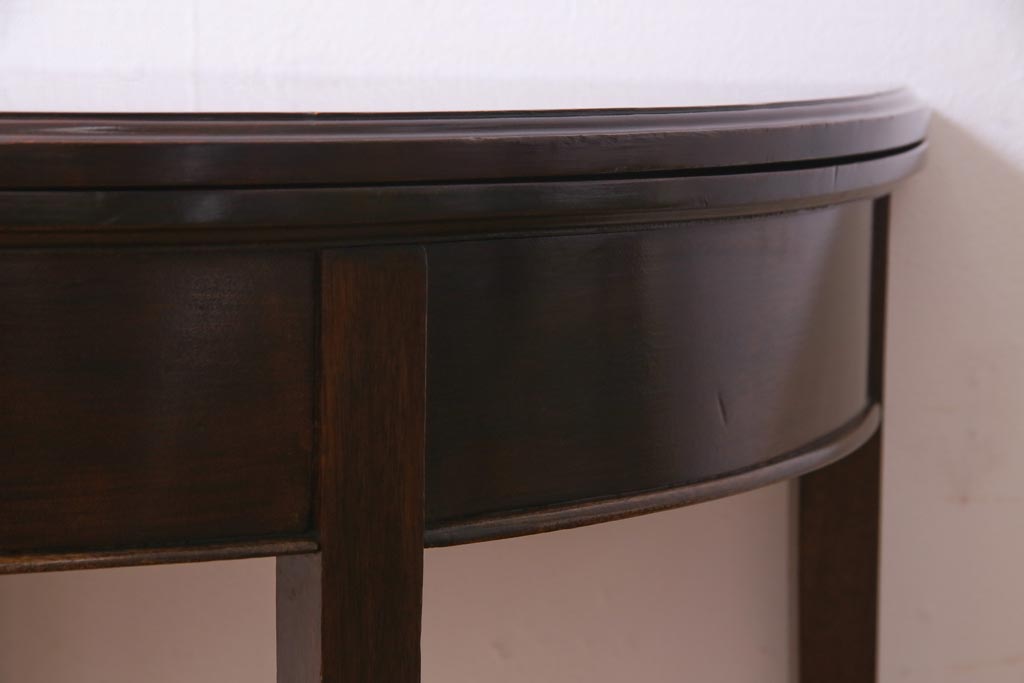 アンティーク家具 英国イギリスアンティーク マホガニー材 ラウンド型のカードテーブル(コンソールテーブル、エクステンションテーブル)(R-036853)