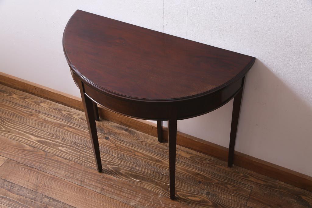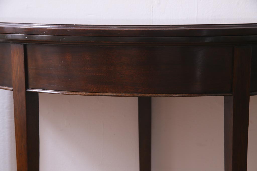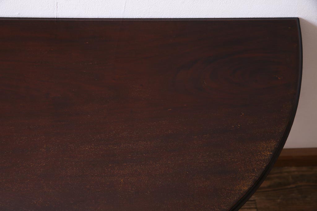 ラフジュ工房> テーブル> コンソールテーブル > アンティーク家具 英国イギリスアンティーク マホガニー材 ラウンド型のカードテーブル(コンソールテーブル、エクステンションテーブル)(R-036853)