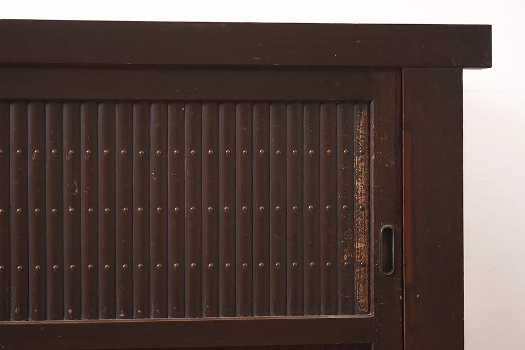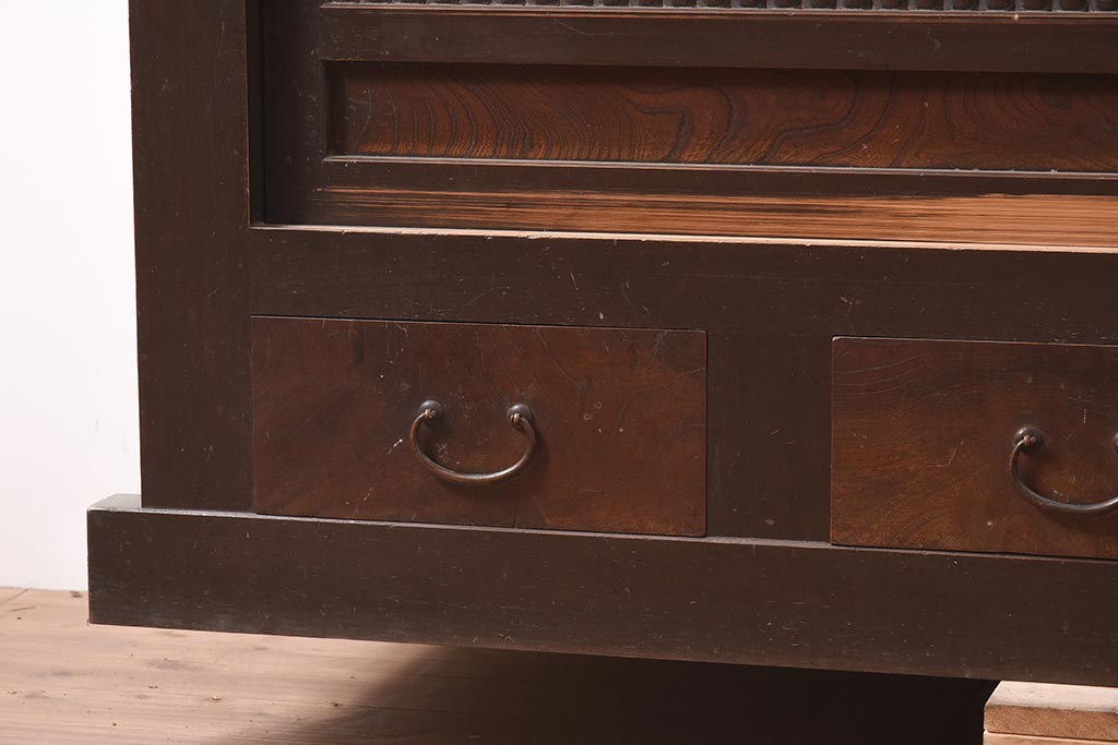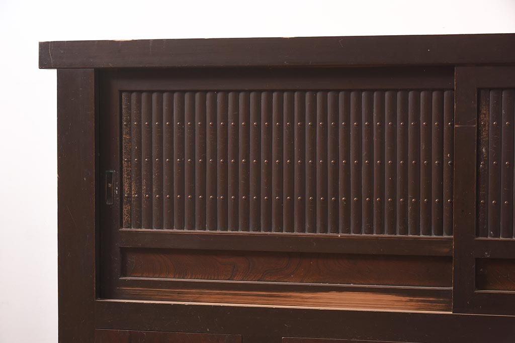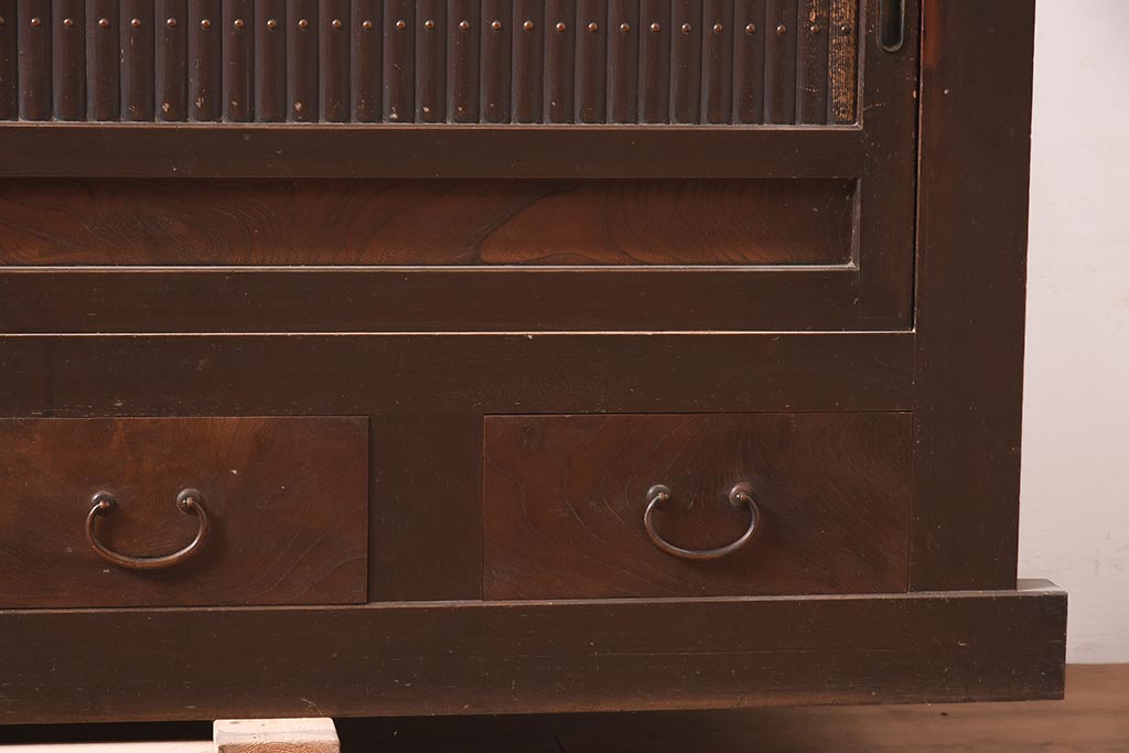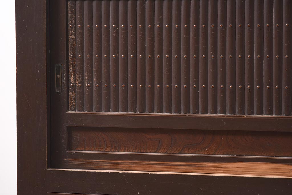 アンティーク家具 明治期 丸桟 銅金具 上手物の近江水屋箪笥キャビネット(収納棚、サイドボード)(R-036314)です。