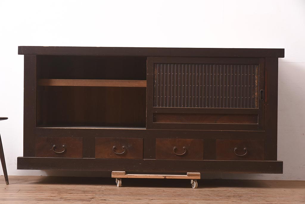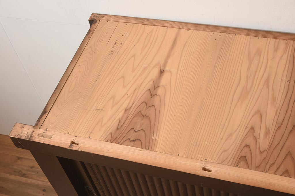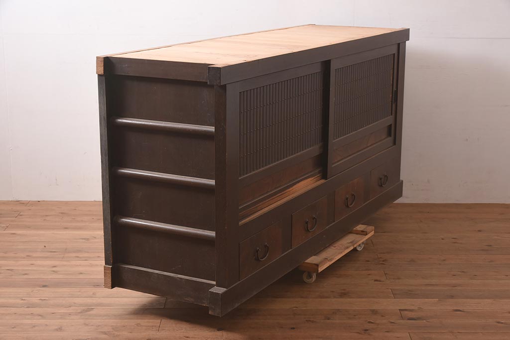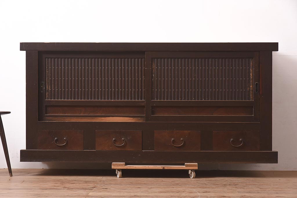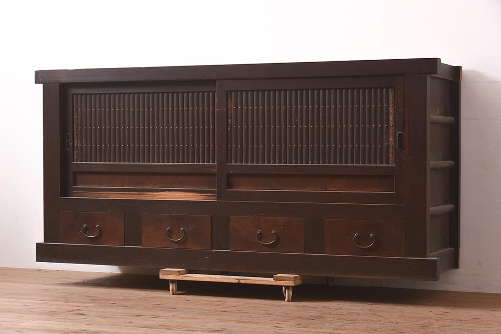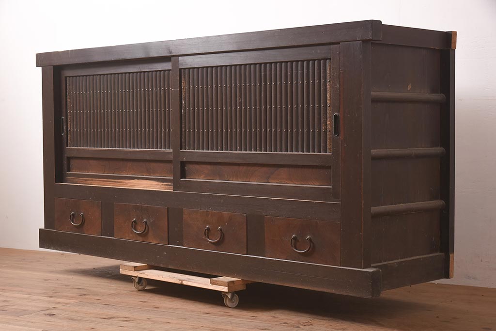 アンティーク家具 明治期 丸桟 銅金具 上手物の近江水屋箪笥キャビネット(収納棚、サイドボード)(R-036314)です。