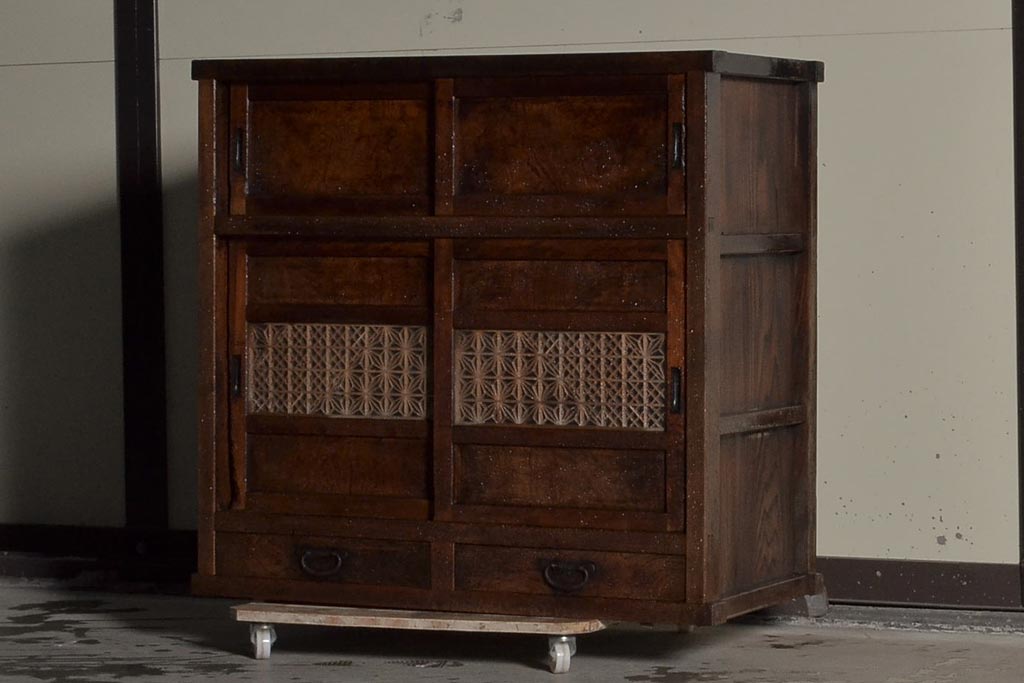 アンティーク家具 組子入り 前面ケヤキ材の和風キャビネット(茶箪笥、水屋箪笥、収納棚)(R-036347)です。