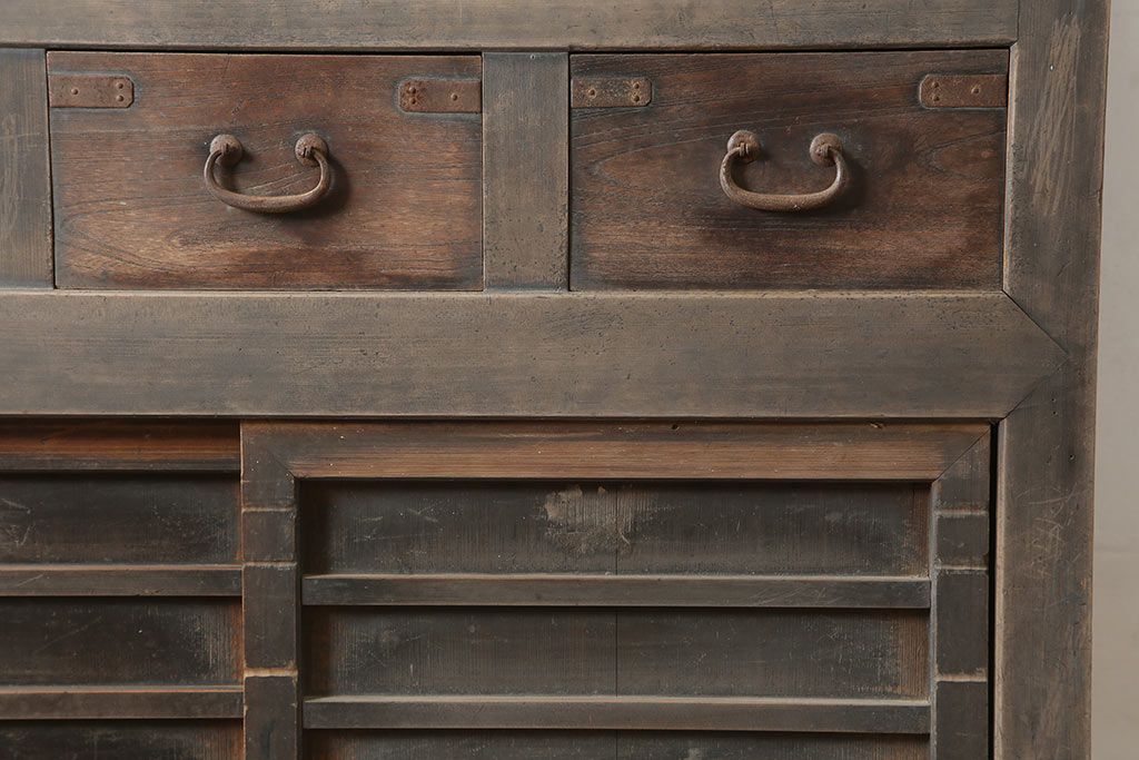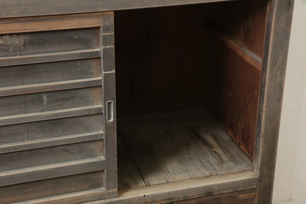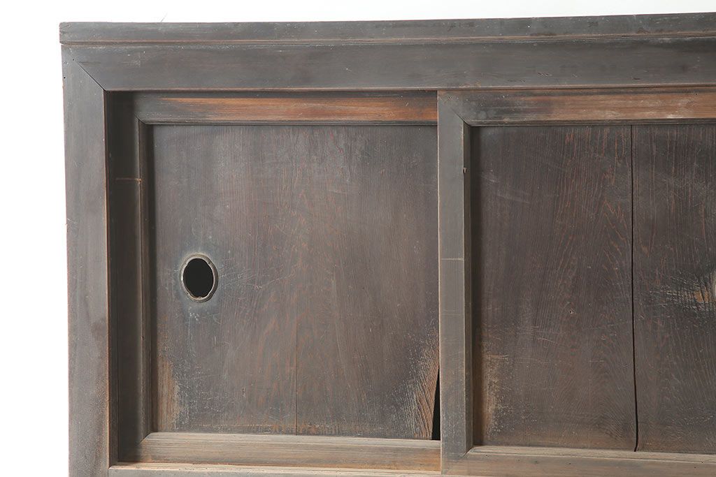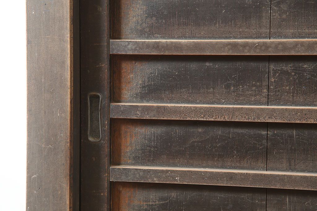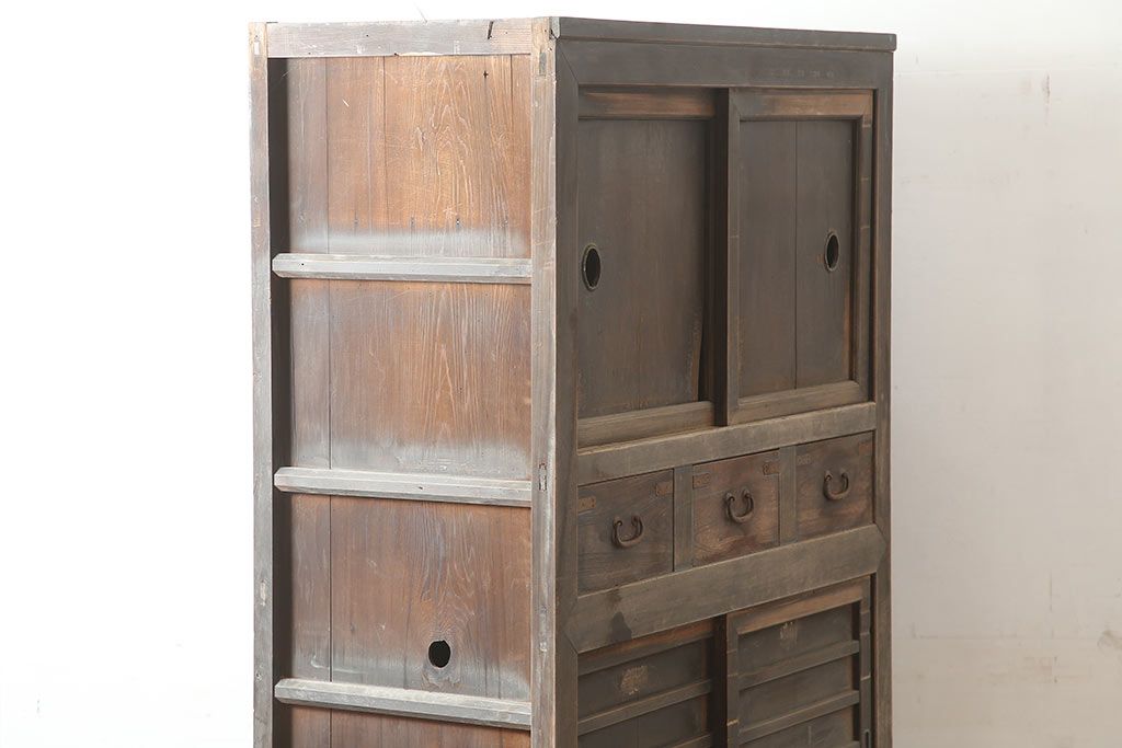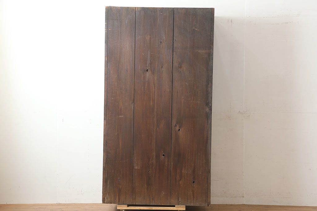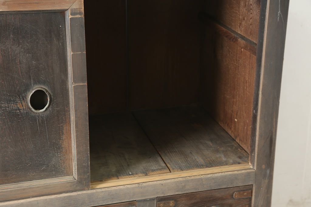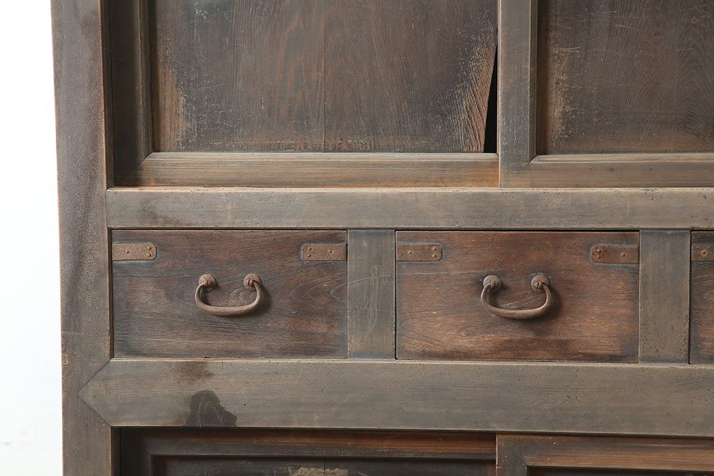 アンティーク家具 明治期 ヒノキ材 一本物 三尺 年季の入った関西水屋箪笥(食器棚、戸棚、収納棚、サイドボード、キャビネット)(R-036287)