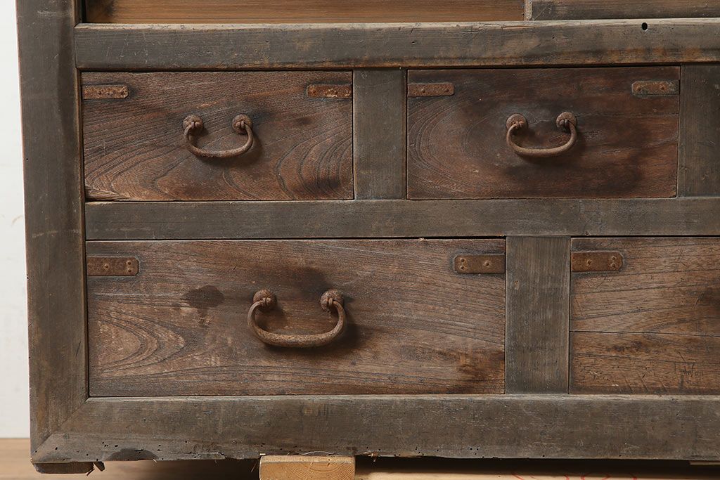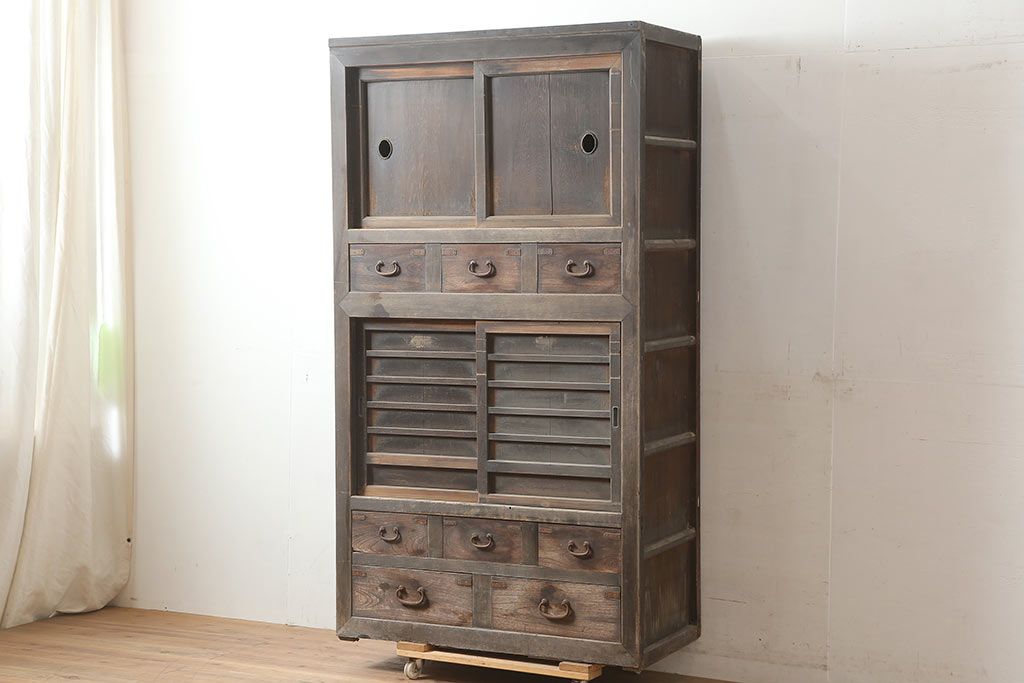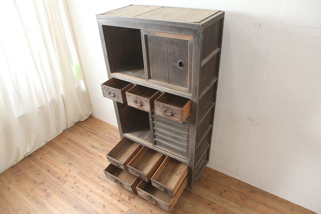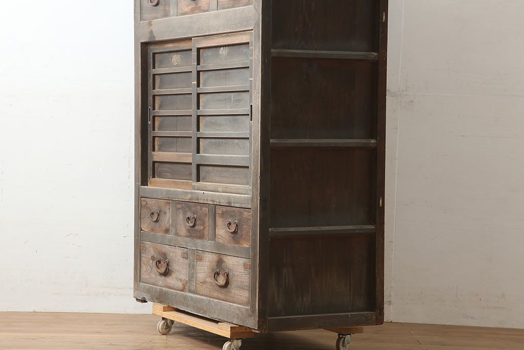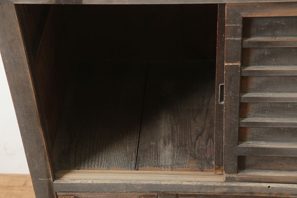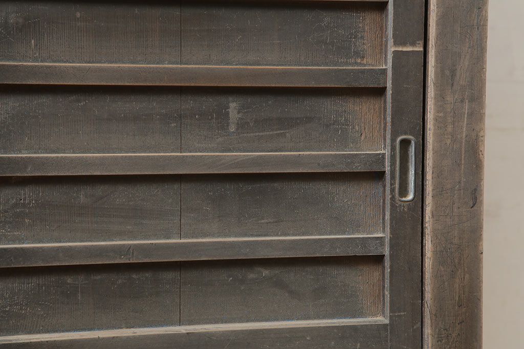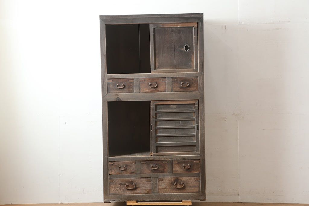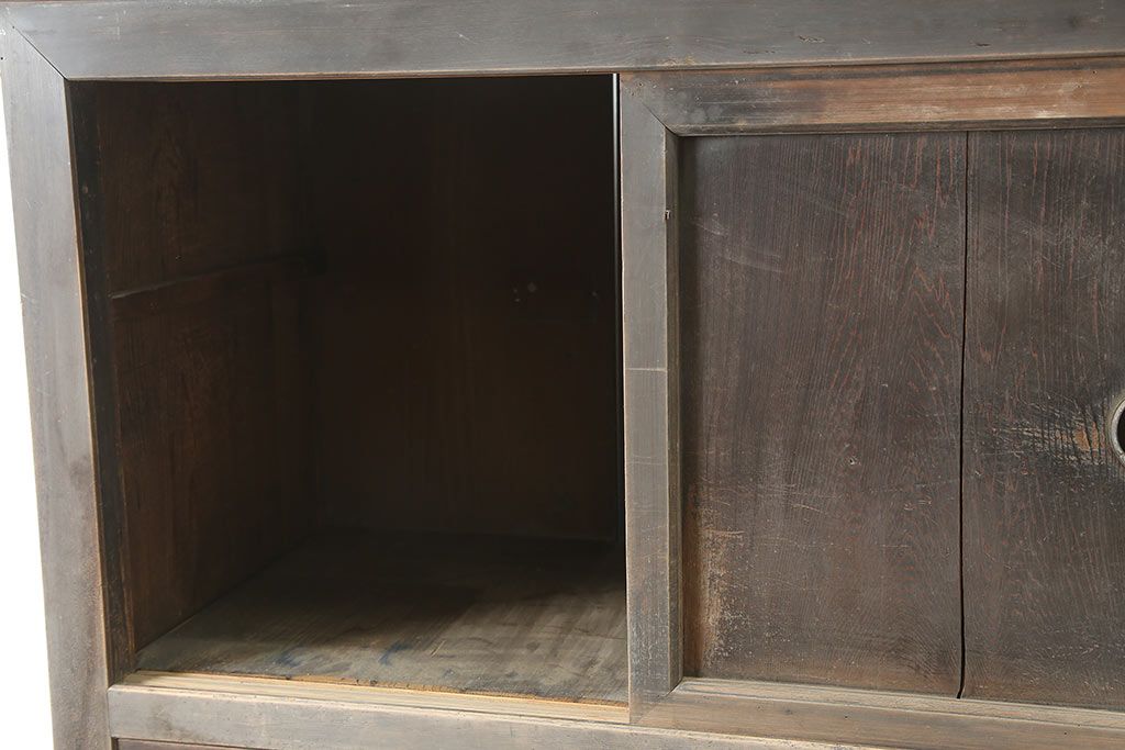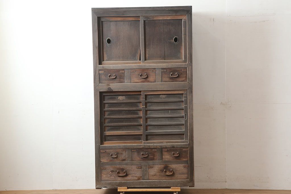 アンティーク家具 明治期 ヒノキ材 一本物 三尺 年季の入った関西水屋箪笥(食器棚、戸棚、収納棚、サイドボード、キャビネット)(R-036287)