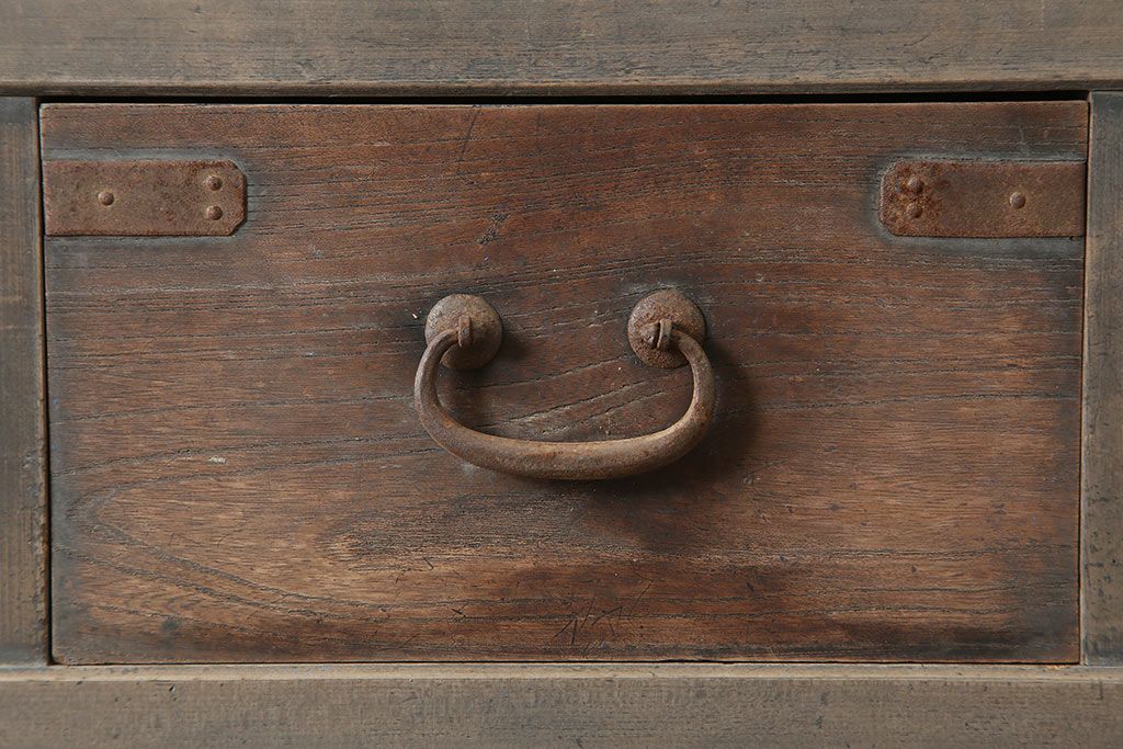 アンティーク家具 明治期 ヒノキ材 一本物 三尺 年季の入った関西水屋箪笥(食器棚、戸棚、収納棚、サイドボード、キャビネット)(R-036287)です。