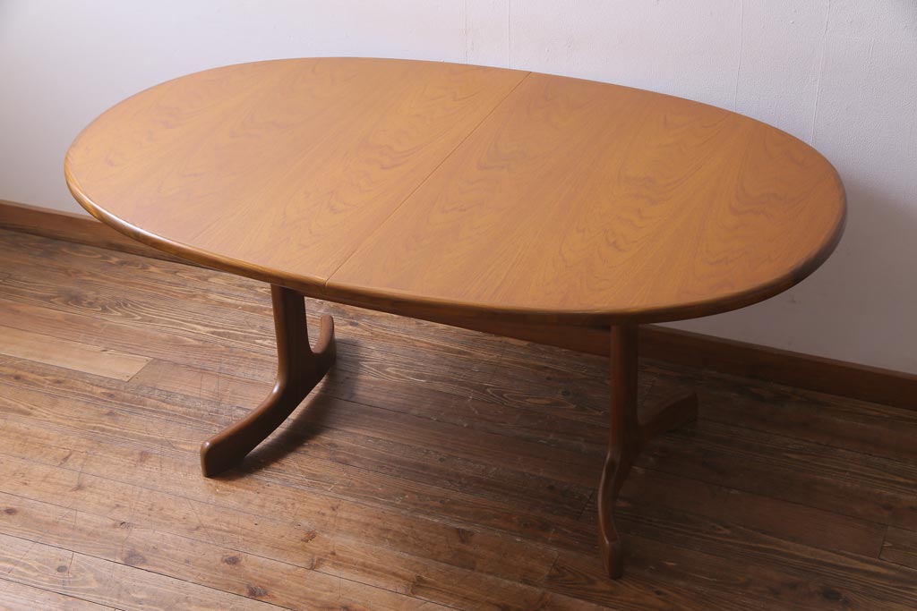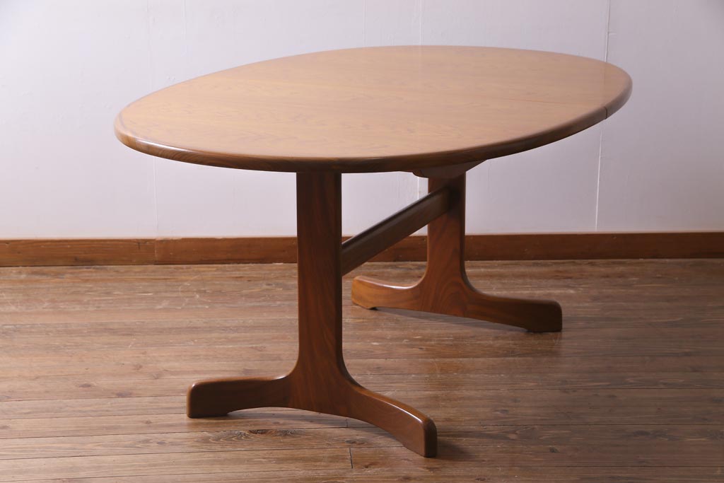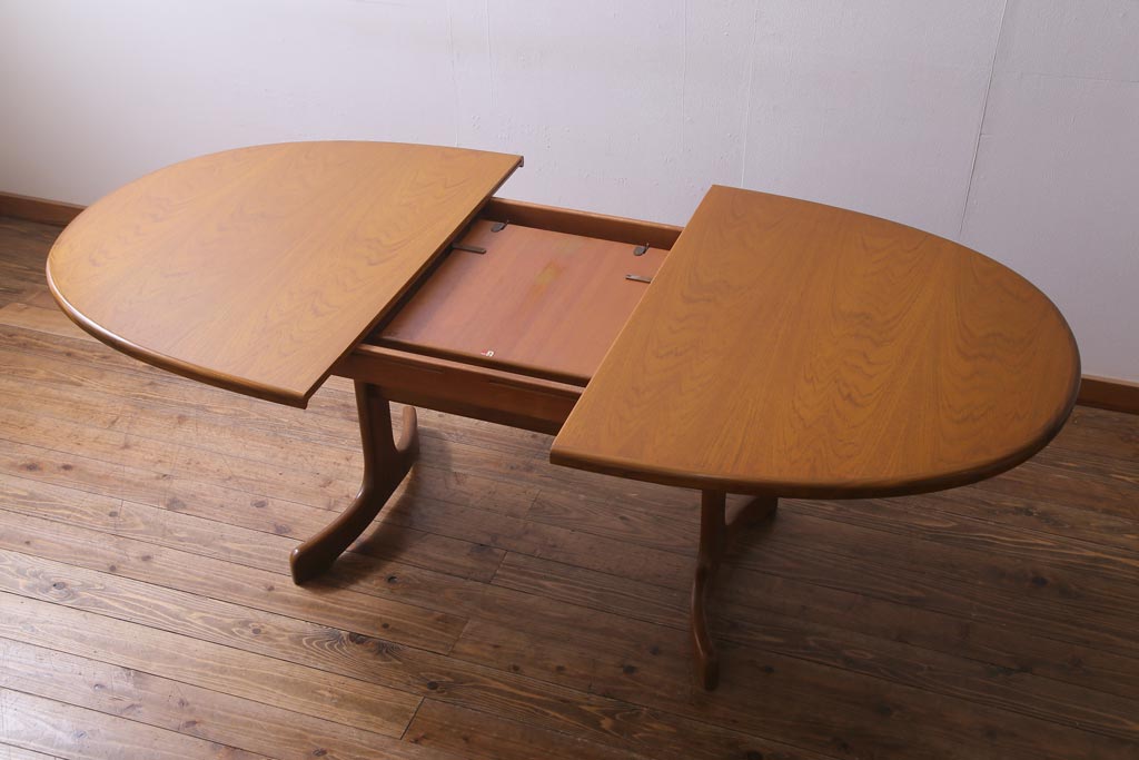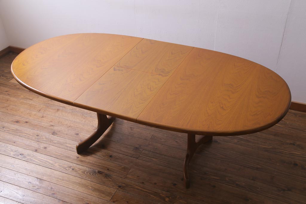 ヴィンテージ家具 G-PLAN(ジープラン) 北欧家具 オーバル型のシンプルなエクステンションテーブル(ダイニングテーブル、ビンテージ)(R-036873)