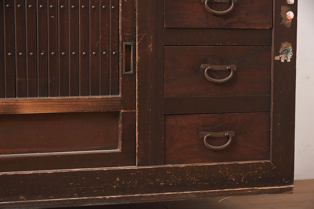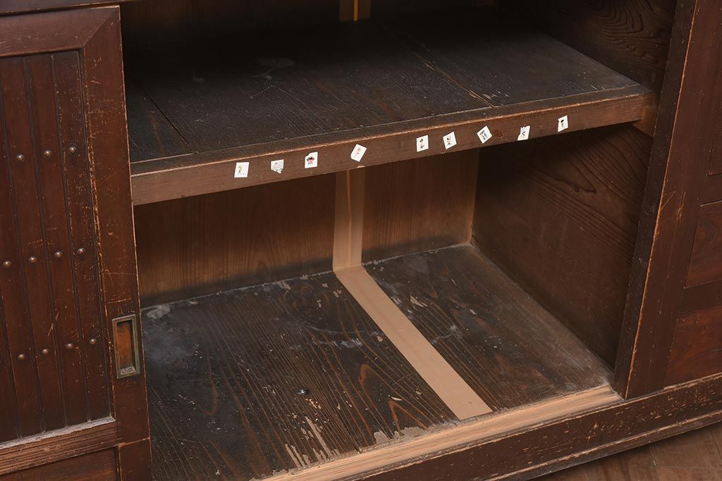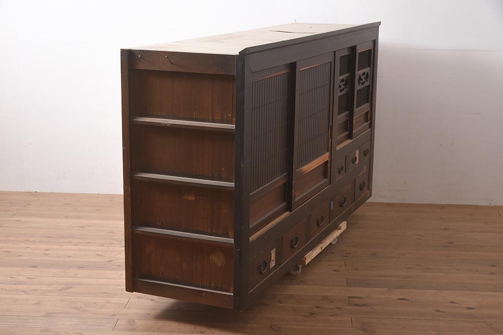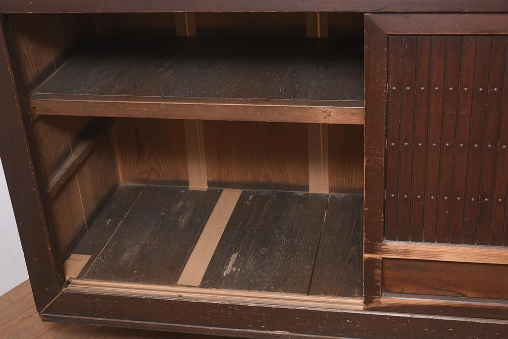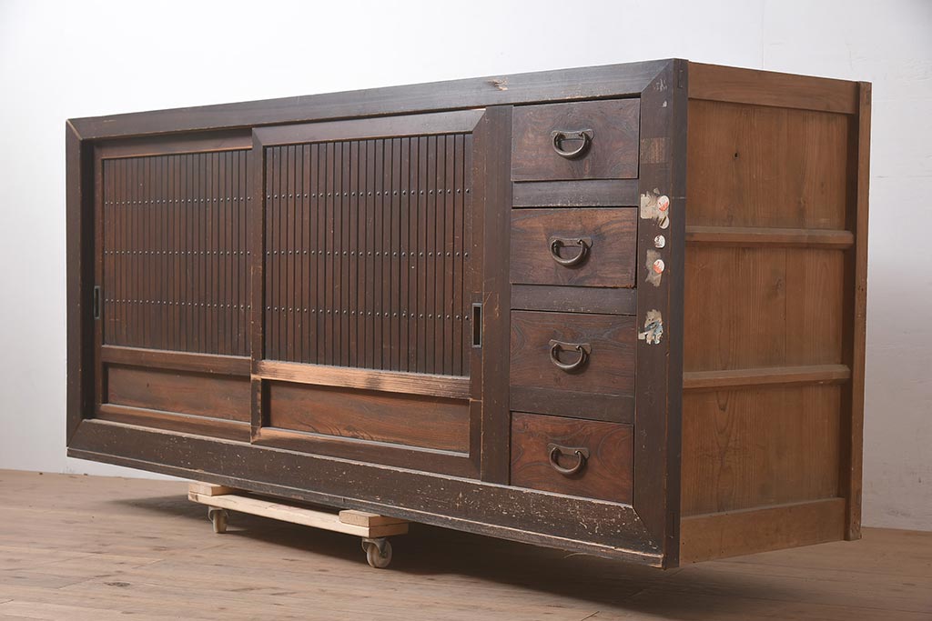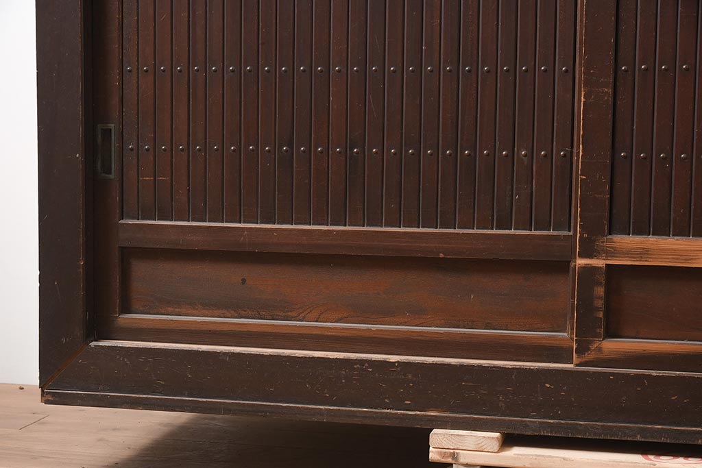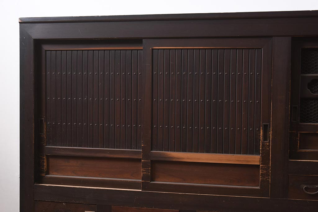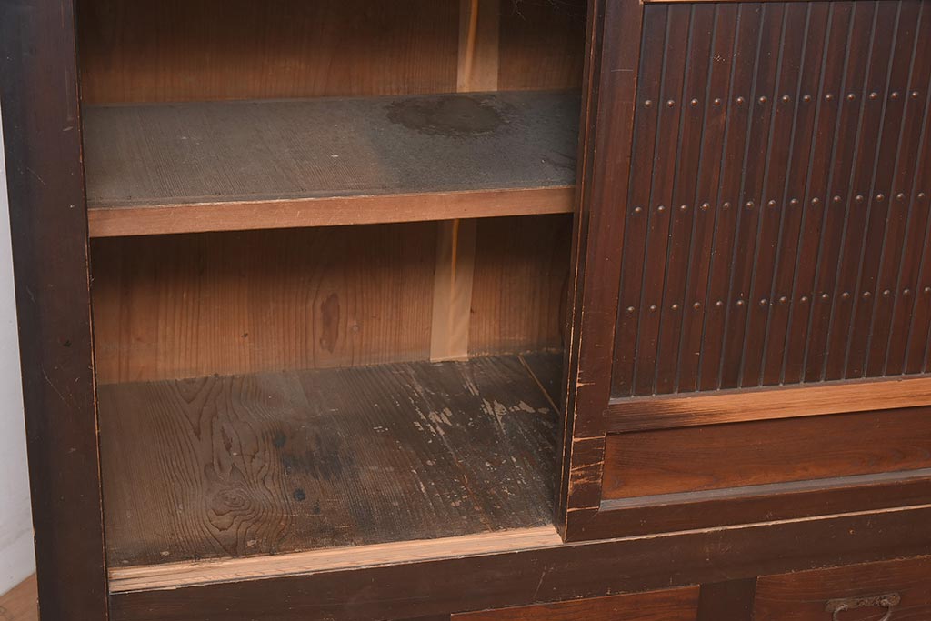 アンティーク家具 縦桟引き戸の近江水屋箪笥キャビネット(収納棚、戸棚)(R-036288)です。