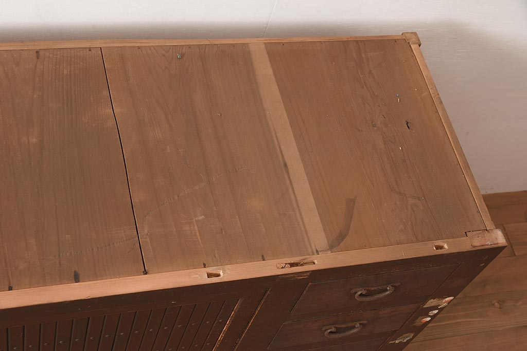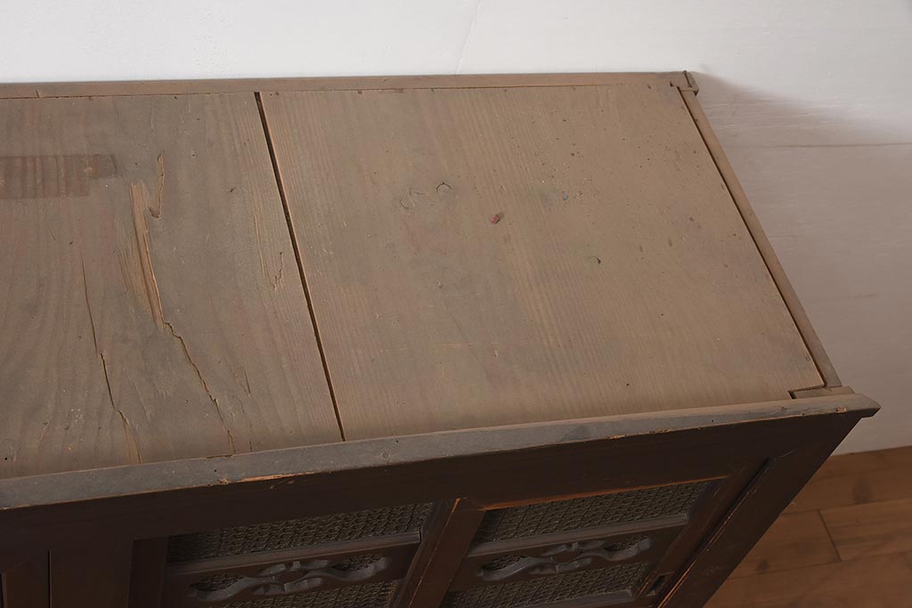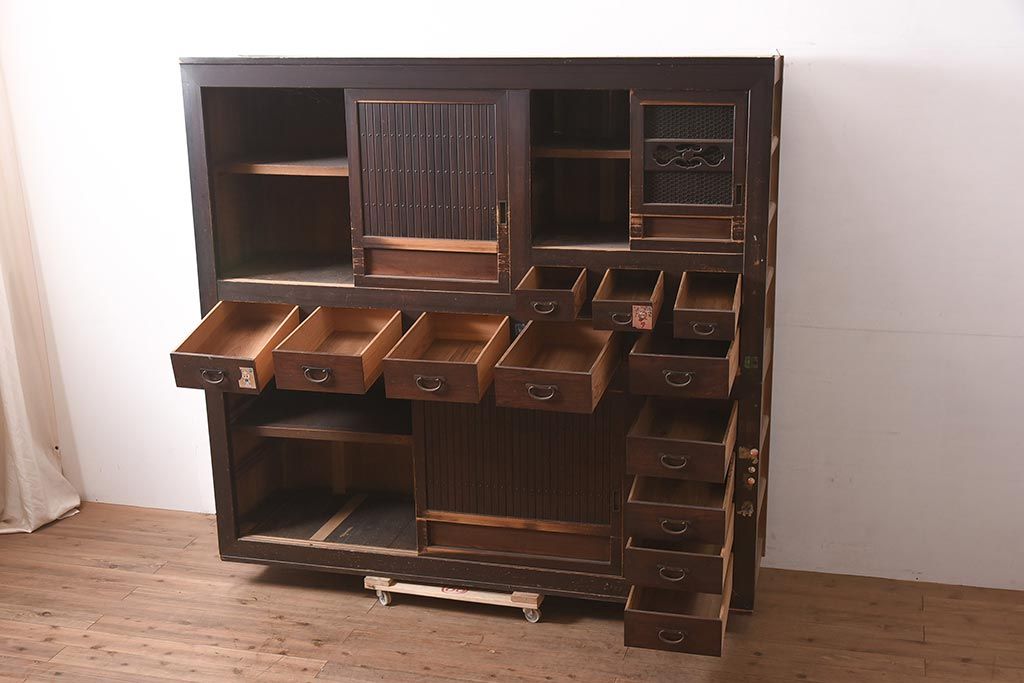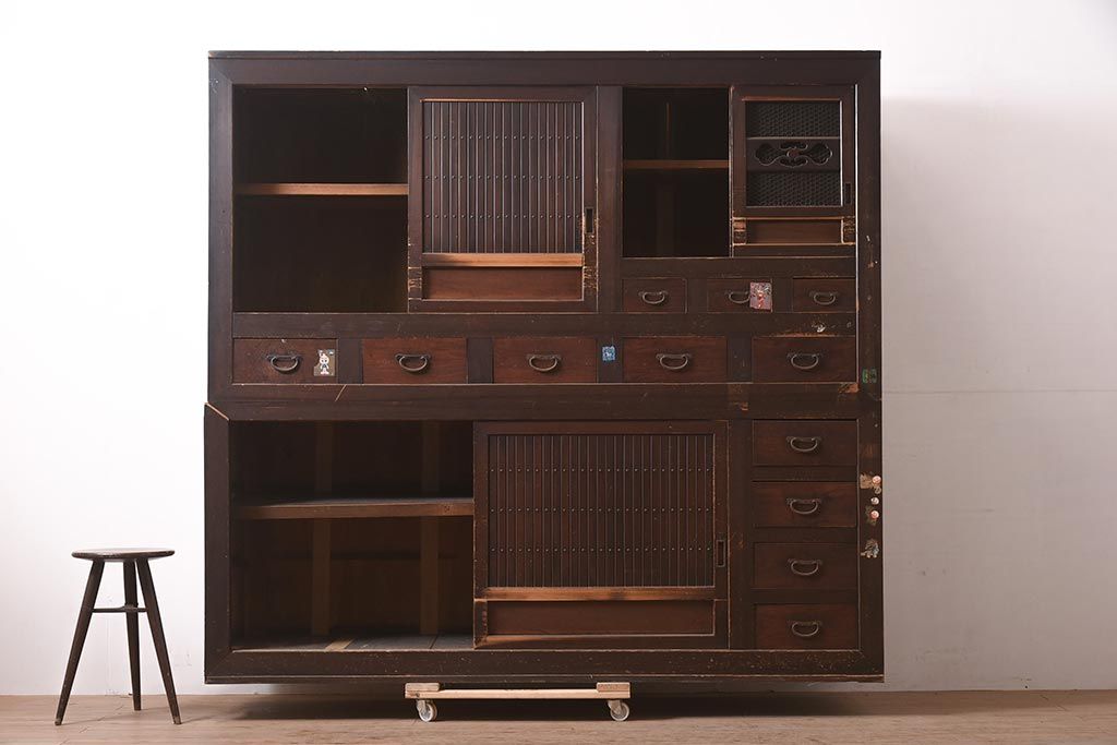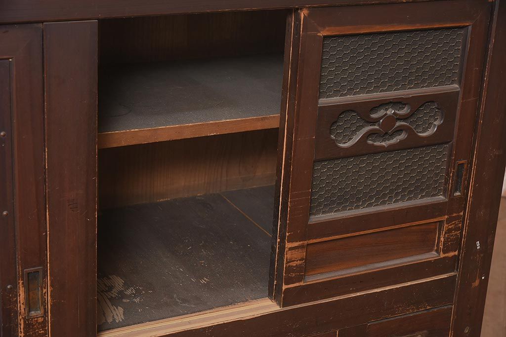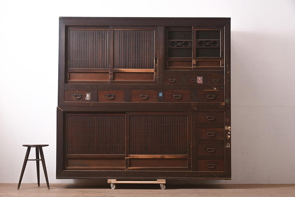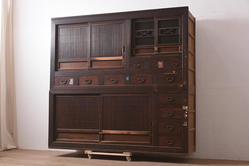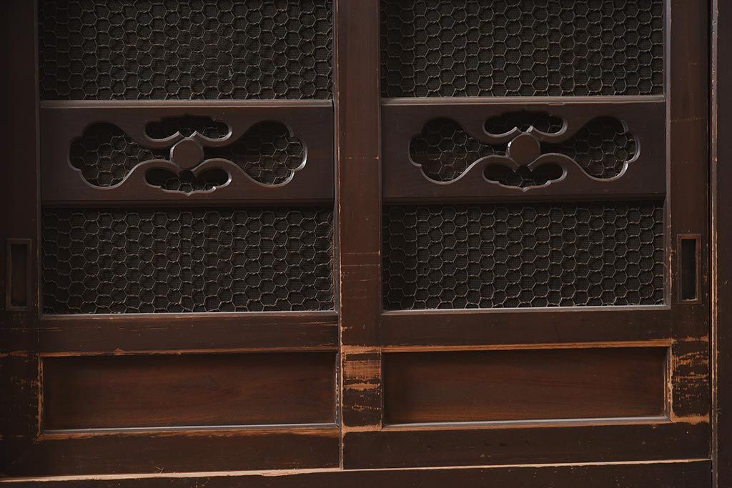 アンティーク家具 縦桟引き戸の近江水屋箪笥キャビネット(収納棚、戸棚)(R-036288)です。