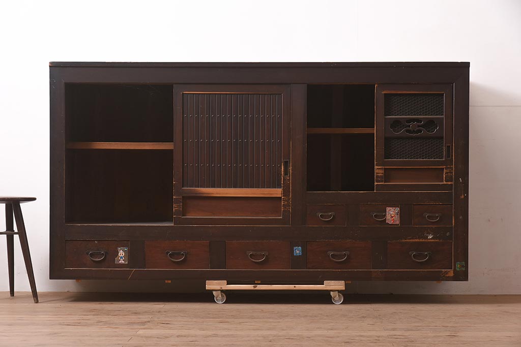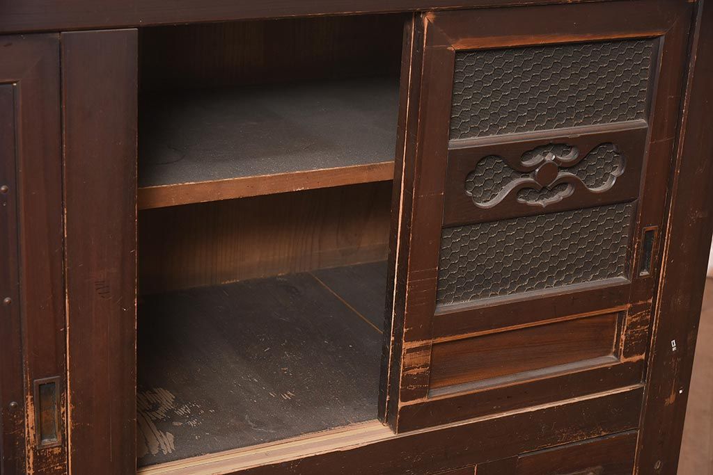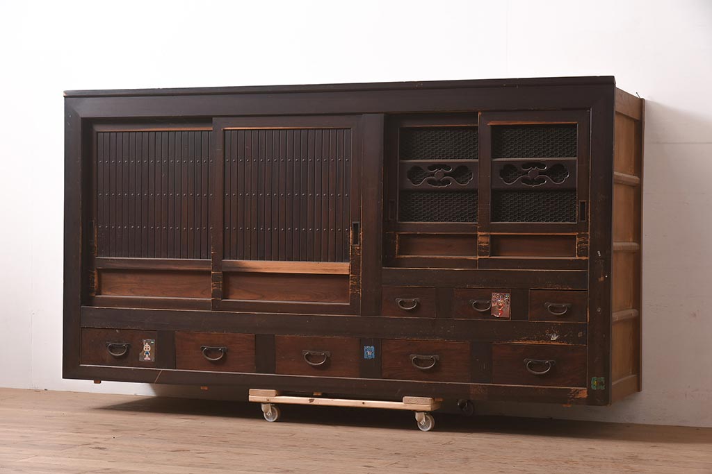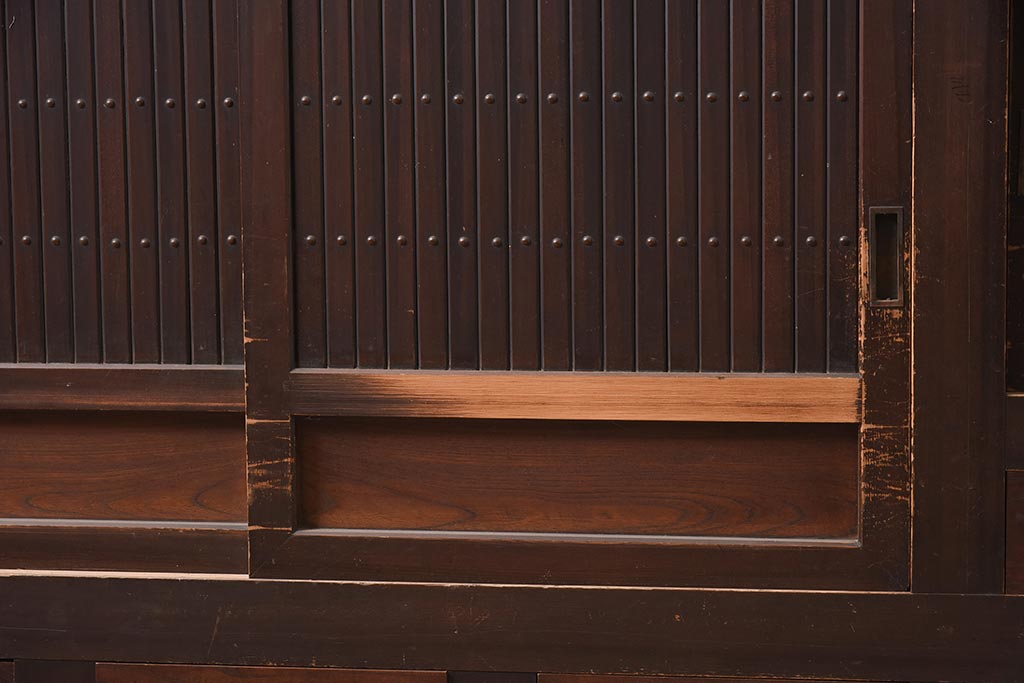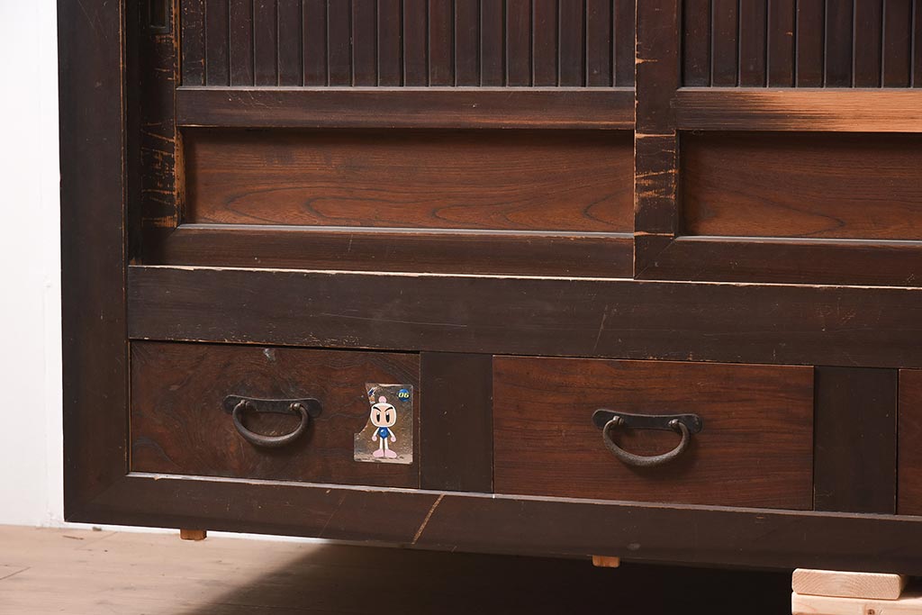 アンティーク家具 縦桟引き戸の近江水屋箪笥テレビ台(キャビネット、戸棚、収納棚、サイドボード、食器棚)(R-036353)