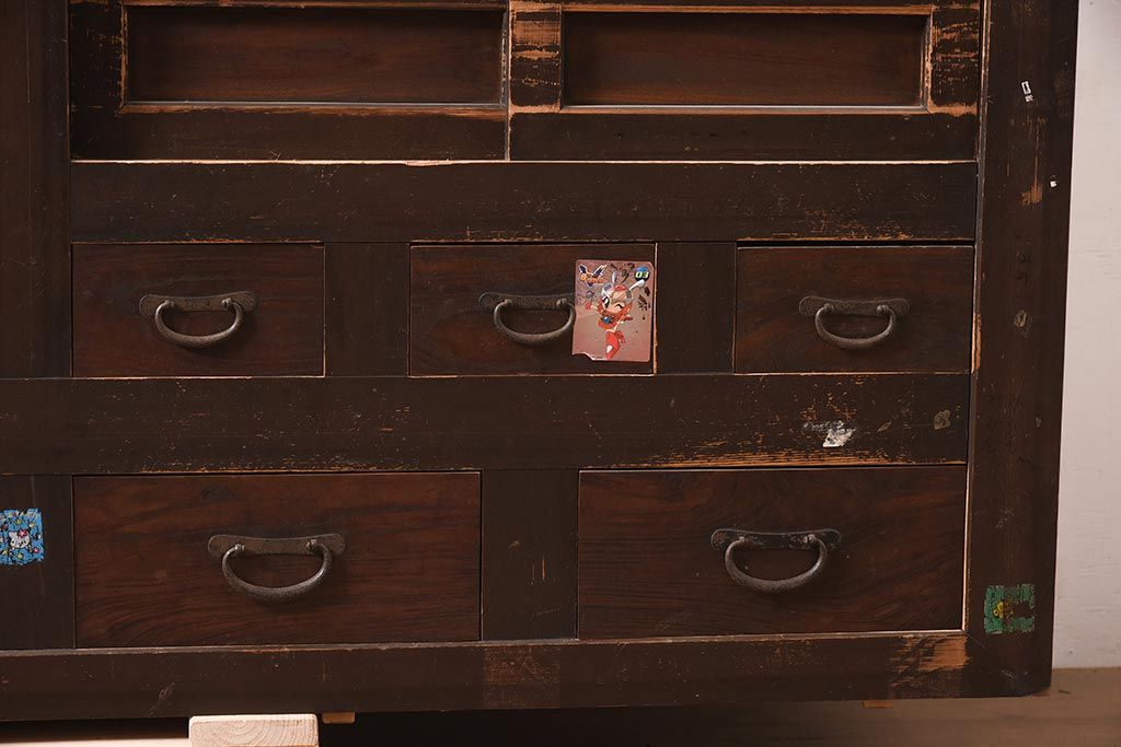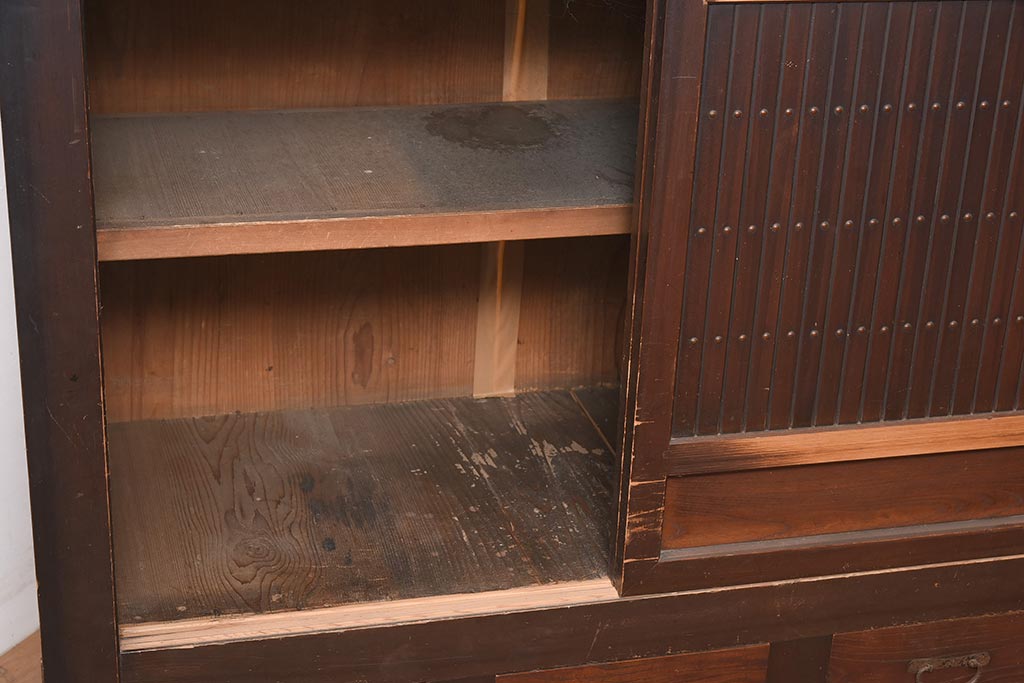 ラフジュ工房> キャビネット・戸棚> サイドキャビネット > アンティーク家具 縦桟引き戸の近江水屋箪笥テレビ台(キャビネット、戸棚、収納棚、サイドボード、食器棚)(R-036353)