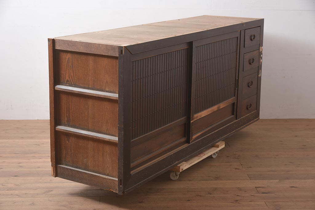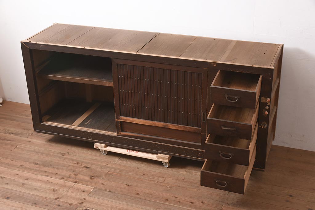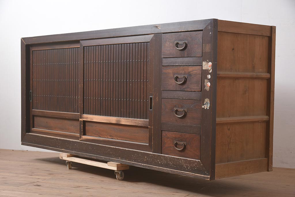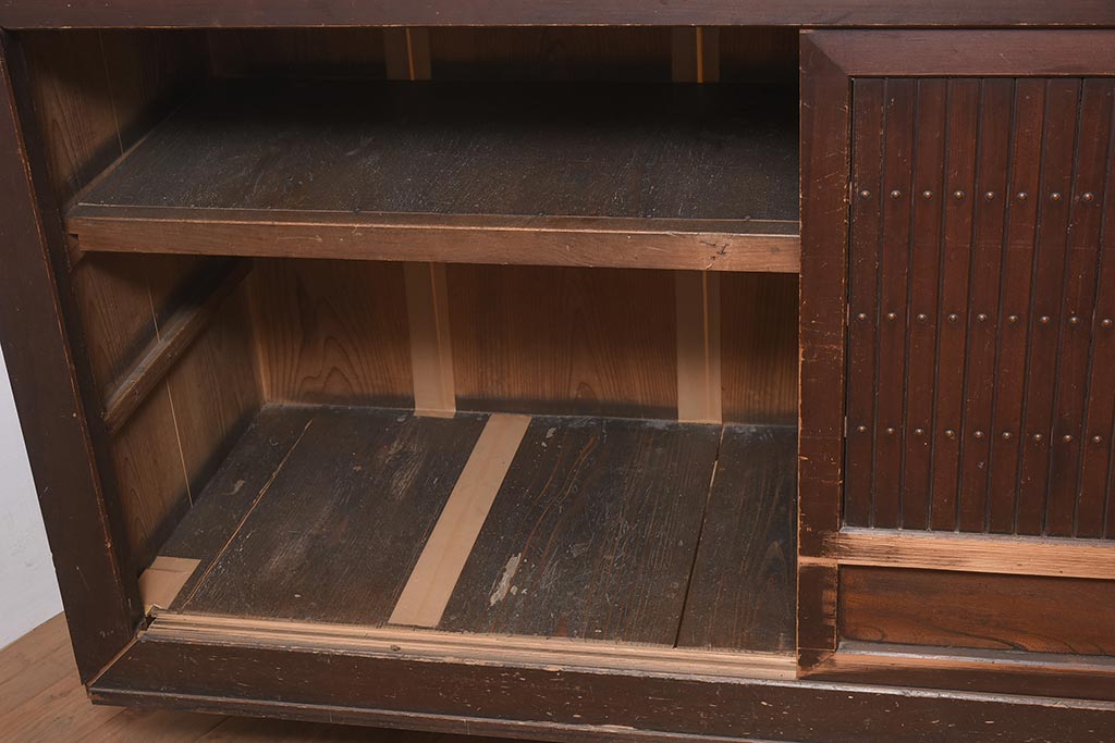 アンティーク家具 縦桟引き戸の近江水屋箪笥テレビ台(キャビネット、戸棚)(R-036354)です。