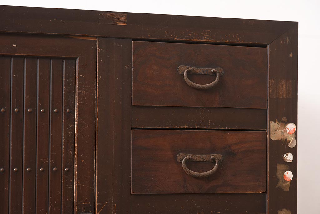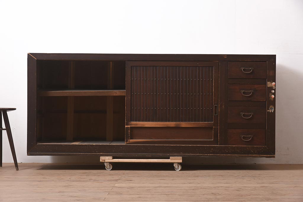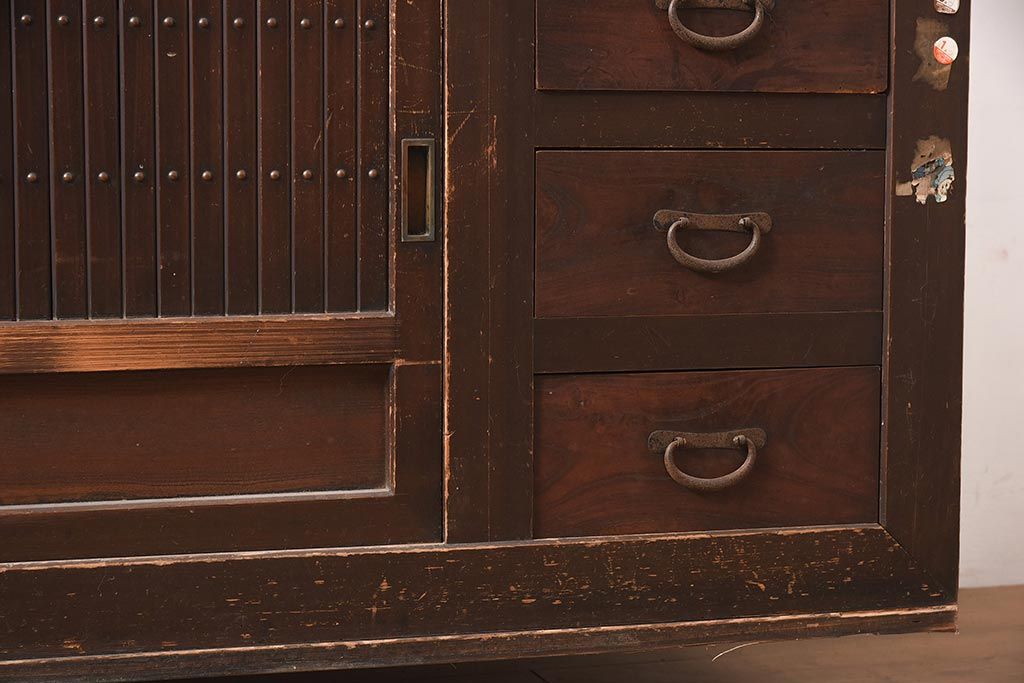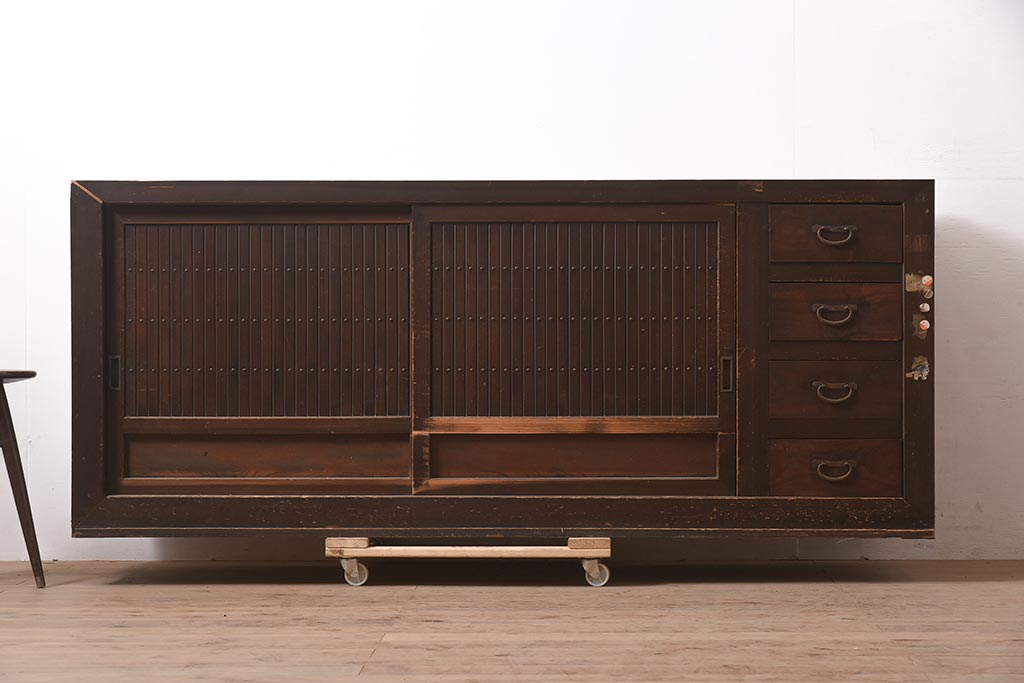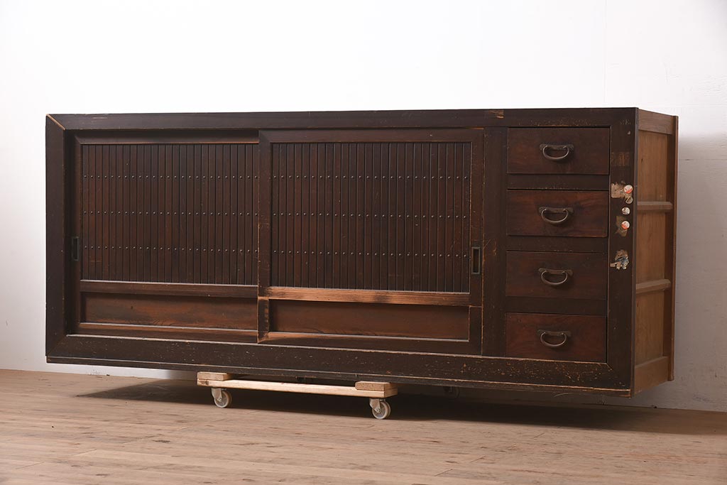 アンティーク家具 縦桟引き戸の近江水屋箪笥テレビ台(キャビネット、戸棚)(R-036354)です。