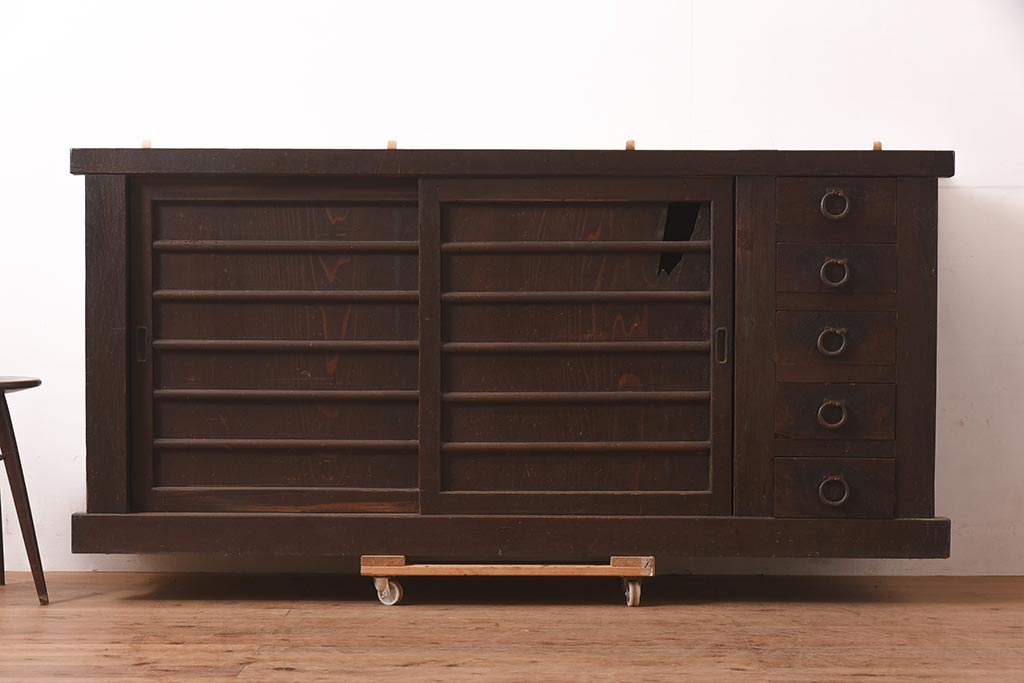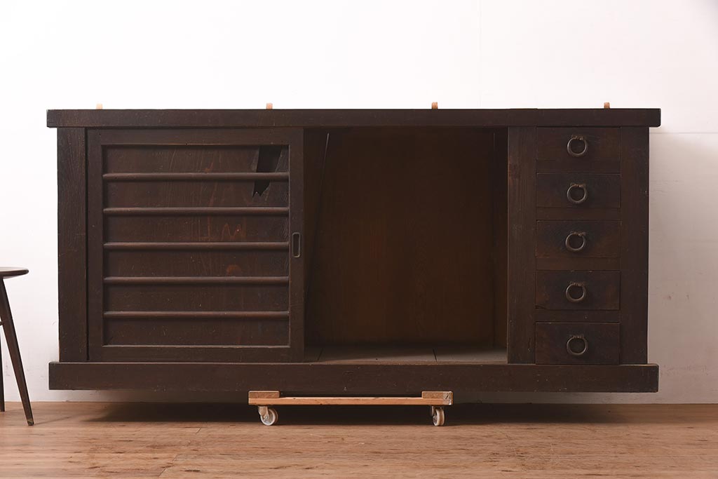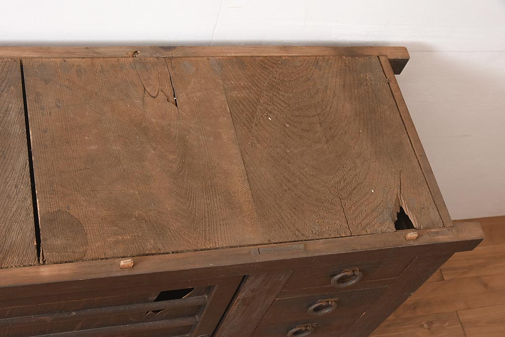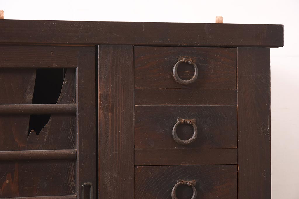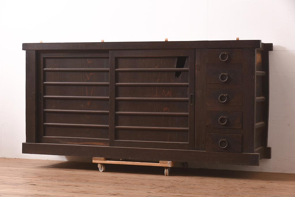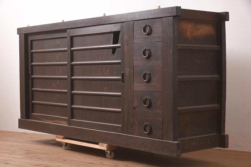 キャビネット・戸棚> サイドボード > アンティーク家具 明治期 重厚感抜群の近江水屋箪笥テレビボード(テレビ台、ローボード、キャビネット、戸棚、収納棚、サイドボード)(R-036352)