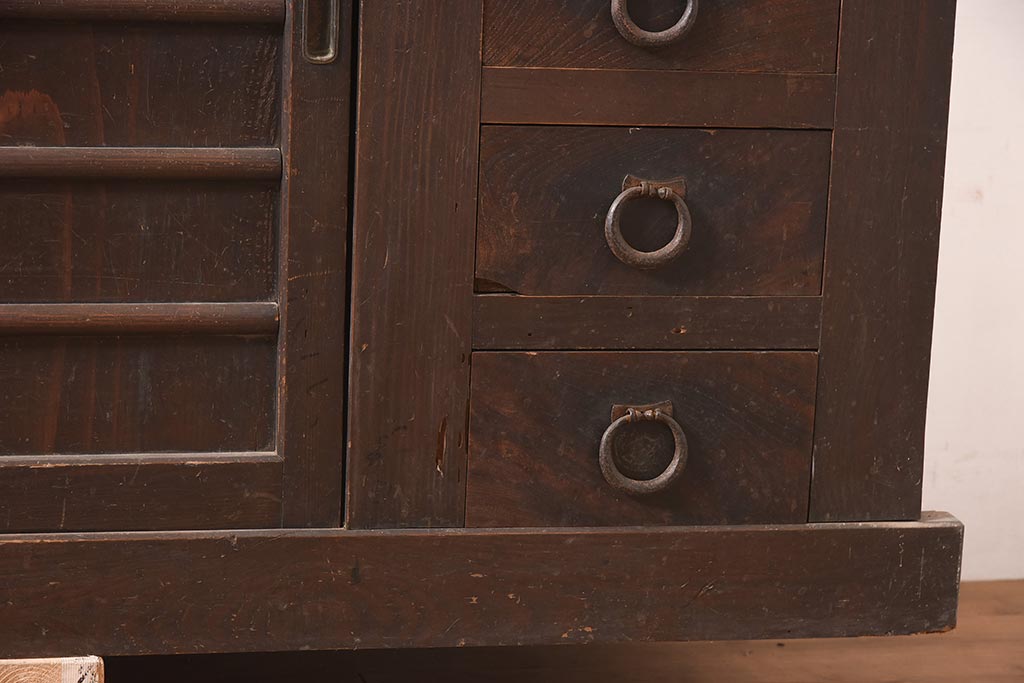キャビネット・戸棚> テレビ台・ローボード > アンティーク家具 明治期 重厚感抜群の近江水屋箪笥テレビボード(テレビ台、ローボード、キャビネット、戸棚、収納棚、サイドボード)(R-036352)