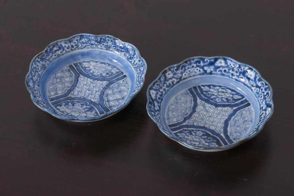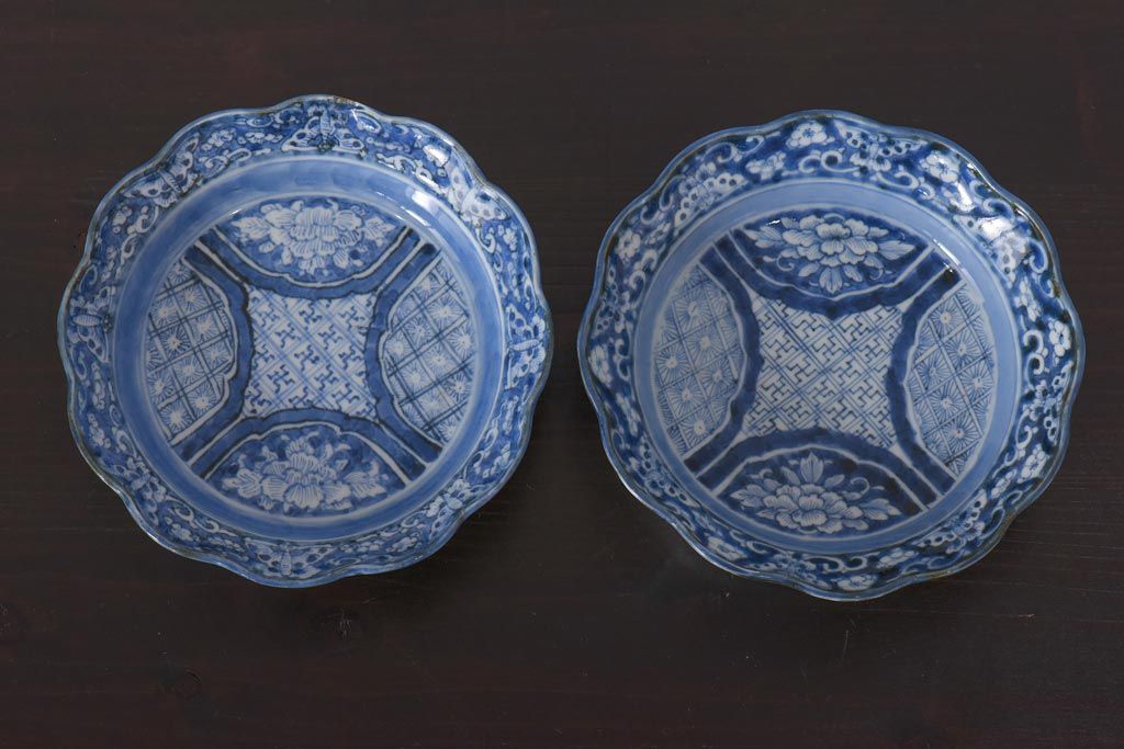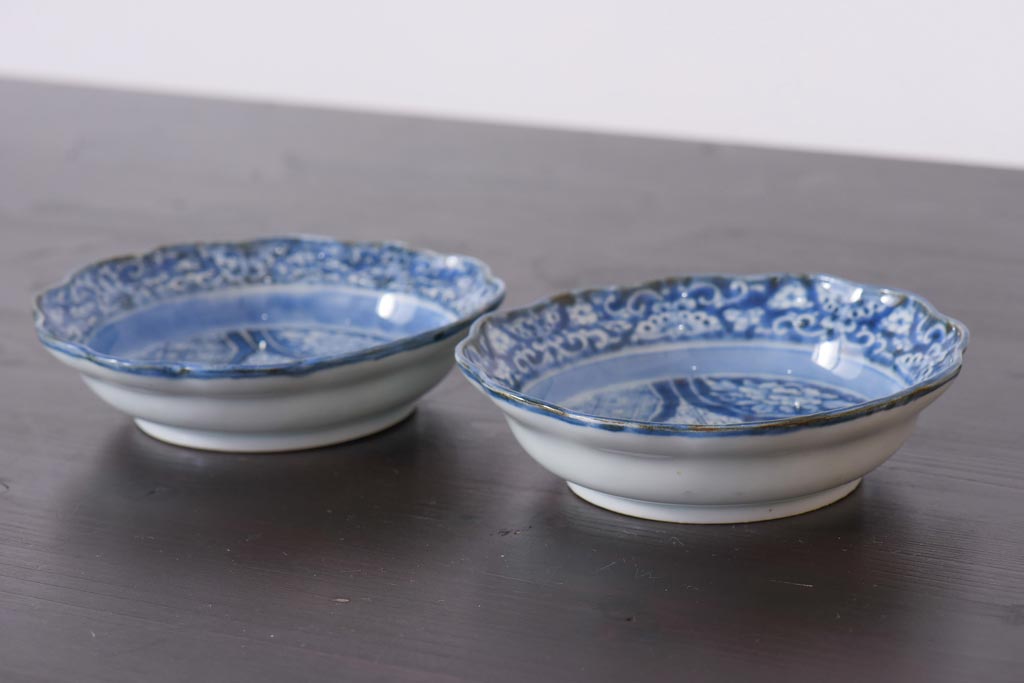 アンティーク雑貨 古伊万里 江戸期の染付皿2枚セット(和食器)(R-036515)