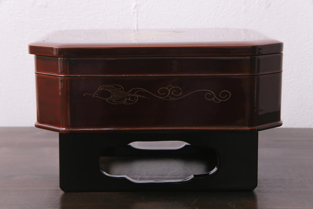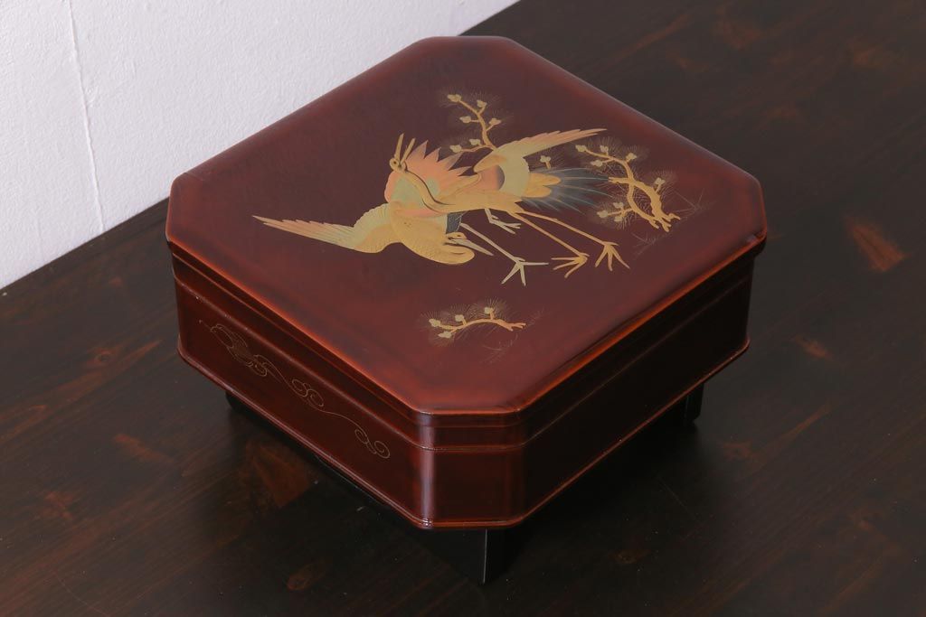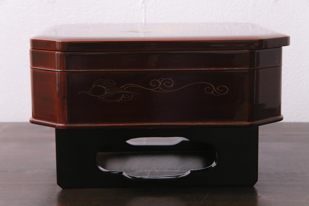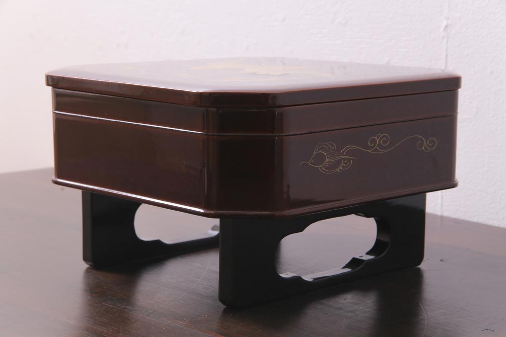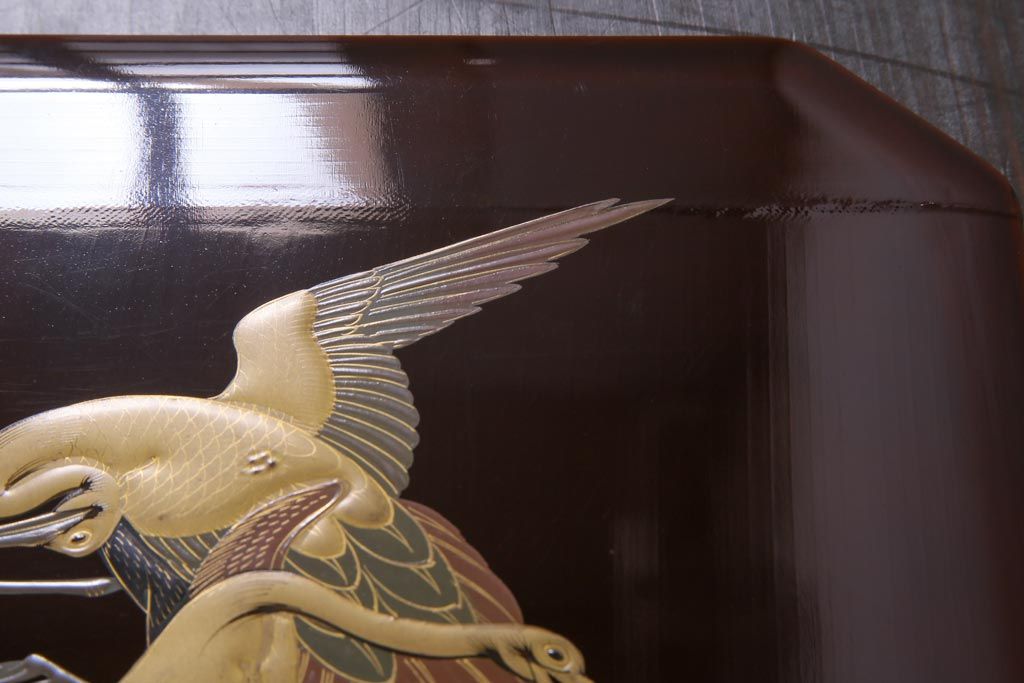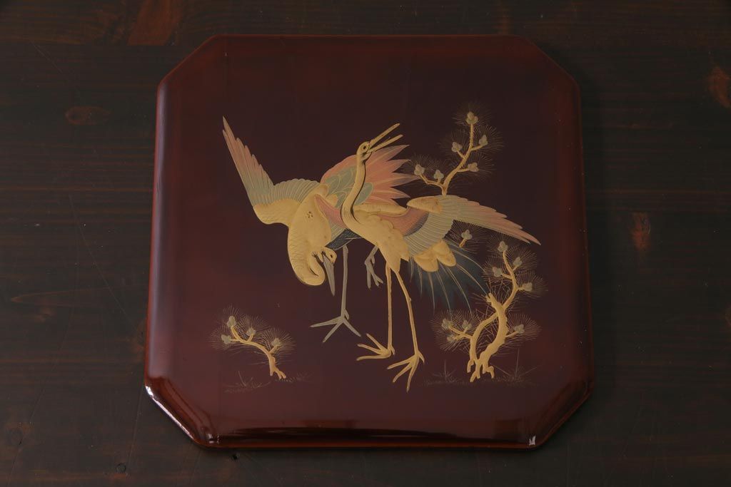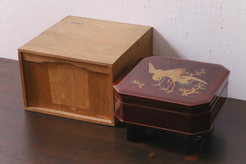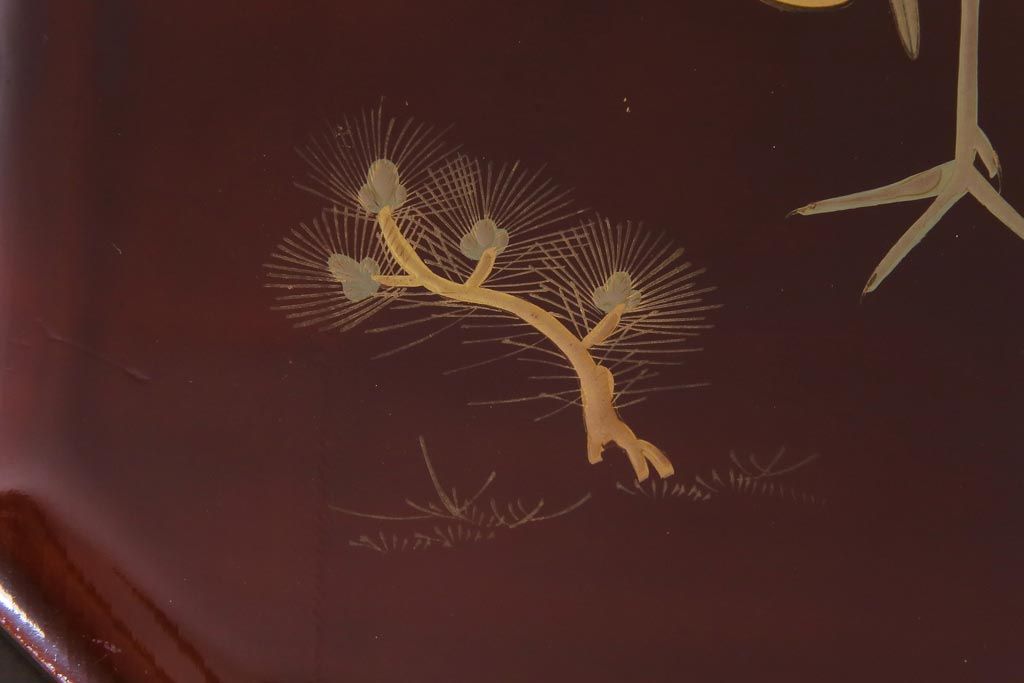 古民具 明治大正期 鶴蒔絵 木製菓子器(盛器、漆器)(R-036568)