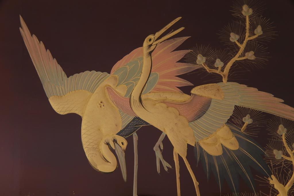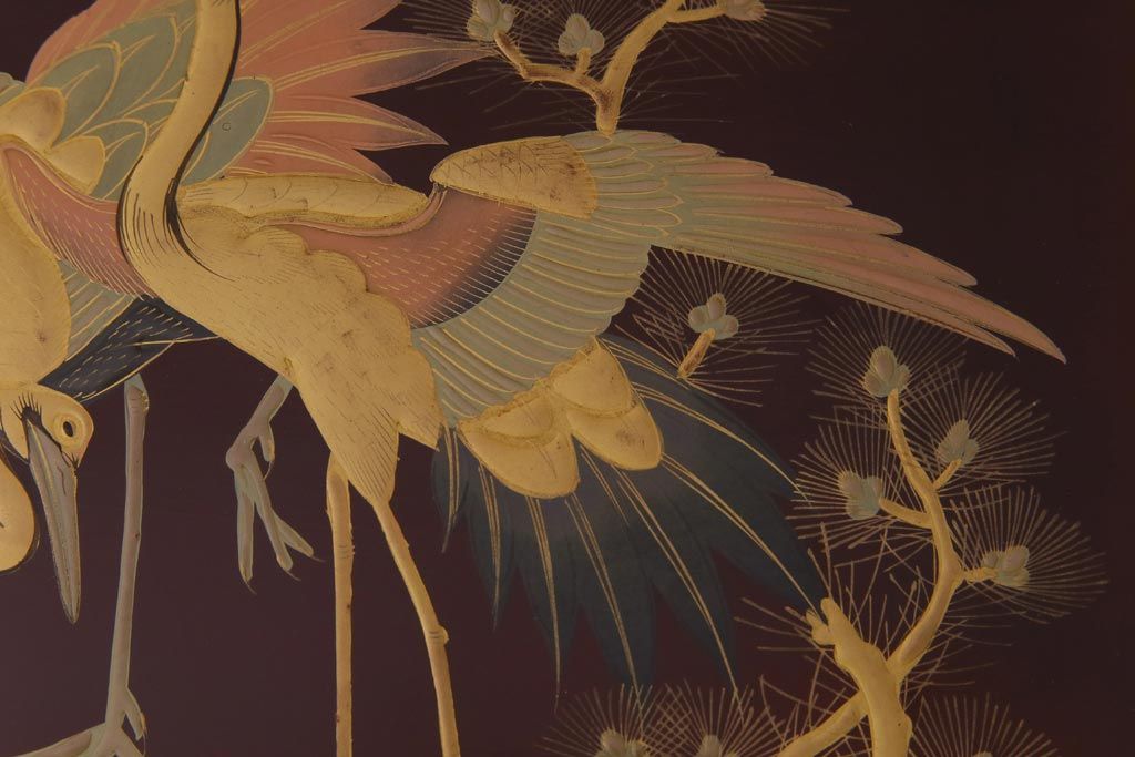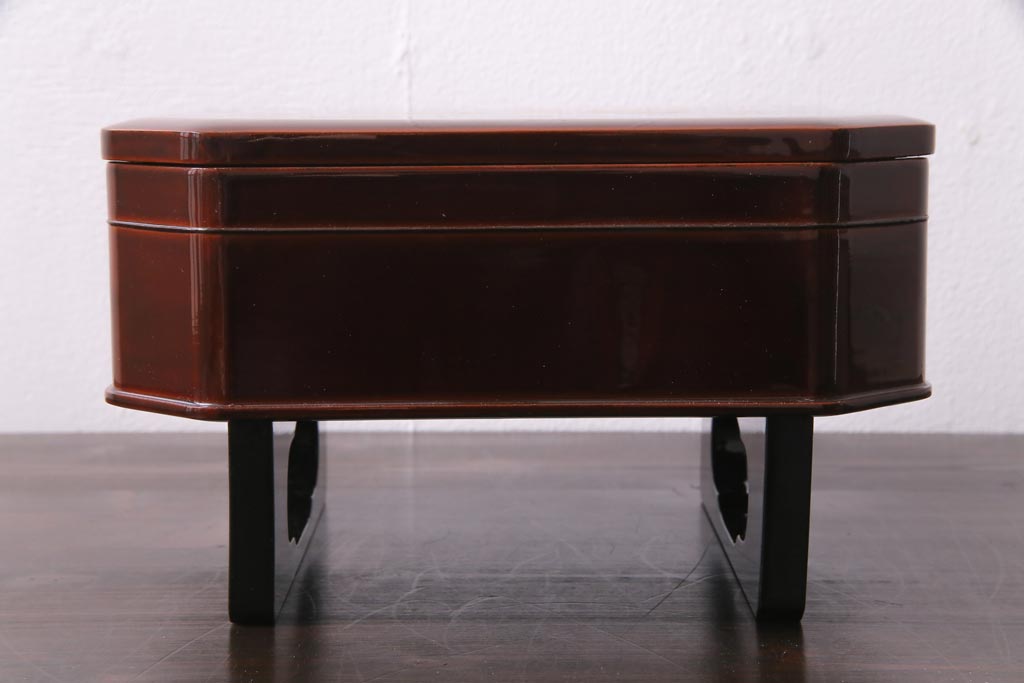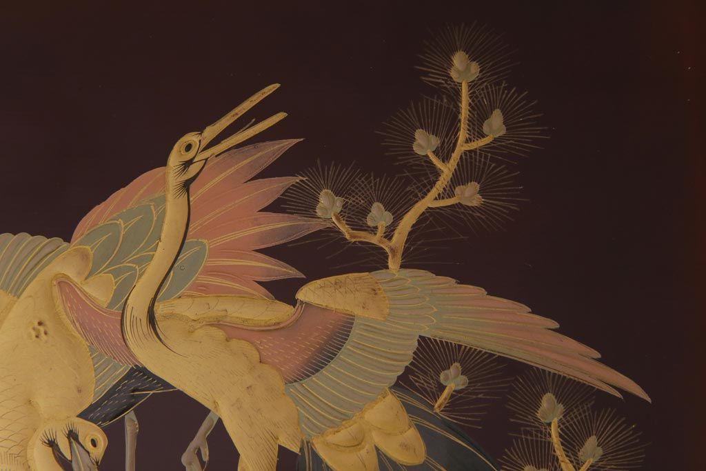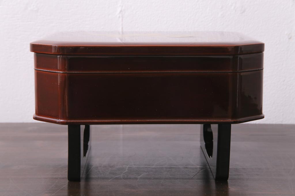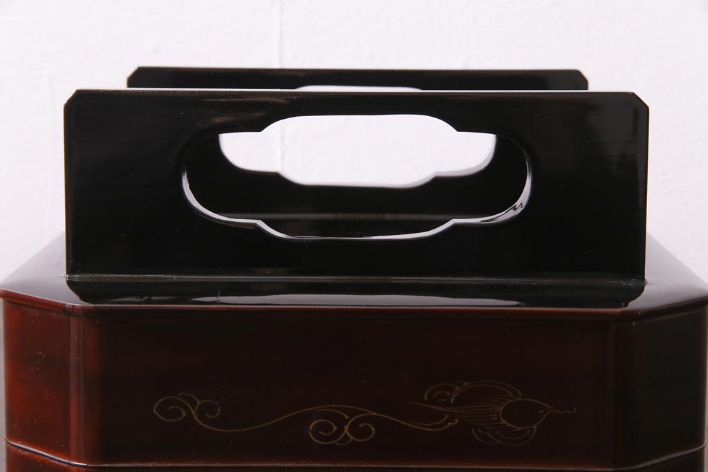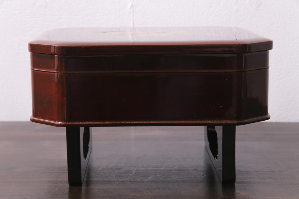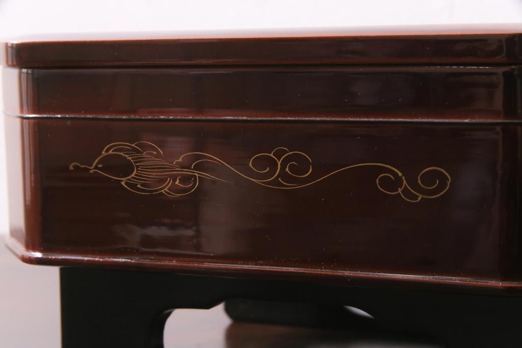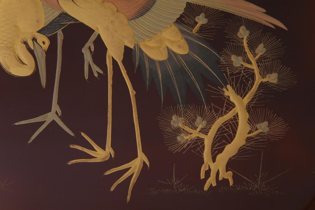 古民具 明治大正期 鶴蒔絵 木製菓子器(盛器、漆器)(R-036568)