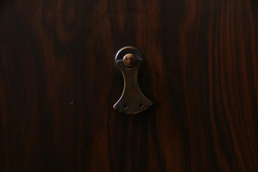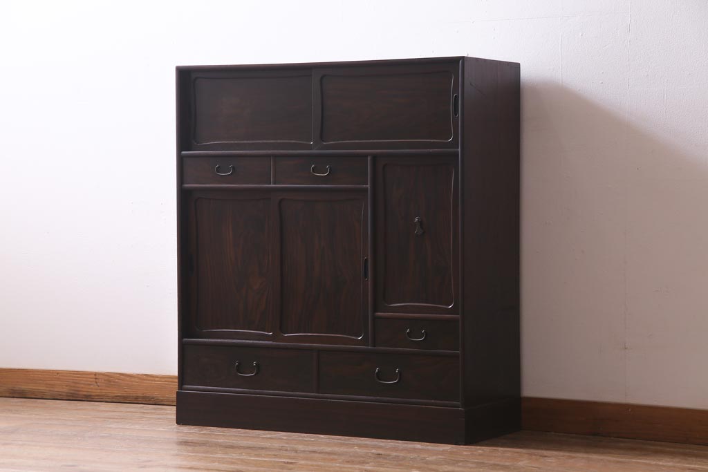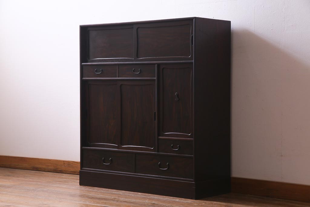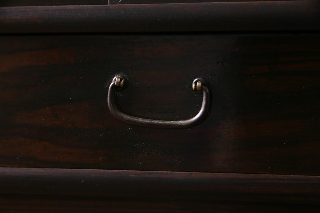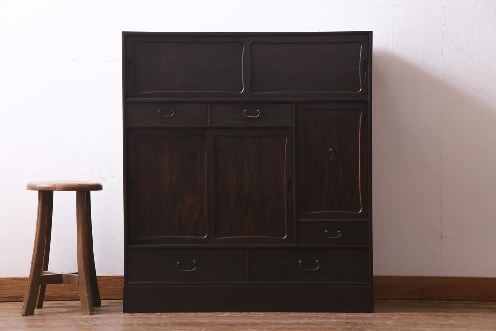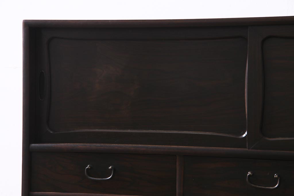 ラフジュ工房> 和箪笥 > アンティーク家具 指物家具 上手物! 縞黒檀材・栓材・桐材 上質な作りの茶箪笥(和タンス、違い棚、桐箪笥、桐たんす)(R-036865)