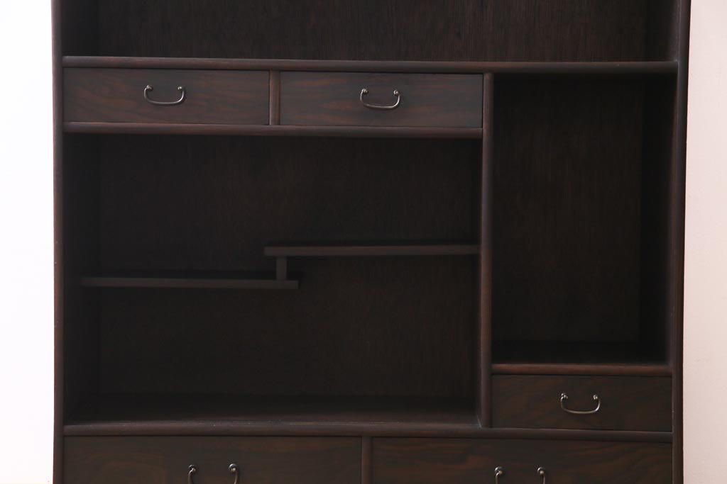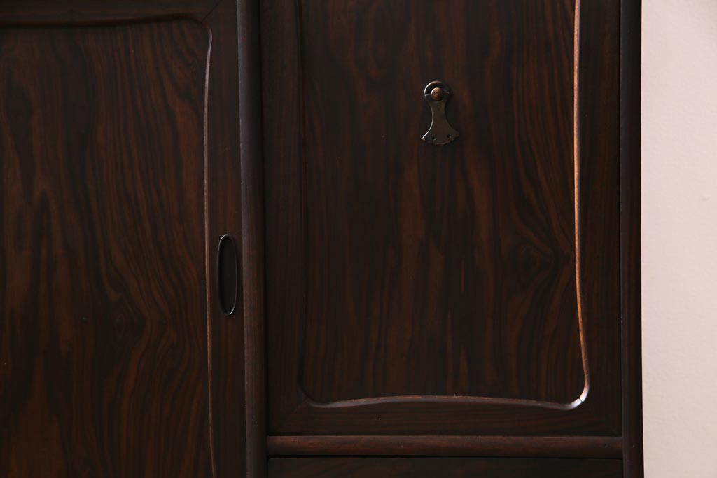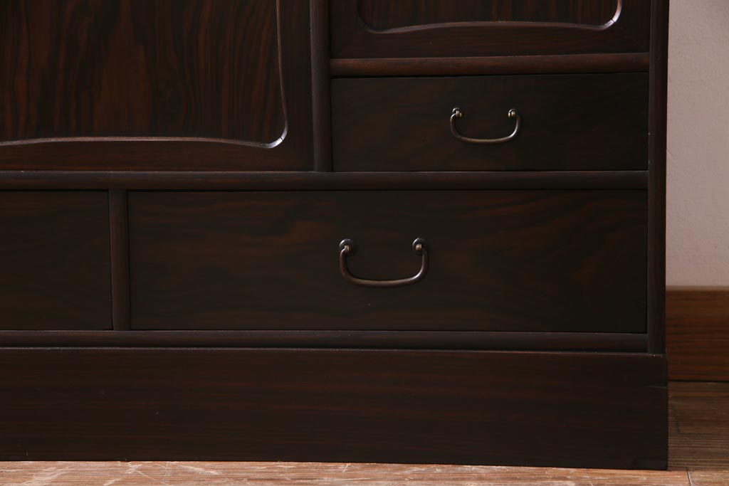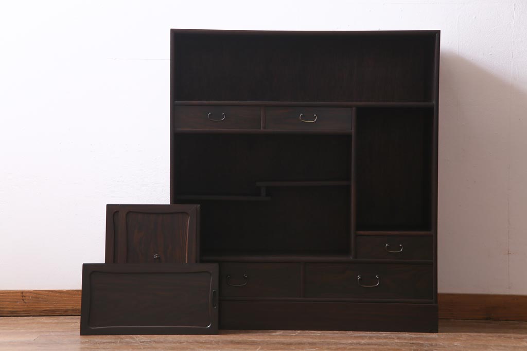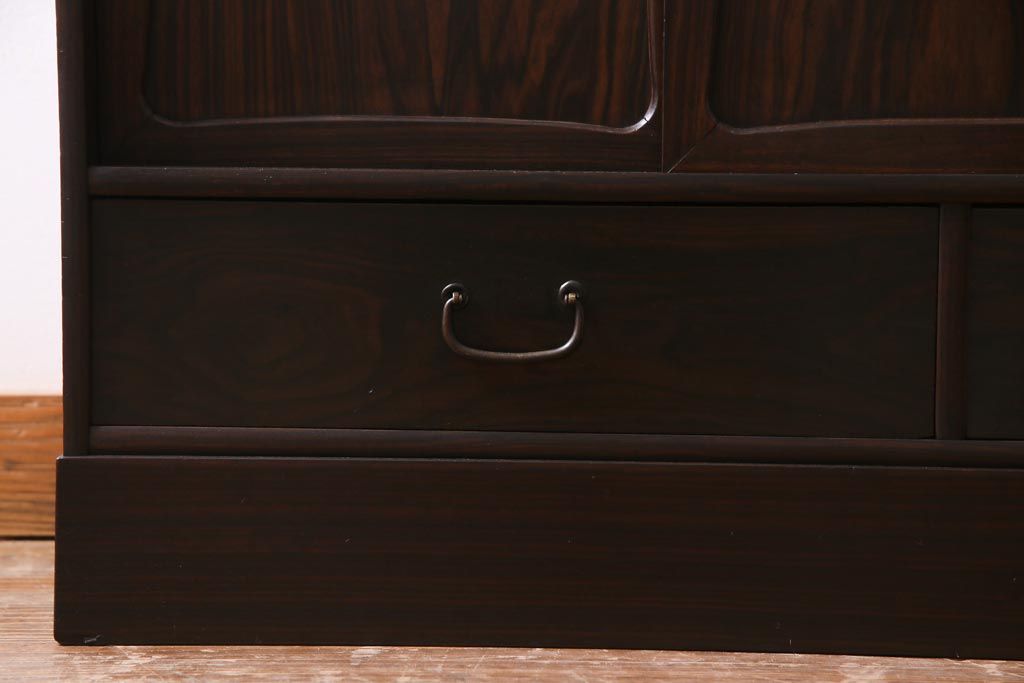 アンティーク家具 指物家具 上手物! 縞黒檀材・栓材・桐材 上質な作りの茶箪笥(和タンス、違い棚、桐箪笥、桐たんす)(R-036865)