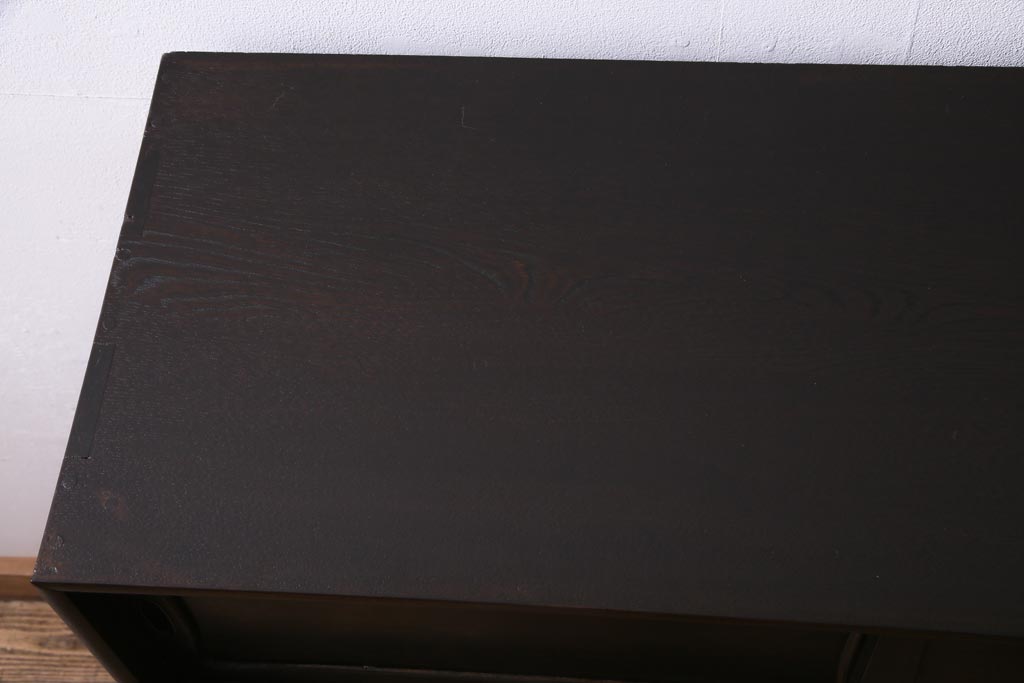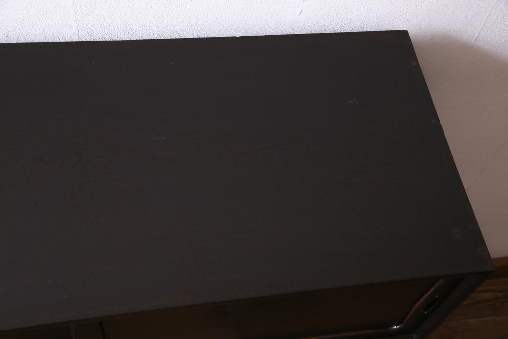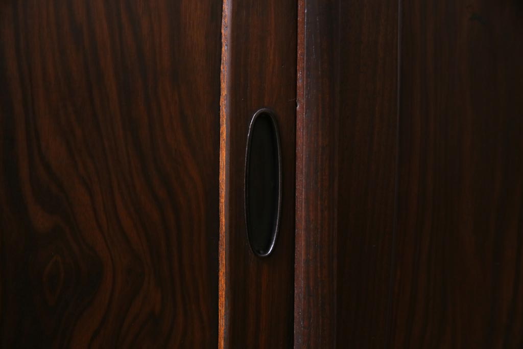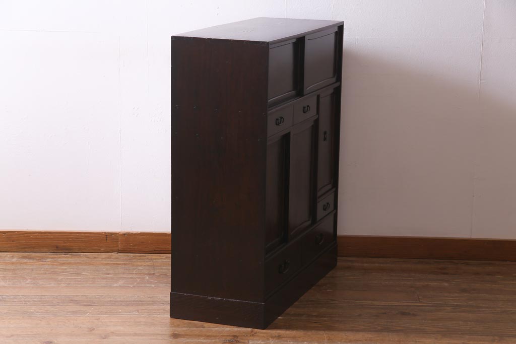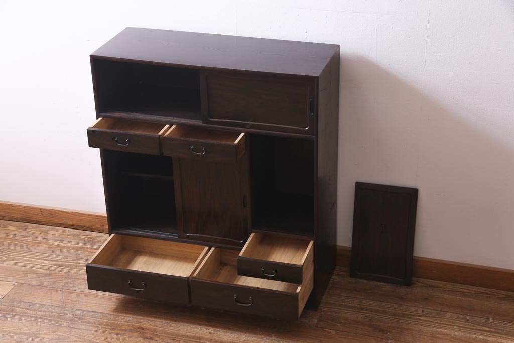 アンティーク家具 指物家具 上手物! 縞黒檀材・栓材・桐材 上質な作りの茶箪笥(和タンス、違い棚、桐箪笥、桐たんす)(R-036865)