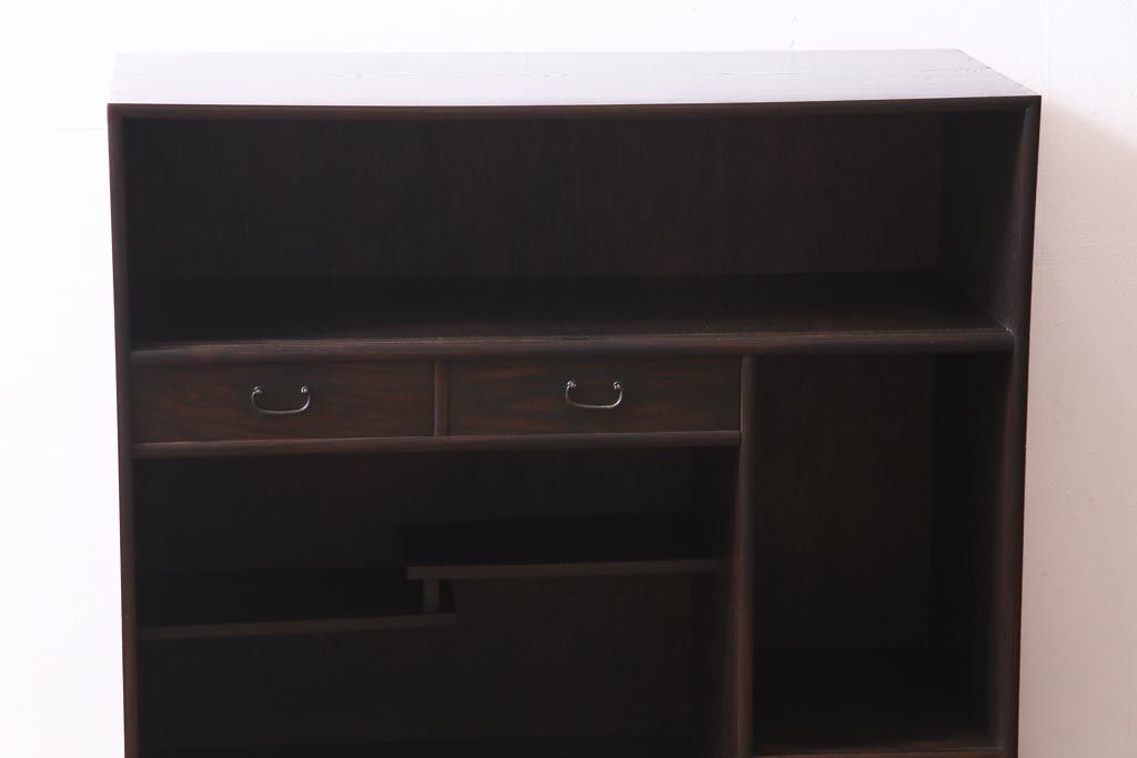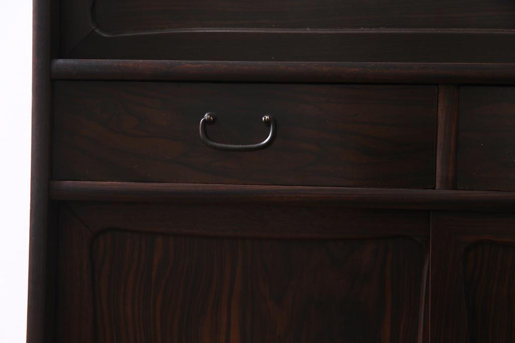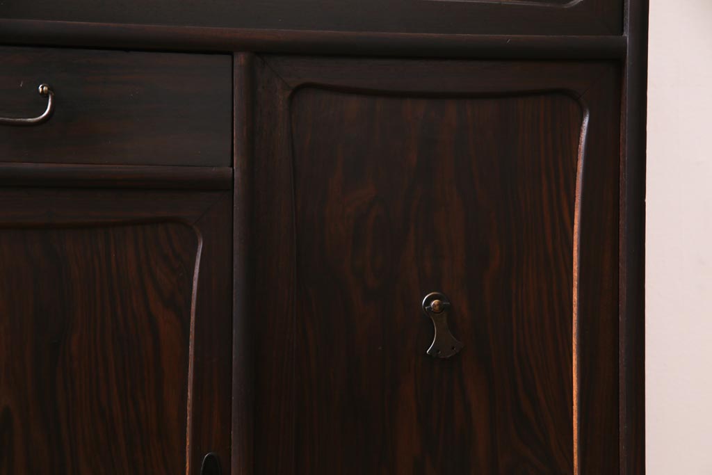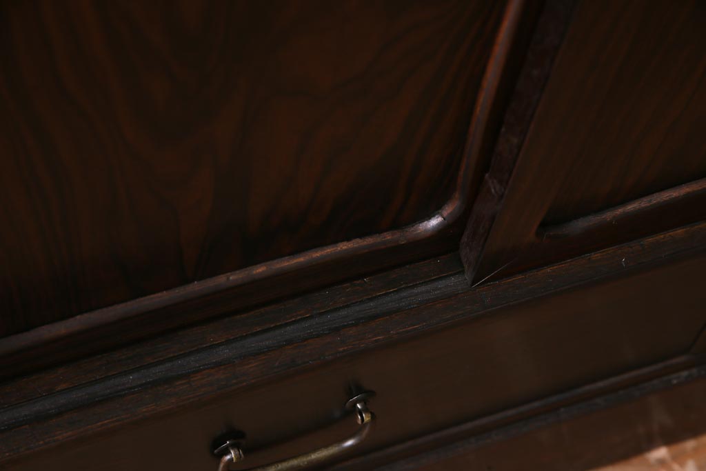 ラフジュ工房> 和箪笥> 茶箪笥・茶棚 > アンティーク家具 指物家具 上手物! 縞黒檀材・栓材・桐材 上質な作りの茶箪笥(和タンス、違い棚、桐箪笥、桐たんす)(R-036865)