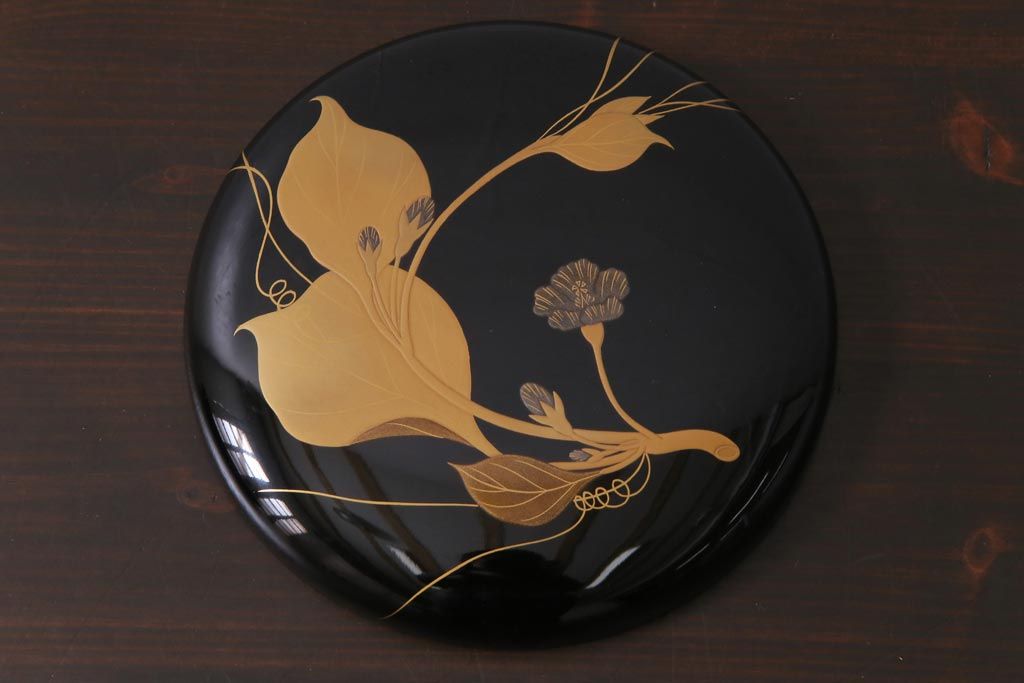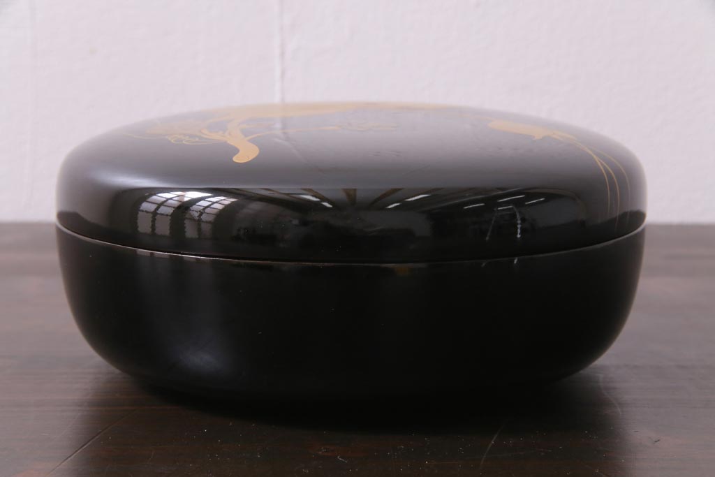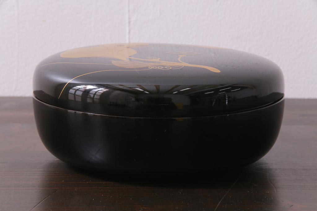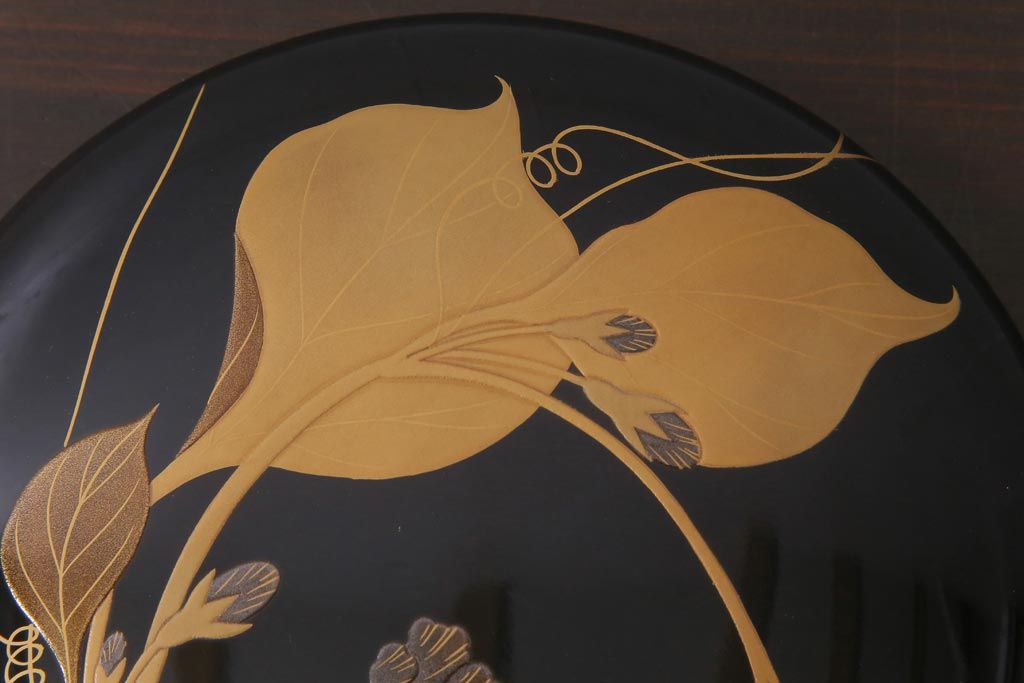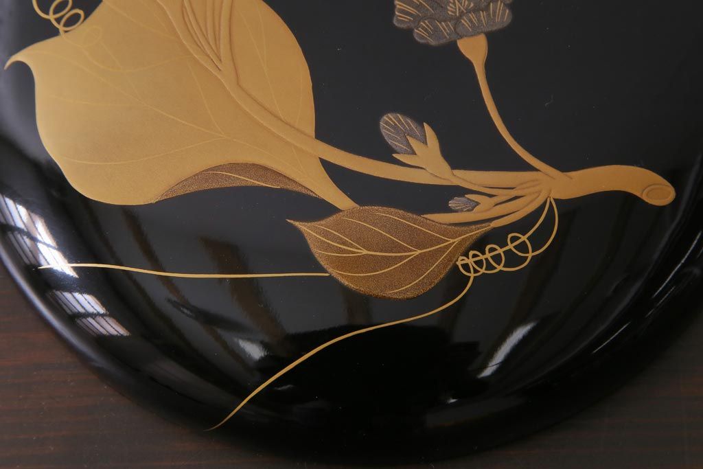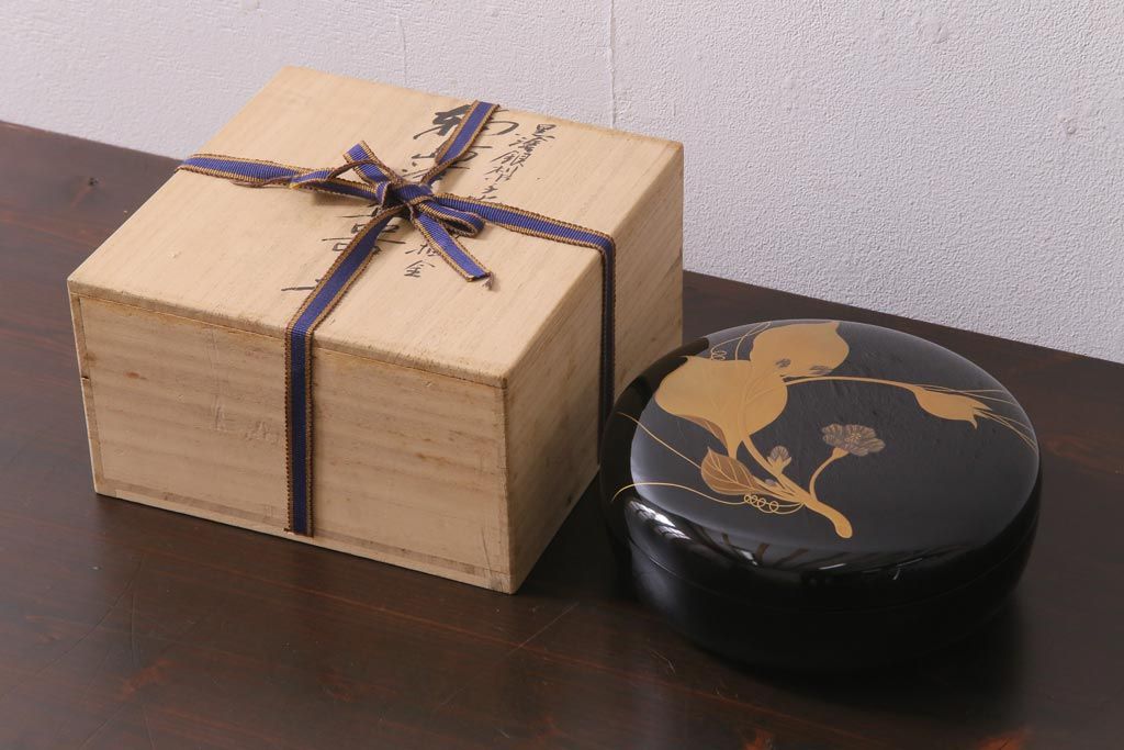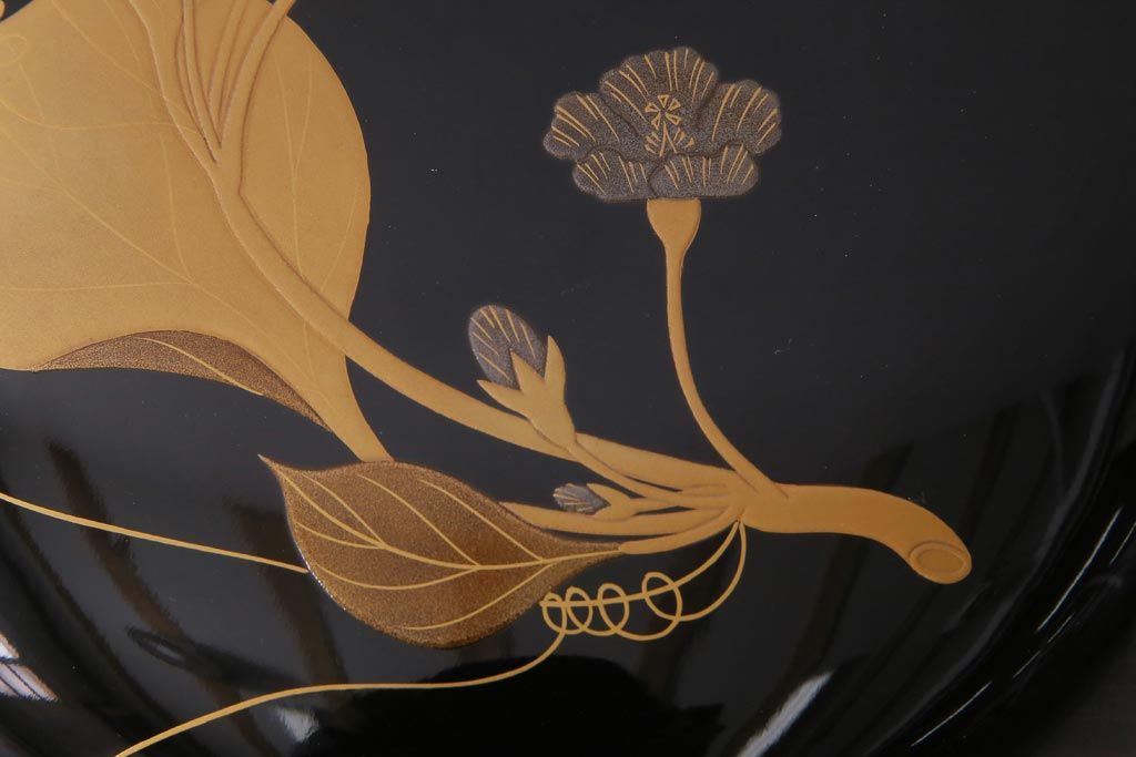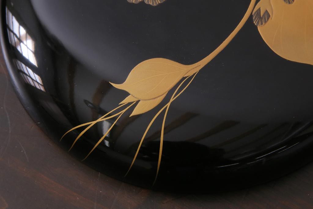 昭和期 輪島塗 涛華堂 八井珠蔵 黒塗銀梨子地瓢高描金 蒔絵 木製盛器・箱付き(菓子鉢、漆器)(R-036566)
