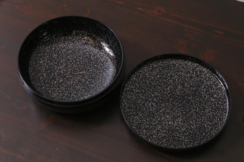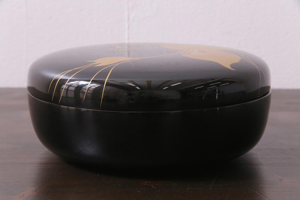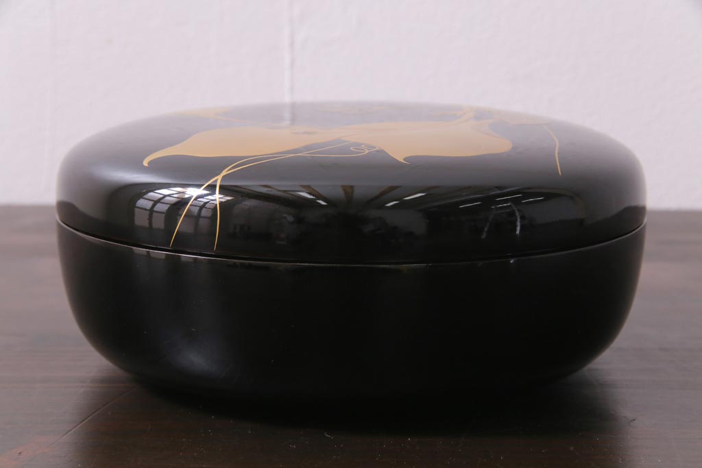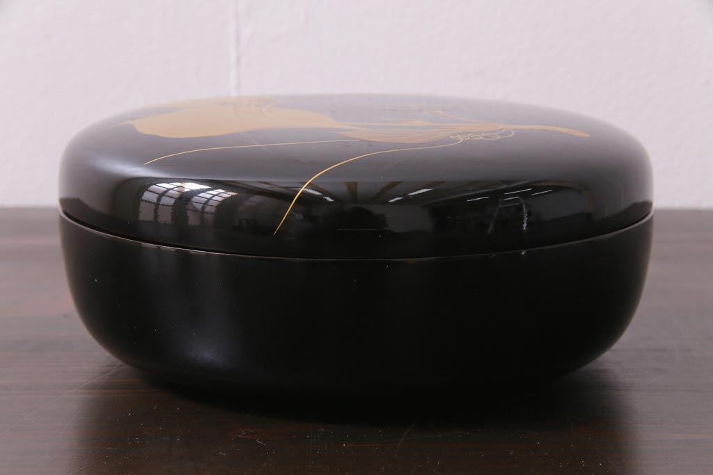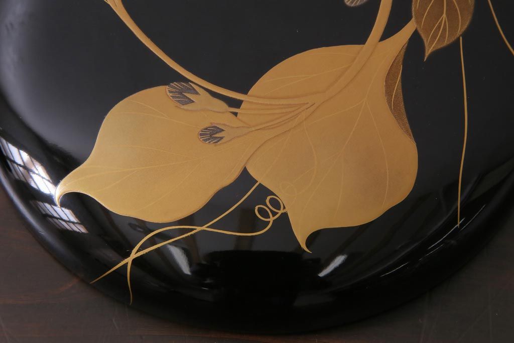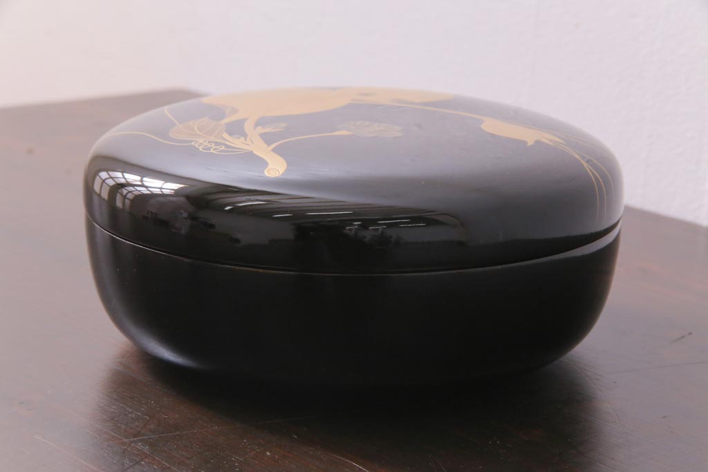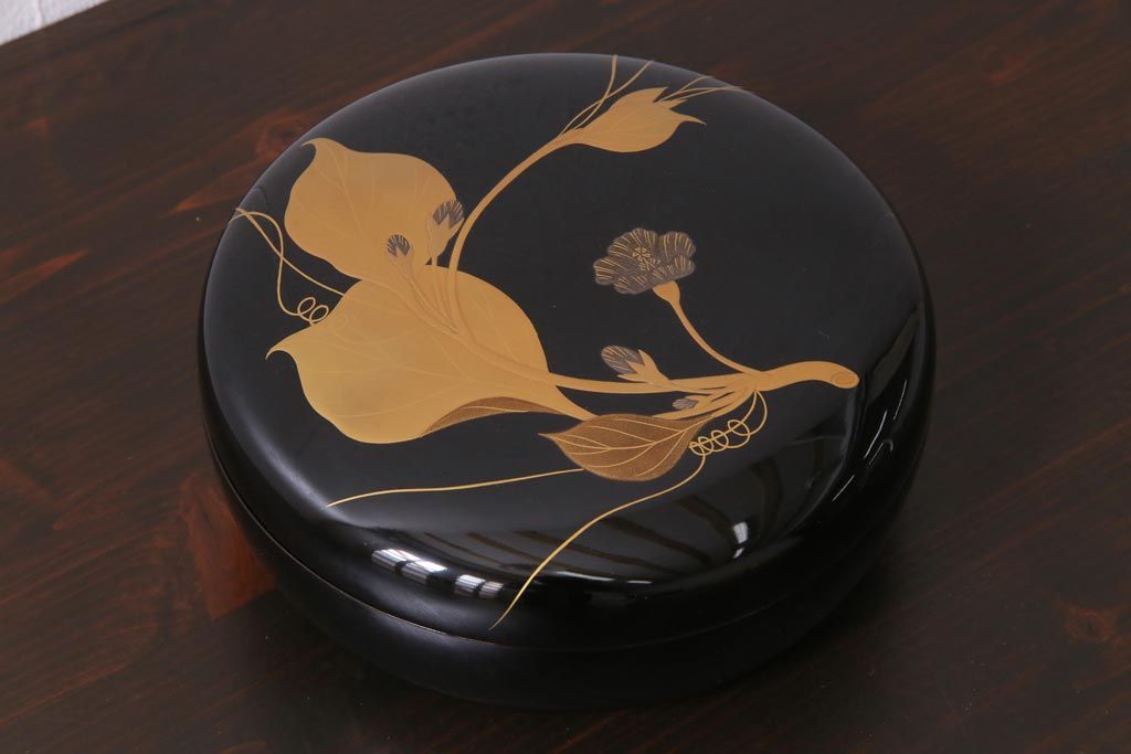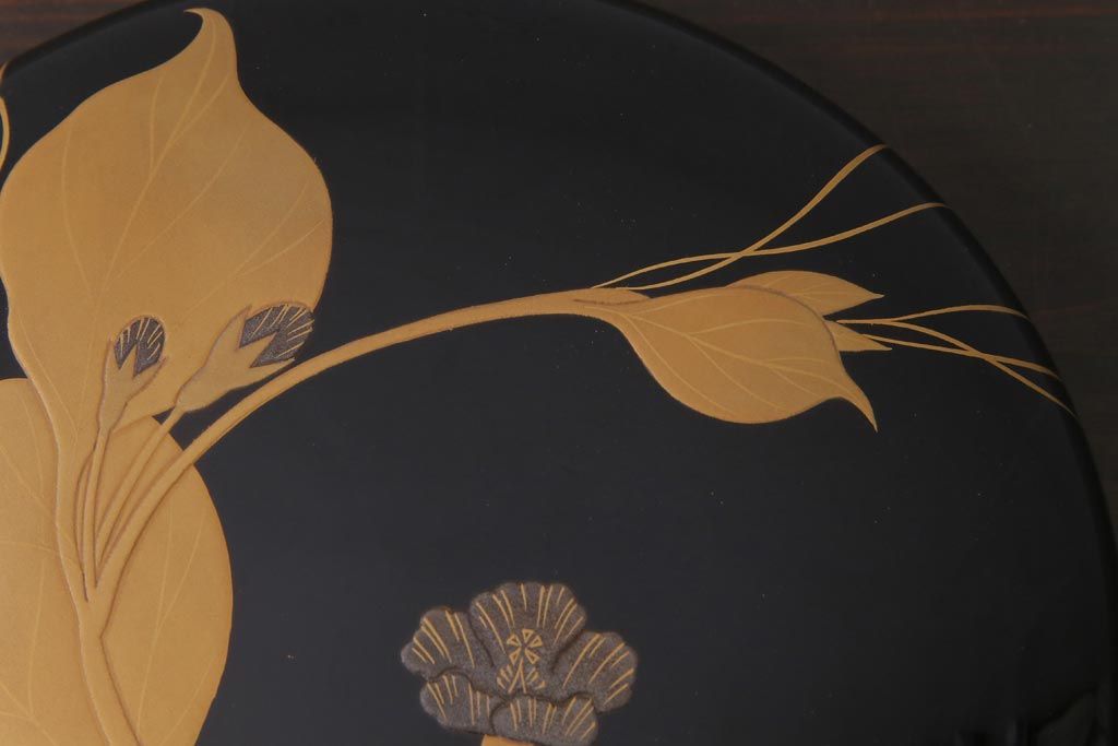 昭和期 輪島塗 涛華堂 八井珠蔵 黒塗銀梨子地瓢高描金 蒔絵 木製盛器・箱付き(菓子鉢、漆器)(R-036566)