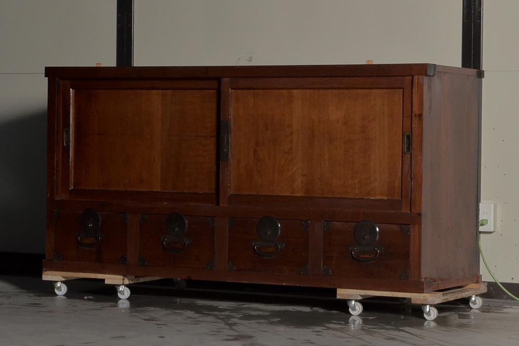 アンティーク家具 前面ヒノキ 収納箪笥サイドボード(戸棚、収納棚、テレビ台、テレビボード)(R-036328)です。
