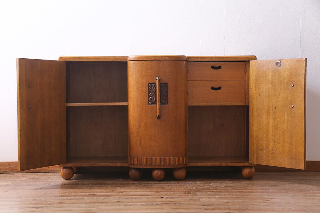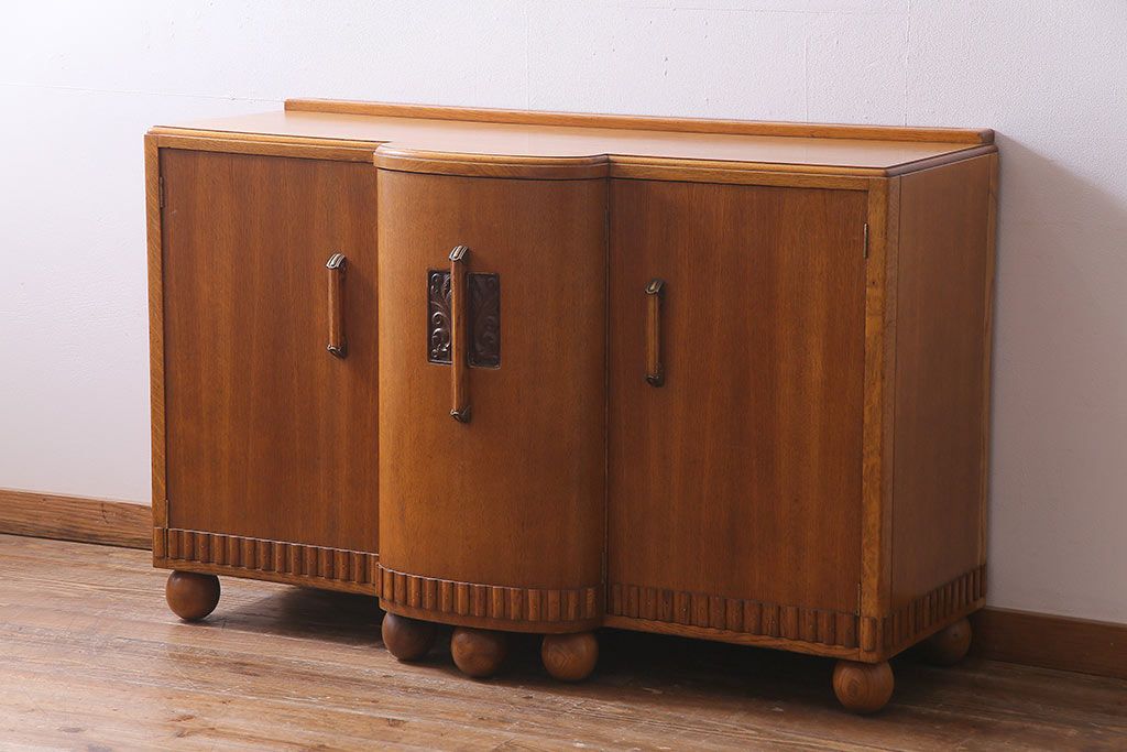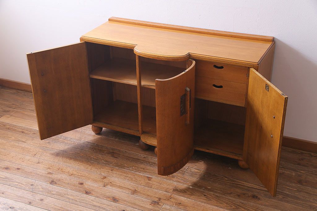 アンティーク家具 イギリスアンティーク E.GOMME社 オーク材 堂々とした佇まいと温かみのある雰囲気が魅力のサイドボード(キャビネット、収納棚)