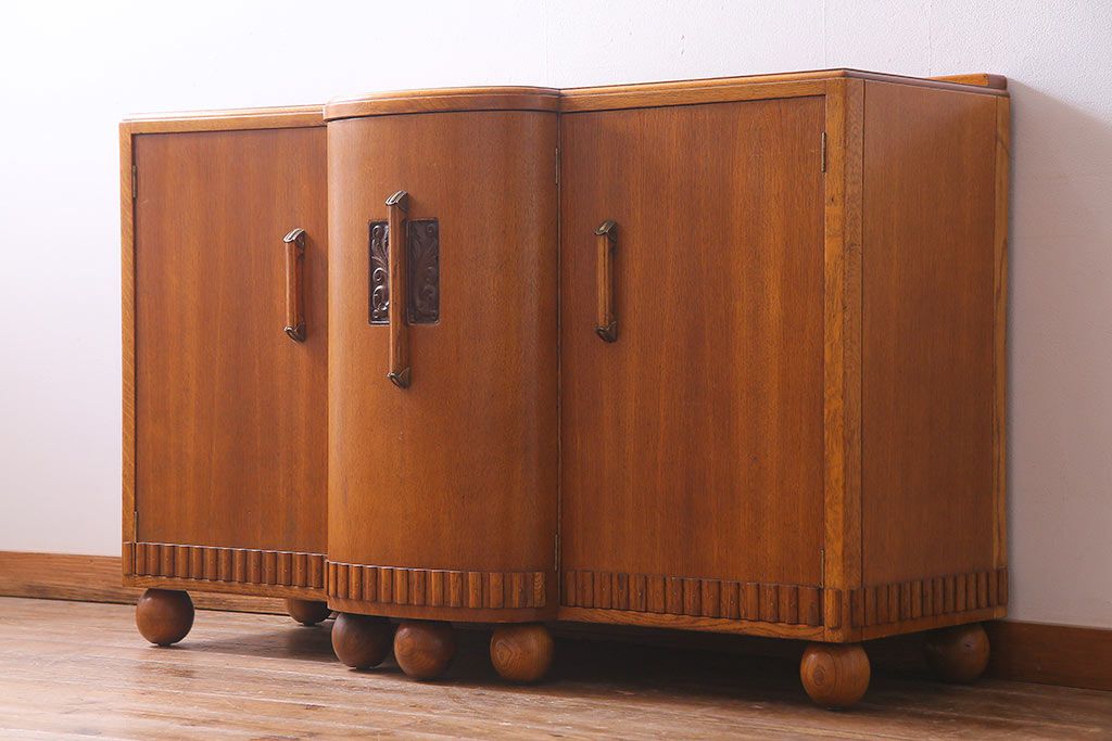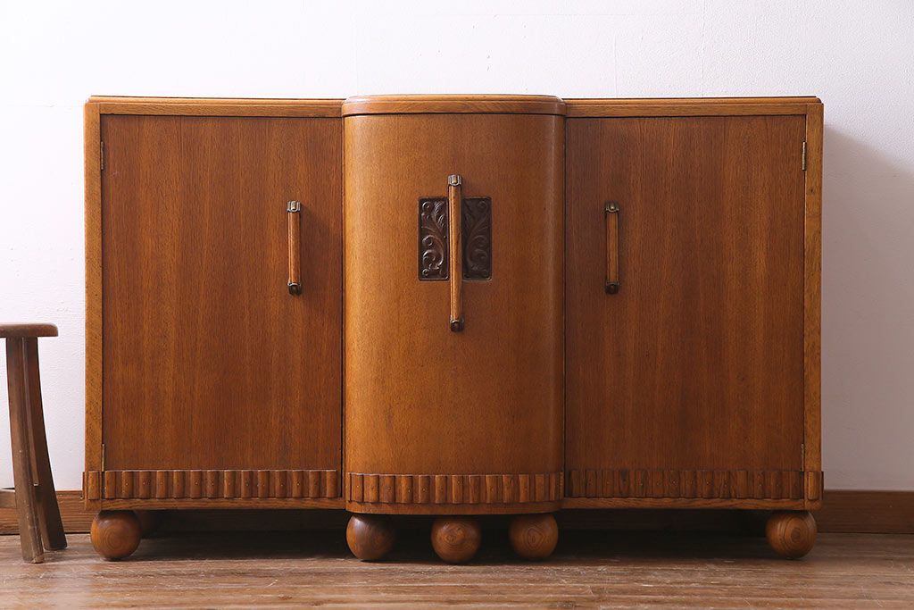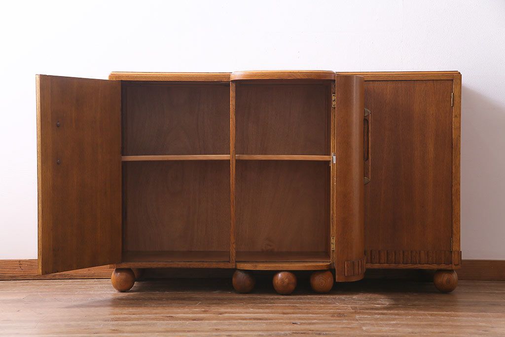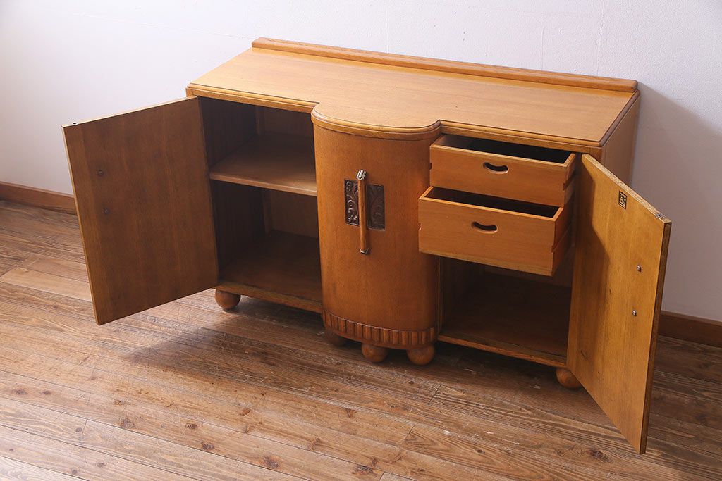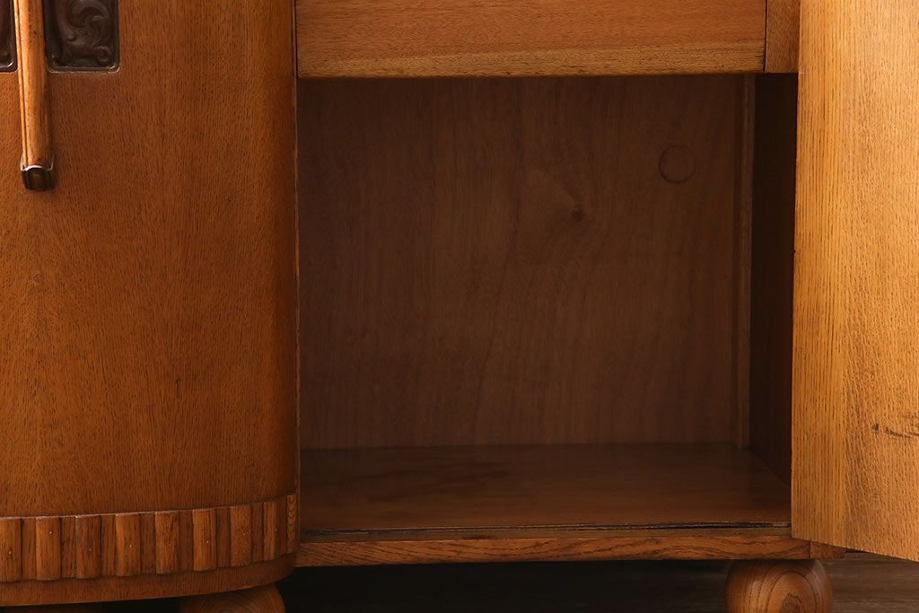 ラフジュ工房> キャビネット・戸棚> サイドキャビネット > アンティーク家具 イギリスアンティーク E.GOMME社 オーク材 堂々とした佇まいと温かみのある雰囲気が魅力のサイドボード(キャビネット、収納棚)
