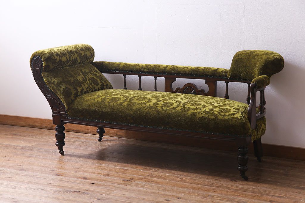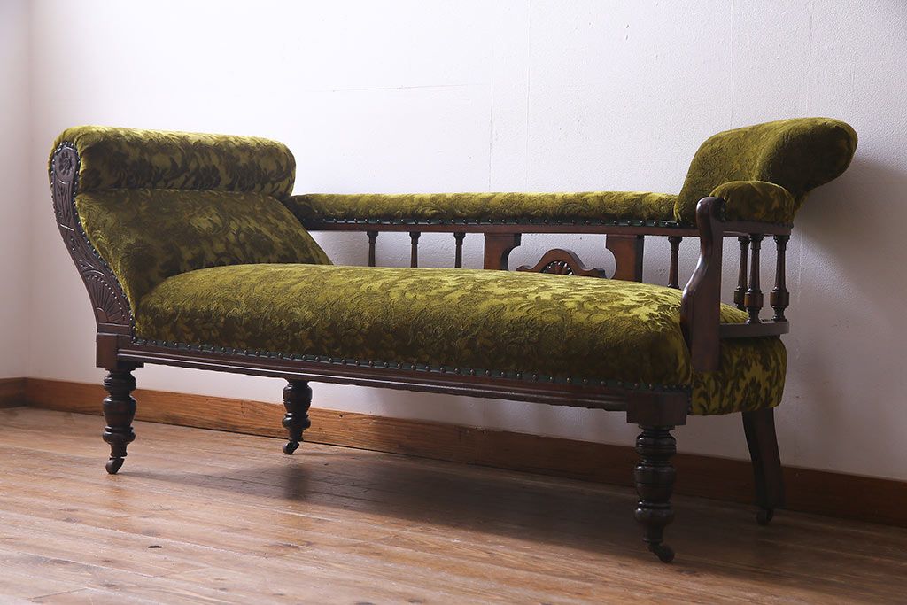 ラフジュ工房> ソファ> カウチ > アンティーク家具 イギリスアンティーク マホガニー材 お部屋をクラシカルに彩るシェーズロング(ソファ、カウチ)(R-037036)